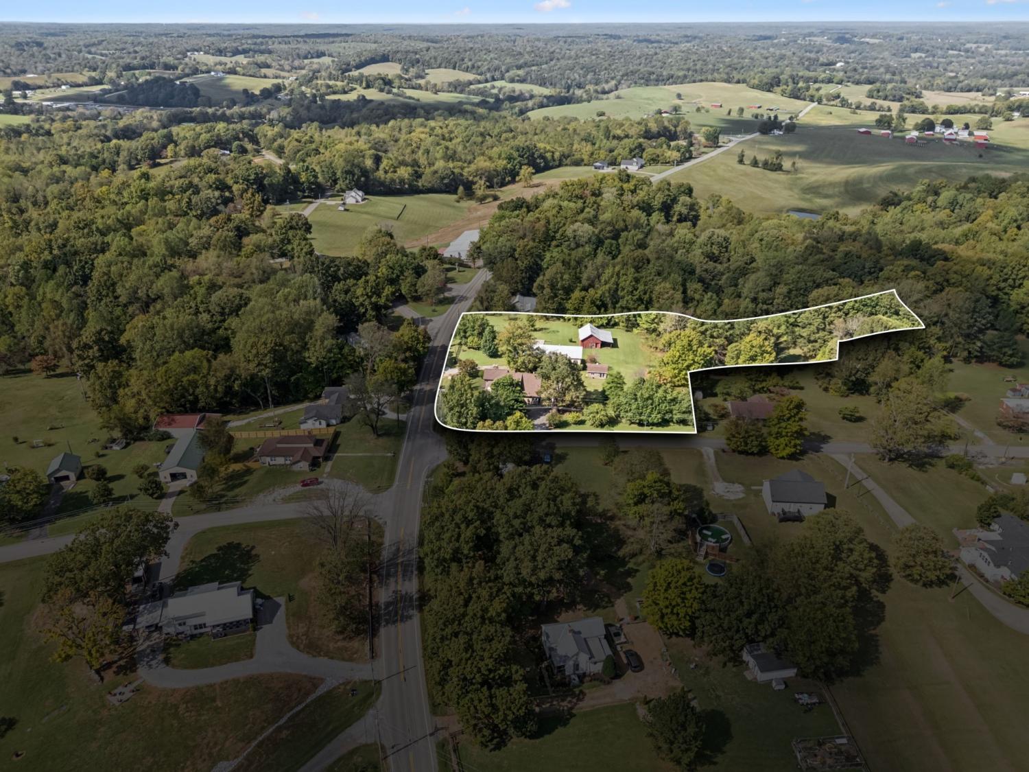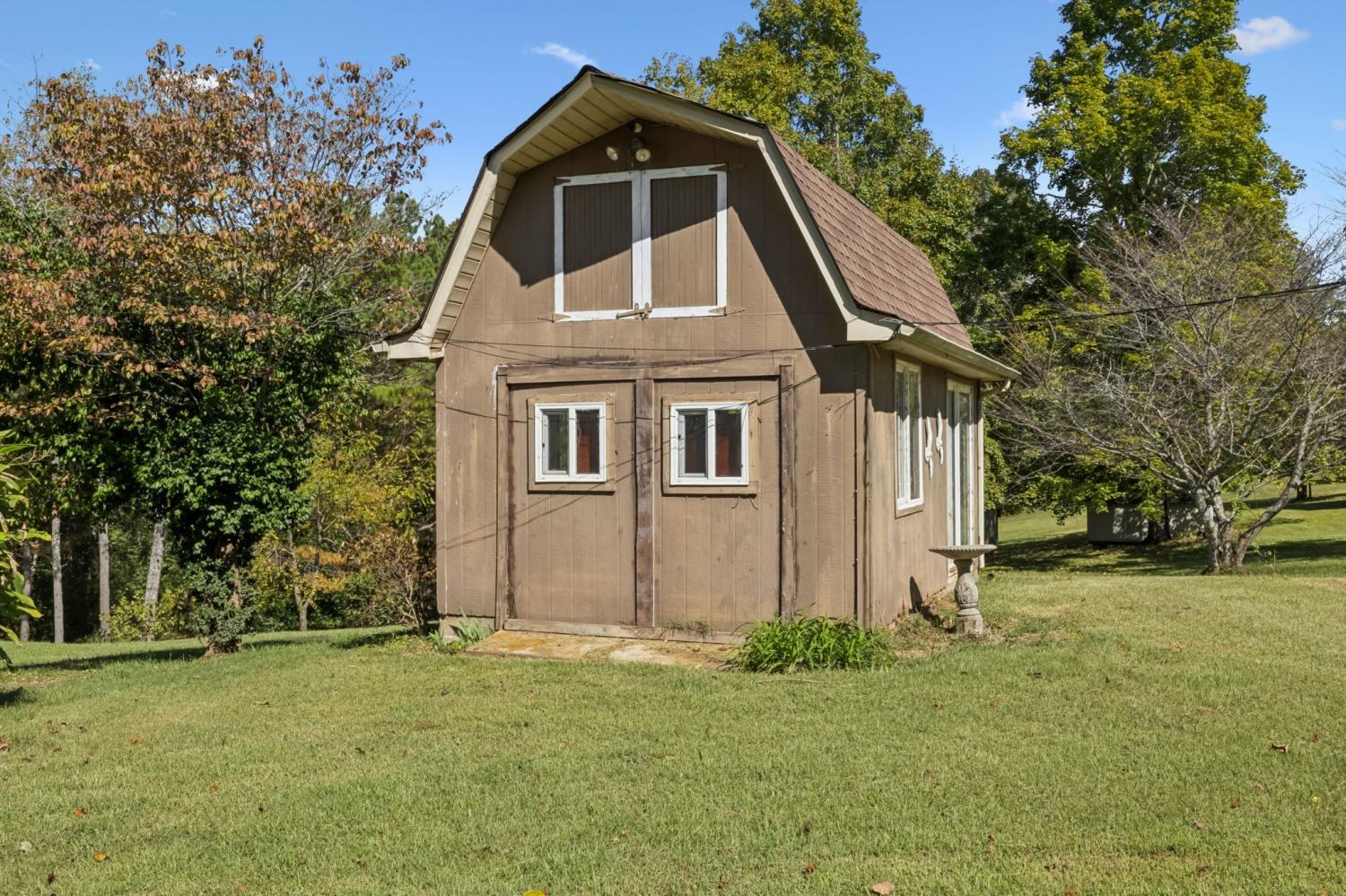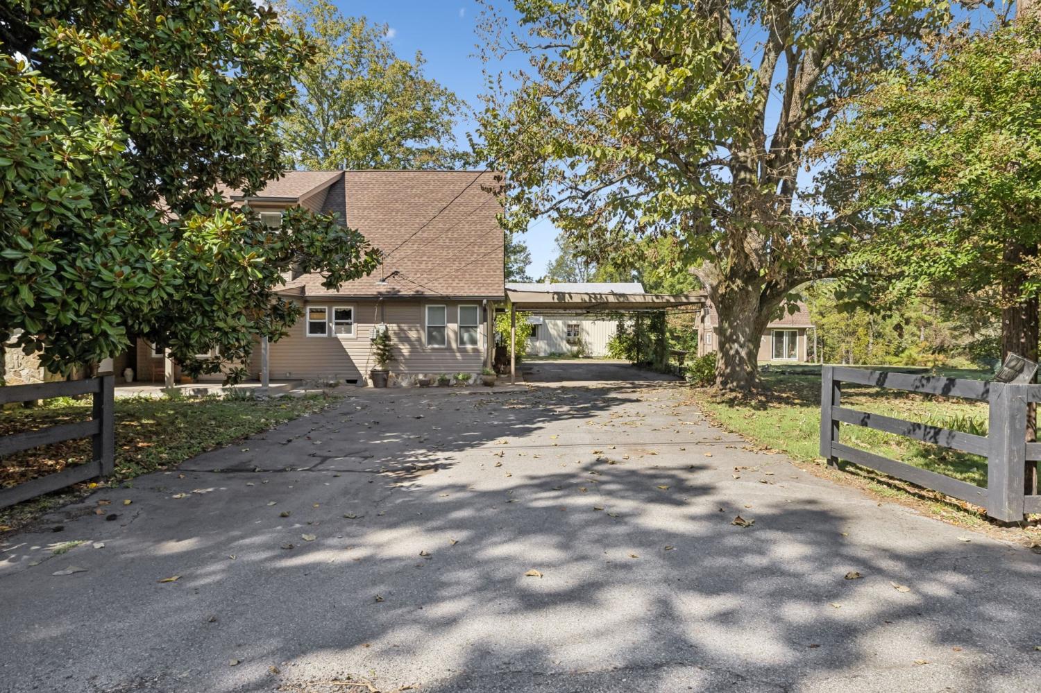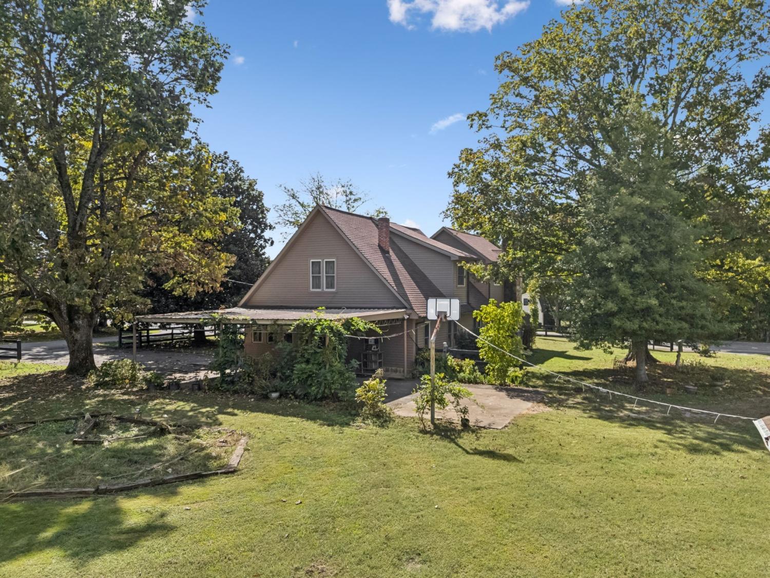 Charming 1932 traditional style home offering 3 bedrooms and 3 full baths, set on a serene 3.09-acre property, full of character and modern comforts. Beautiful exterior with stone front door entrance and stone chimneys, located on corner lot w/level to rolling terrain. Inside you’ll find timeless craftsmanship throughout, featuring a welcoming living room with a striking stone fireplace and exposed wood beams, and an elegant office featuring a custom oak mantle and rich carved paneling. The spacious primary suite on the main level includes a full bath, while the sunroom and walk-in utility room add comfort and convenience. Upstairs, two generous bedrooms share an adjoining sitting area, perfect for guests. An antique staircase serves as the home’s centerpiece, blending history with style. Outside, enjoy plenty of space to live, work, and play — including a 25' x 64' metal building with a one-car garage on the lower level, an additional 29' x 18' storage addition, an older barn, storage building, and a small pond. A two-car attached carport completes this versatile property. Located within 15 minutes of Dickson, 35 minutes to Nashville and 25 minutes to Clarksville. This property combines old-world charm with practical rural living — the perfect blend of past and present.