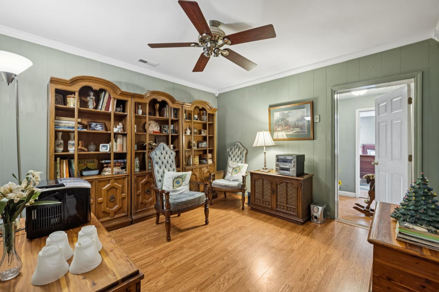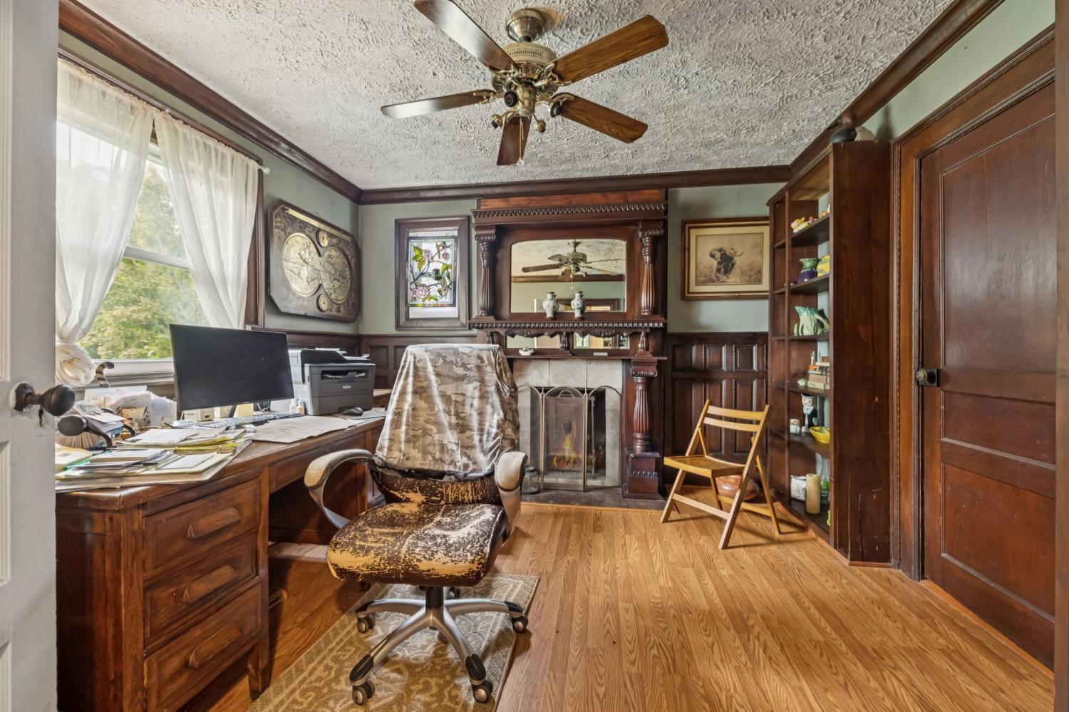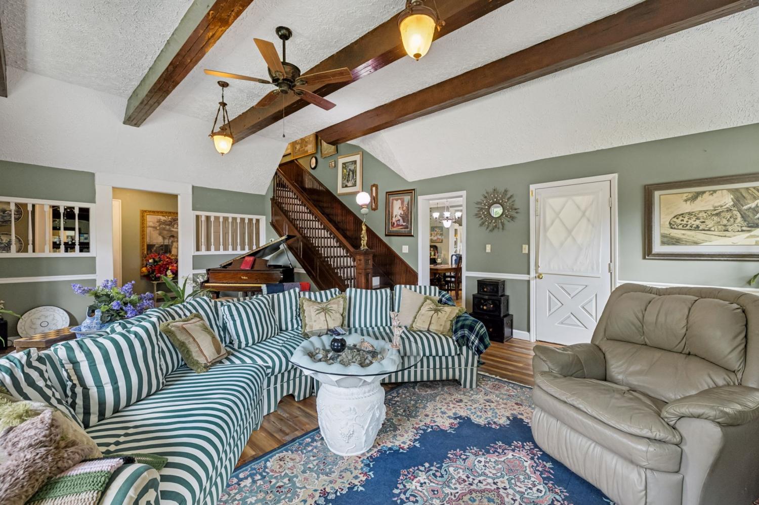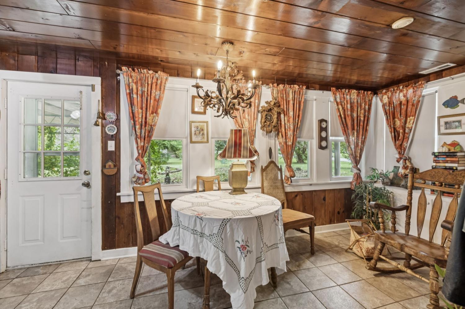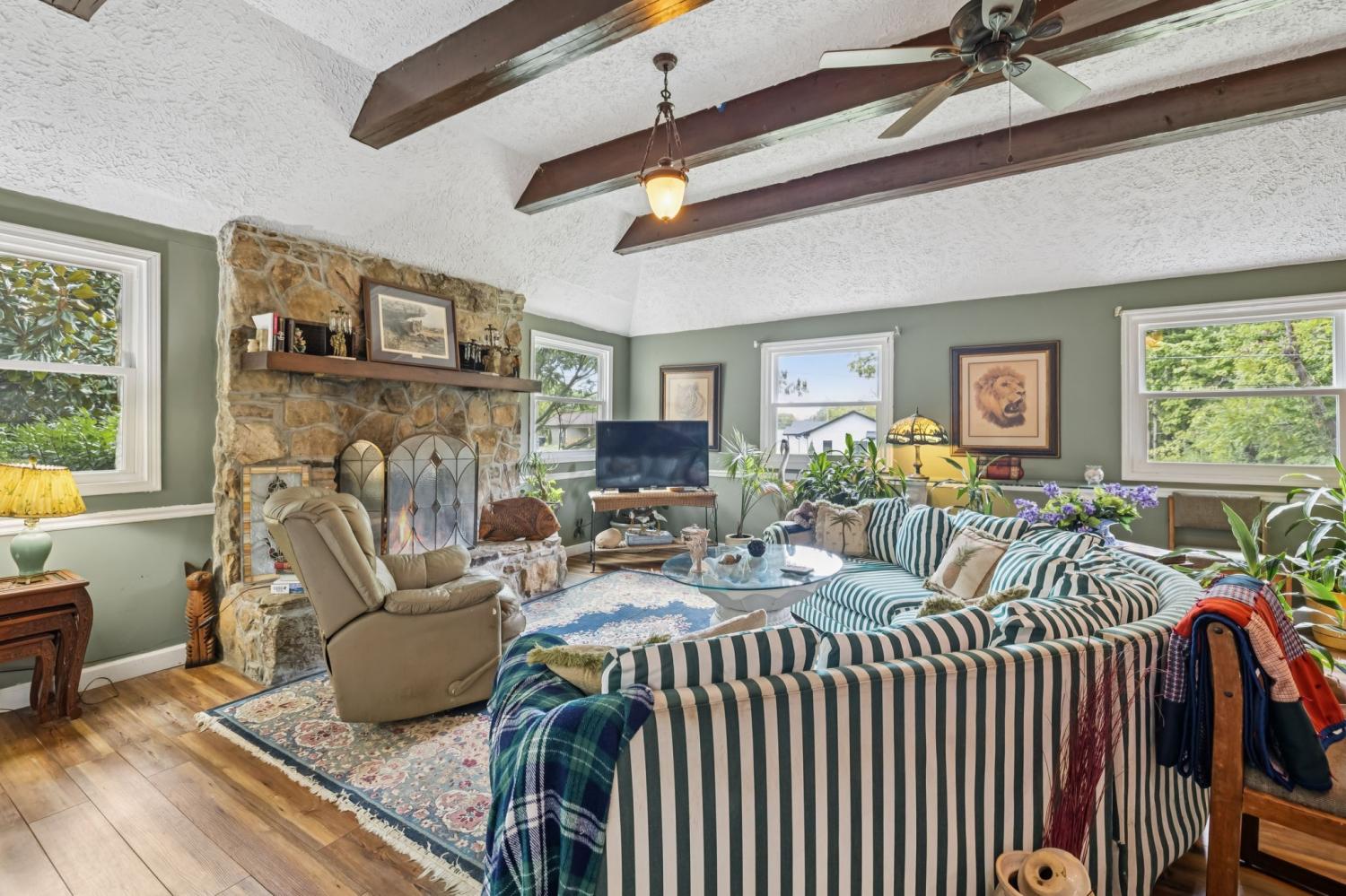 Charming 1932 traditional style home offering 3 bedrooms and 3 full baths, set on a serene 3.09-acre property, full of character and modern comforts. Beautiful exterior with stone front door entrance and stone chimneys, located on corner lot w/level to rolling terrain. Inside you’ll find timeless craftsmanship throughout, featuring a welcoming living room with a striking stone fireplace and exposed wood beams, and an elegant office featuring a custom oak mantle and rich carved paneling. The spacious primary suite on the main level includes a full bath, while the sunroom and walk-in utility room add comfort and convenience. Upstairs, two generous bedrooms share an adjoining sitting area, perfect for guests. An antique staircase serves as the home’s centerpiece, blending history with style. Outside, enjoy plenty of space to live, work, and play — including a 25' x 64' metal building with a one-car garage on the lower level, an additional 29' x 18' storage addition, an older barn, storage building, and a small pond. A two-car attached carport completes this versatile property. Located within 15 minutes of Dickson, 35 minutes to Nashville and 25 minutes to Clarksville. This property combines old-world charm with practical rural living — the perfect blend of past and present.