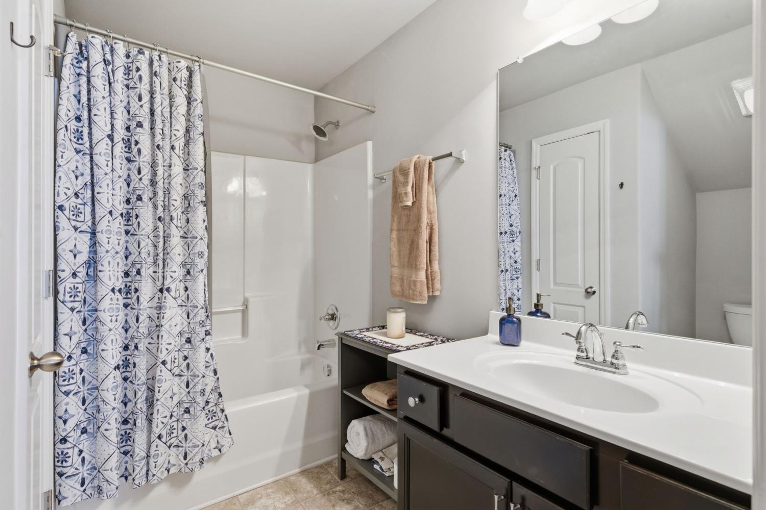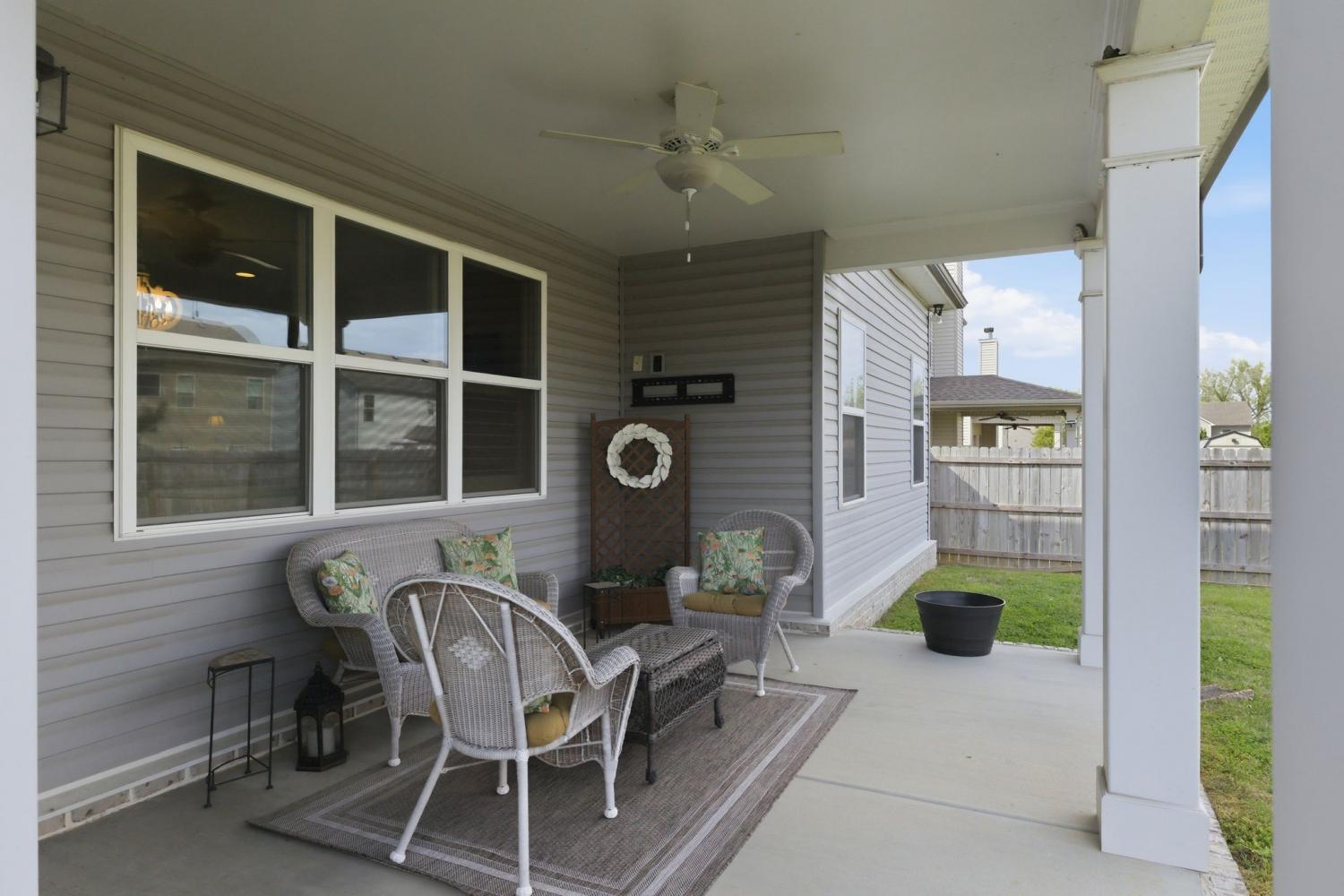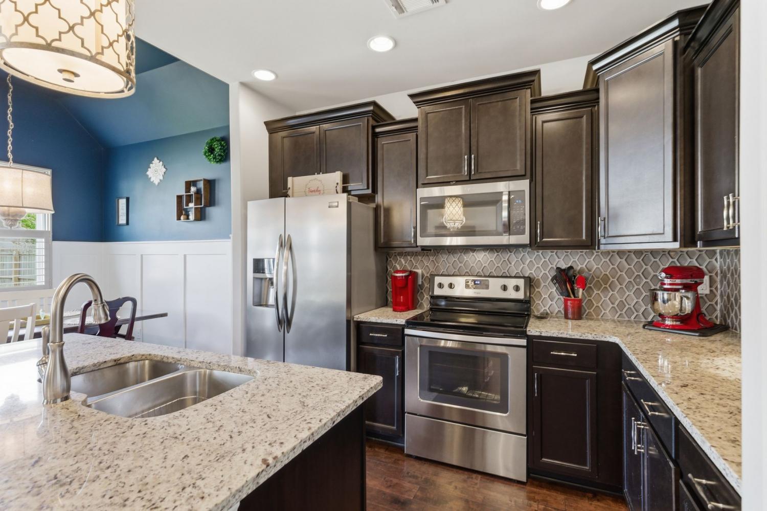 Gorgeous 4 bed/3bath, large bonus room, fully fenced back yard. Mostly one level living with 3 bedrooms and 2 baths on the main level. Upstairs offers an expanded bonus room, 1 bedroom with full bath: perfect for teen suite, secondary primary or for guest. Hdwd floors, granite counter tops, tile backsplash, kitchen appliances stay. Covered back patio. Upgraded lighting package, gas fireplace, Lots of storage. Community Pool. Note***Gas tank was removed by gas company at the time of purchase. Fireplace was functional at time of purchase.