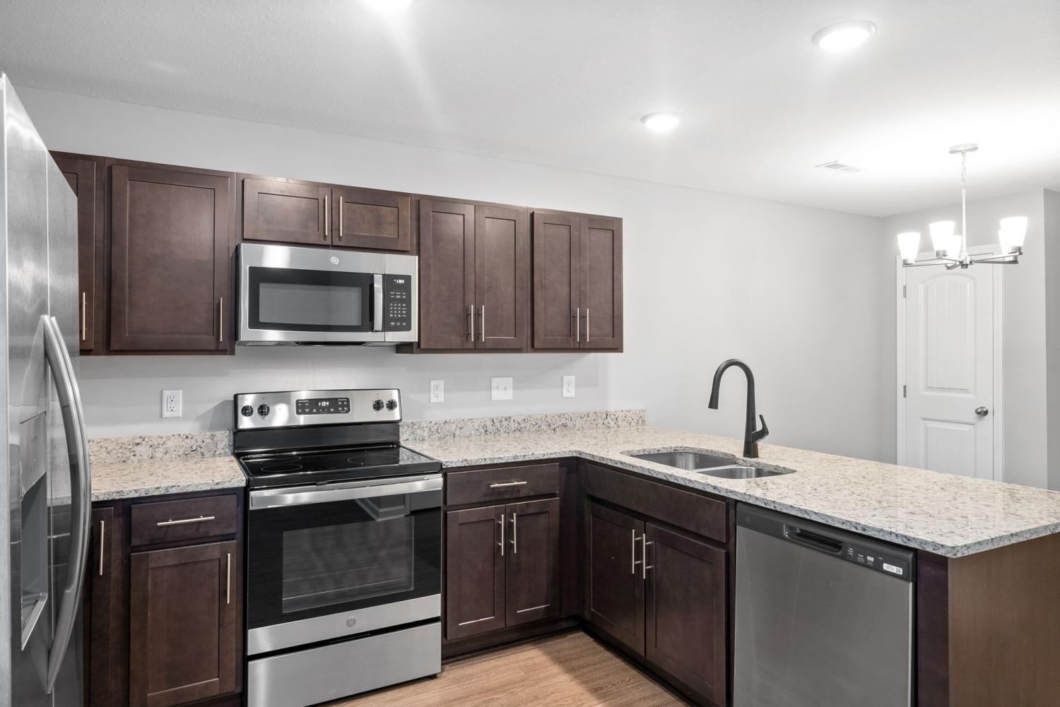 Like new townhome conveniently located just minutes from shopping, restaurants and more! Beautiful LVP flooring, large open living room, completely upgraded kitchen with granite countertops and stainless steel appliances, first floor powder room, two primary suites on second level each with private bath, great private patio, additional storage in back of building! Pet Friendly! Trash included! Pet rent applicable.
