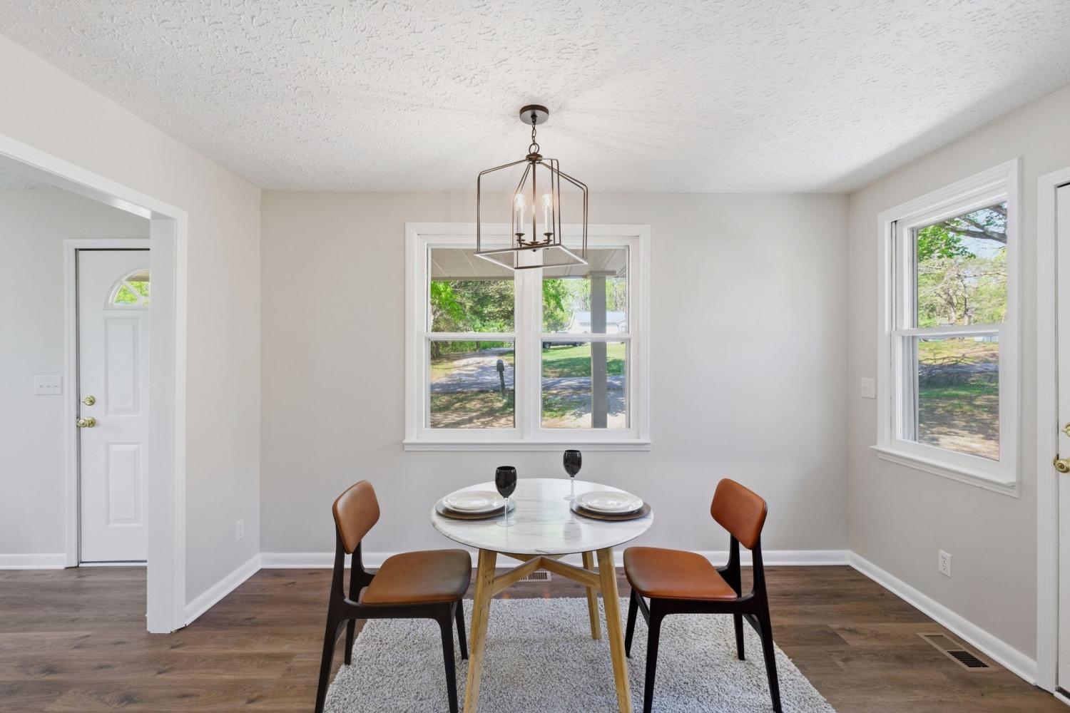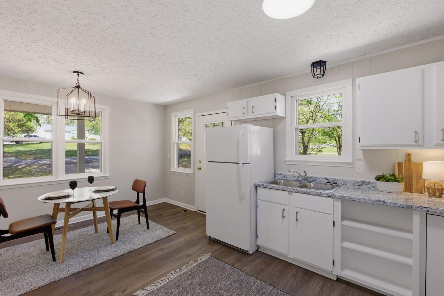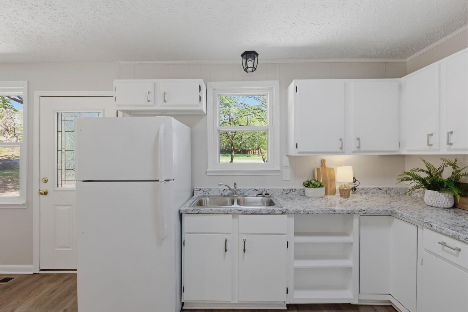 Totally remodeled home with fenced in back yard located in the Burns area only 5 minutes to I40 NEW HVAC and ductwork All new plumbing New bathroom with tile tub surround Upgraded insulation New paint and luxury vinyl flooring Kitchen has open dinning area perfect for family table Kitchen door opens onto new patio area New concrete side patio and walkway to front porch Beautiful old trees shade the front and side yard Owner/agent