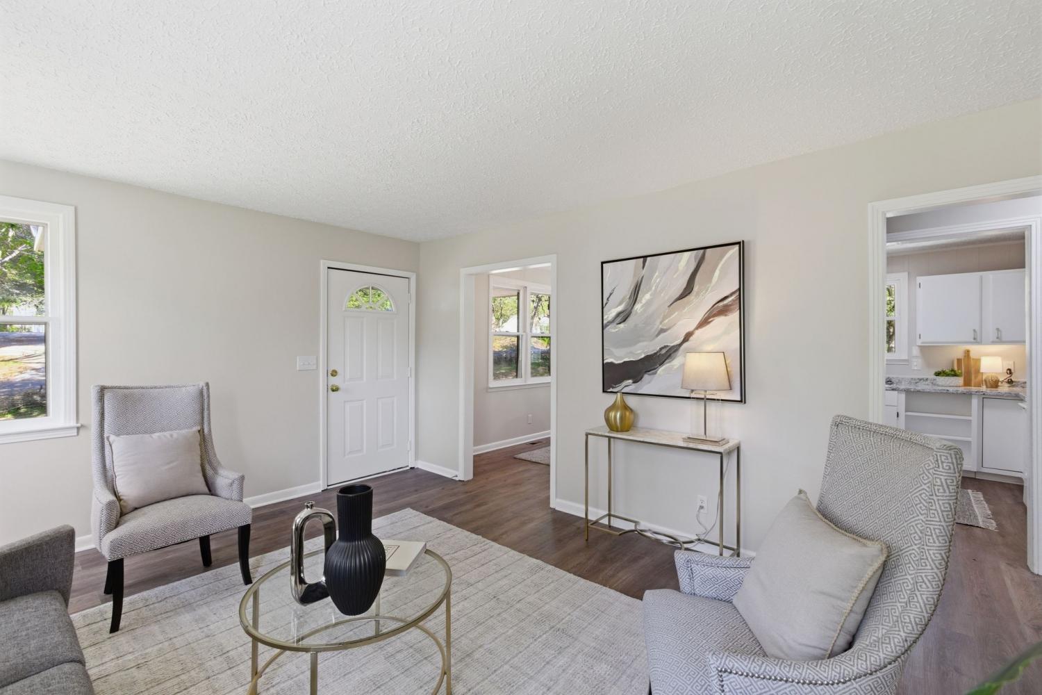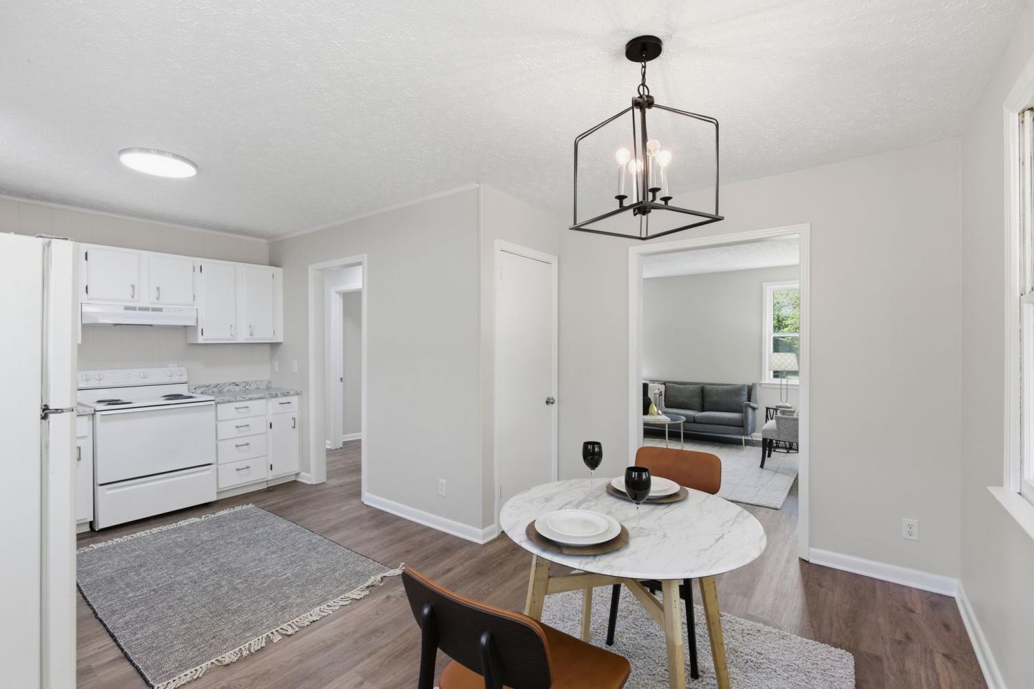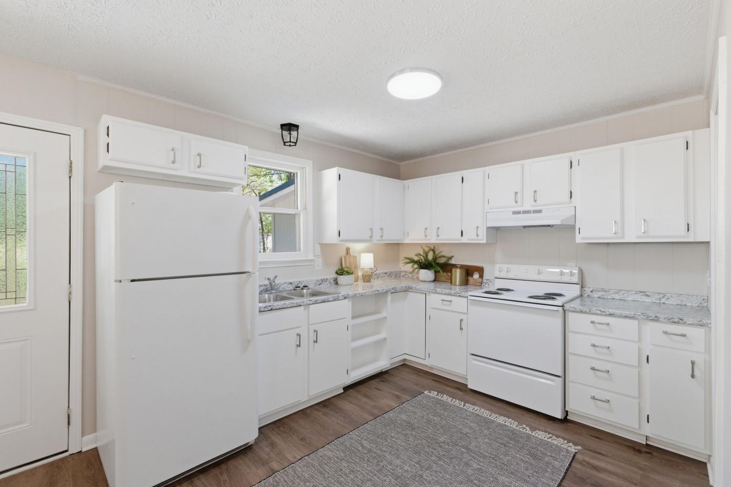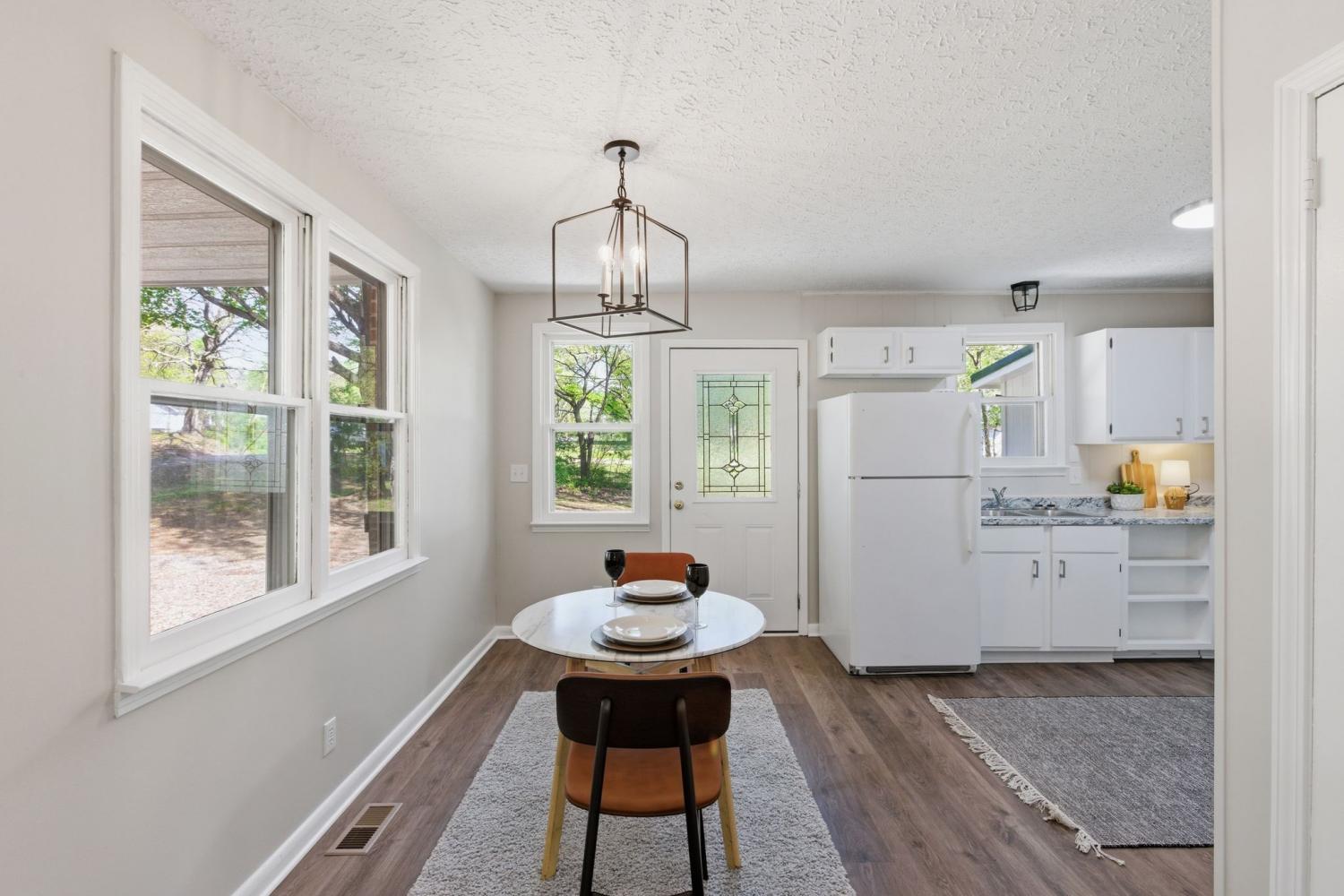 Totally remodeled home with fenced in back yard located in the Burns area only 5 minutes to I40 NEW HVAC and ductwork All new plumbing New bathroom with tile tub surround Upgraded insulation New paint and luxury vinyl flooring Kitchen has open dinning area perfect for family table Kitchen door opens onto new patio area New concrete side patio and walkway to front porch Beautiful old trees shade the front and side yard Owner/agent