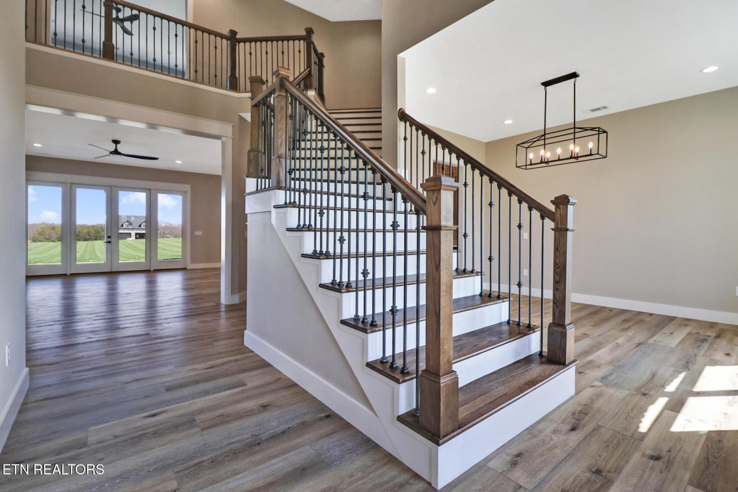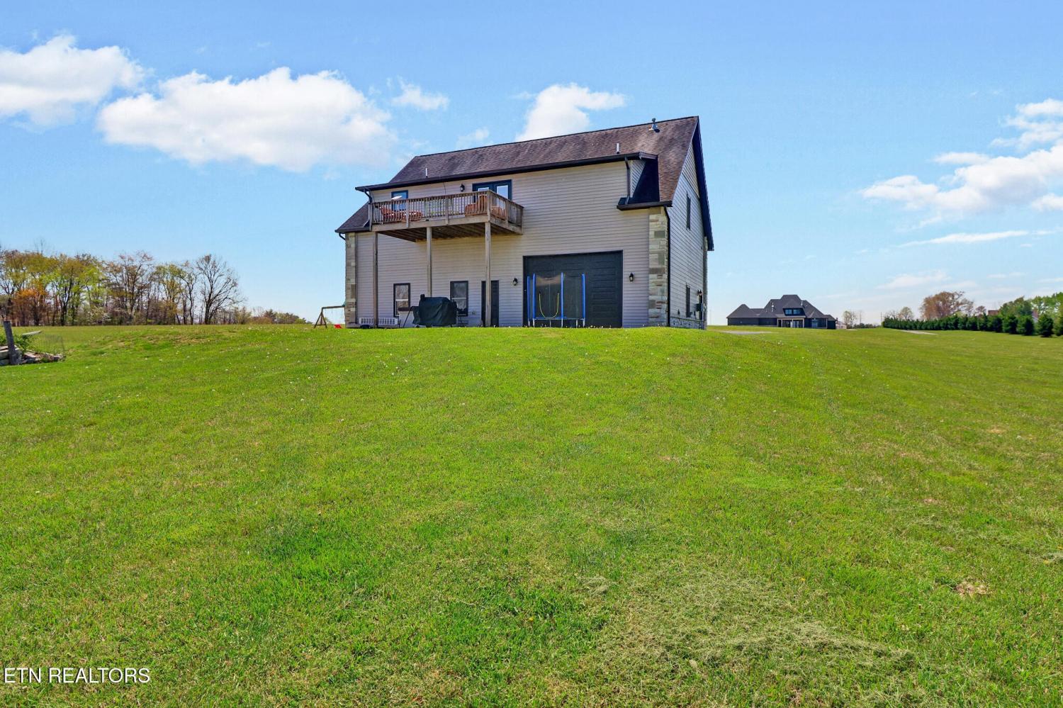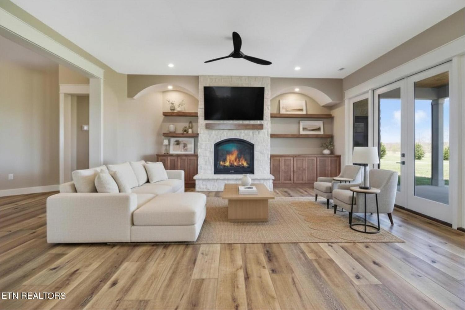 Stunning Tennessee Home situated on 20+ acres just minutes from I-40 and downtown Crossville. This impressive property is 4,314 sq ft of living space, 4 BR and 5 Baths, and has an attached 3-car garage. As you step inside, you're welcomed by a grand wooden staircase that sets the tone for the home's elegance. MAIN-LEVEL LIVING: features a primary suite with a large bay window and a spa-like ensuite with a tile walk-in shower, corner soaking tub, double vanity, and spacious closet with a built-in safe room. You'll find an additional bedroom with its own full bath, along with a dedicated office with glass french doors. GOURMET KITCHEN: equipped with custom cabinetry, quartz countertops, SS appliances, pantry, wet bar, formal dining area, and a large laundry center. LIVING ROOM: showcases a stone gas fireplace with custom built-in shelving with access out to the covered back porch and patio ideal for entertaining. UPPER LEVEL: 2 private ensuite bedrooms complemented by a spacious playroom, separate media room, workout room or 5th BR, and additional laundry hookups. GUEST APARTMENT: 1,681 sq ft sits above the 2091 sq ft 4-car garage, featuring a master bedroom, oversized walk-in closet, full bath, large kitchen with a spacious living room perfect for guests or extended living arrangements. This could be used as a rental income property. OUTDOOR SETTING: Beautiful Tennessee stone fence lines the front of the 20+ acres with a winding creek running along the rear, offering exceptional outdoor enjoyment and endless potential. Property tax reflects apartment and land only. A rare opportunity combining luxury living, acreage, and versatility. By Appointment Only. Apartment is occupied by the sellers.