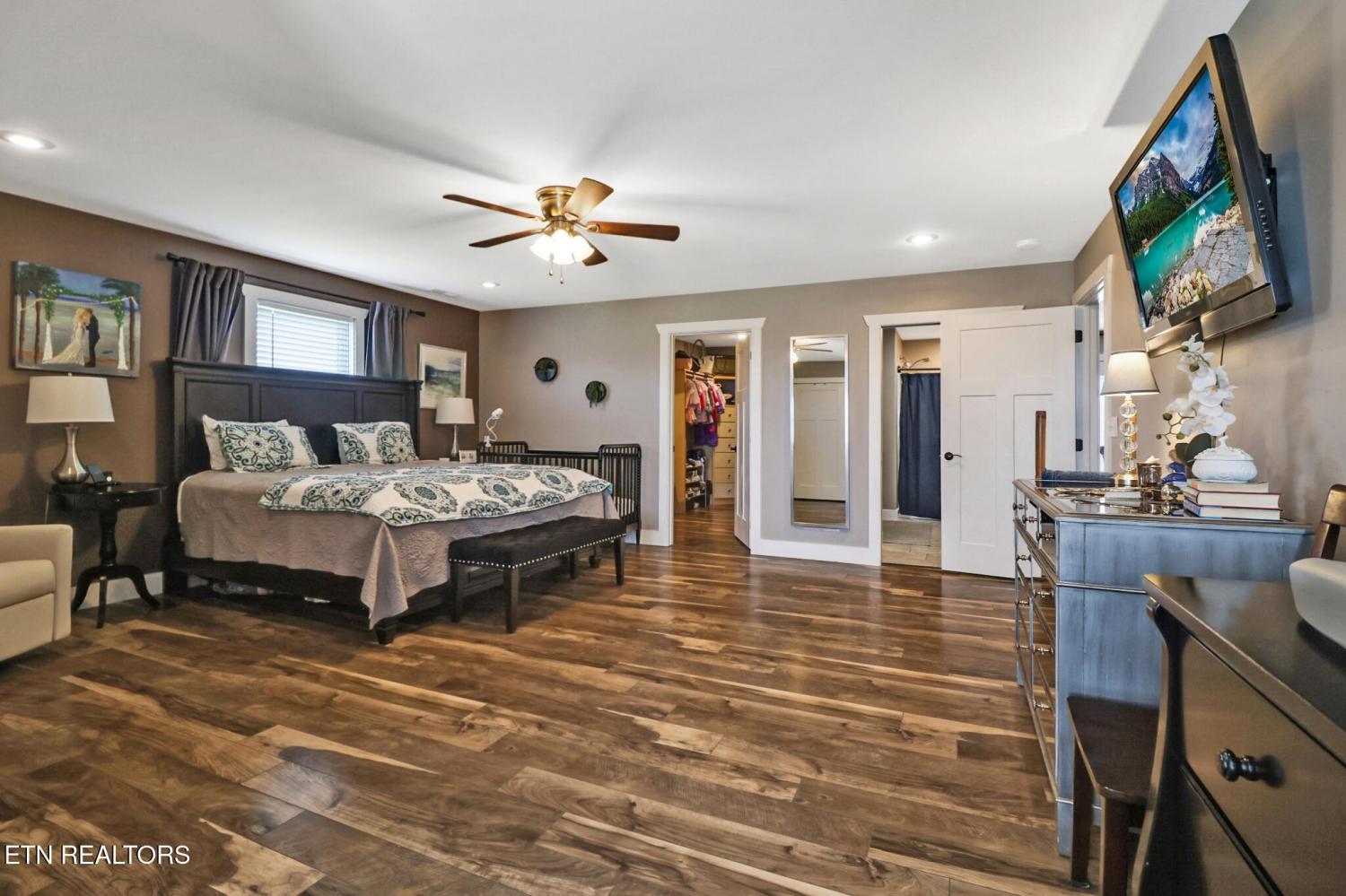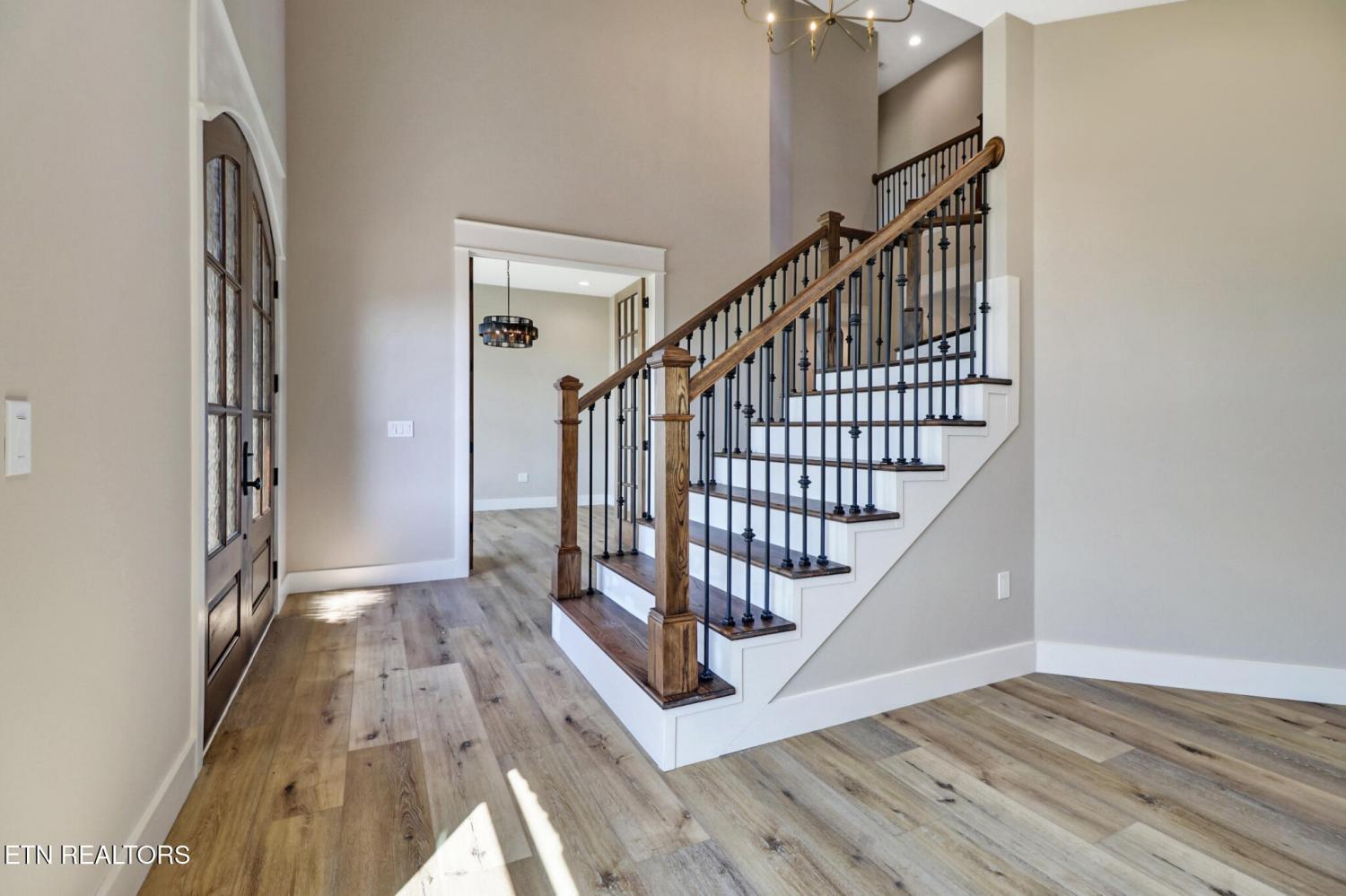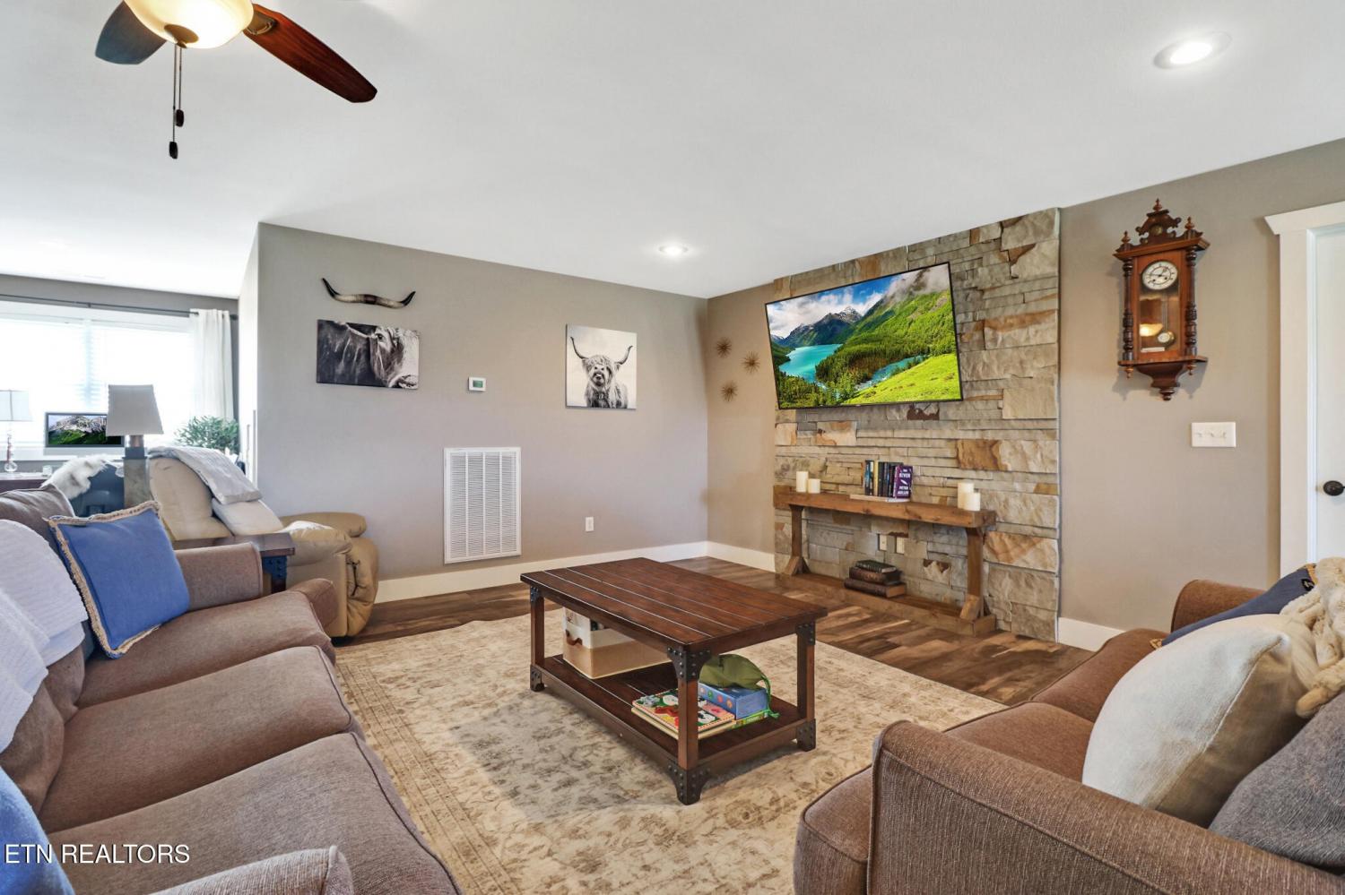Stunning Tennessee Home situated on 20+ acres just minutes from I-40 and downtown Crossville. This impressive property is 4,314 sq ft of living space, 4 BR and 5 Baths, and has an attached 3-car garage. As you step inside, you're welcomed by a grand wooden staircase that sets the tone for the home's elegance. MAIN-LEVEL LIVING: features a primary suite with a large bay window and a spa-like ensuite with a tile walk-in shower, corner soaking tub, double vanity, and spacious closet with a built-in safe room. You'll find an additional bedroom with its own full bath, along with a dedicated office with glass french doors. GOURMET KITCHEN: equipped with custom cabinetry, quartz countertops, SS appliances, pantry, wet bar, formal dining area, and a large laundry center. LIVING ROOM: showcases a stone gas fireplace with custom built-in shelving with access out to the covered back porch and patio ideal for entertaining. UPPER LEVEL: 2 private ensuite bedrooms complemented by a spacious playroom, separate media room, workout room or 5th BR, and additional laundry hookups. GUEST APARTMENT: 1,681 sq ft sits above the 2091 sq ft 4-car garage, featuring a master bedroom, oversized walk-in closet, full bath, large kitchen with a spacious living room perfect for guests or extended living arrangements. This could be used as a rental income property. OUTDOOR SETTING: Beautiful Tennessee stone fence lines the front of the 20+ acres with a winding creek running along the rear, offering exceptional outdoor enjoyment and endless potential. Property tax reflects apartment and land only. A rare opportunity combining luxury living, acreage, and versatility. By Appointment Only. Apartment is occupied by the sellers.
