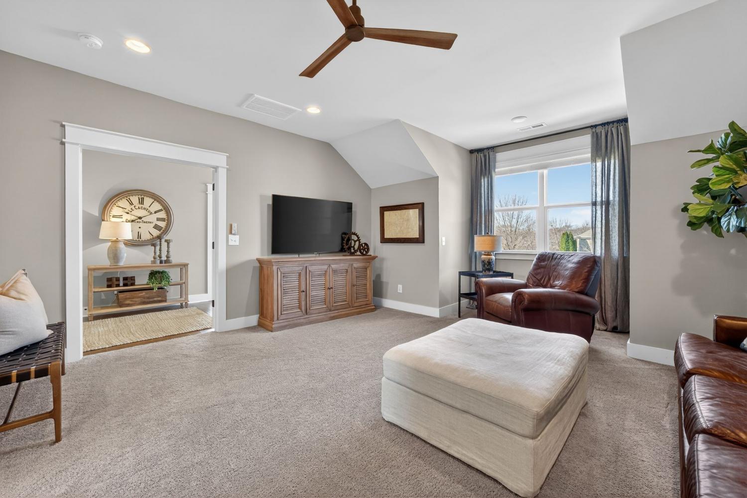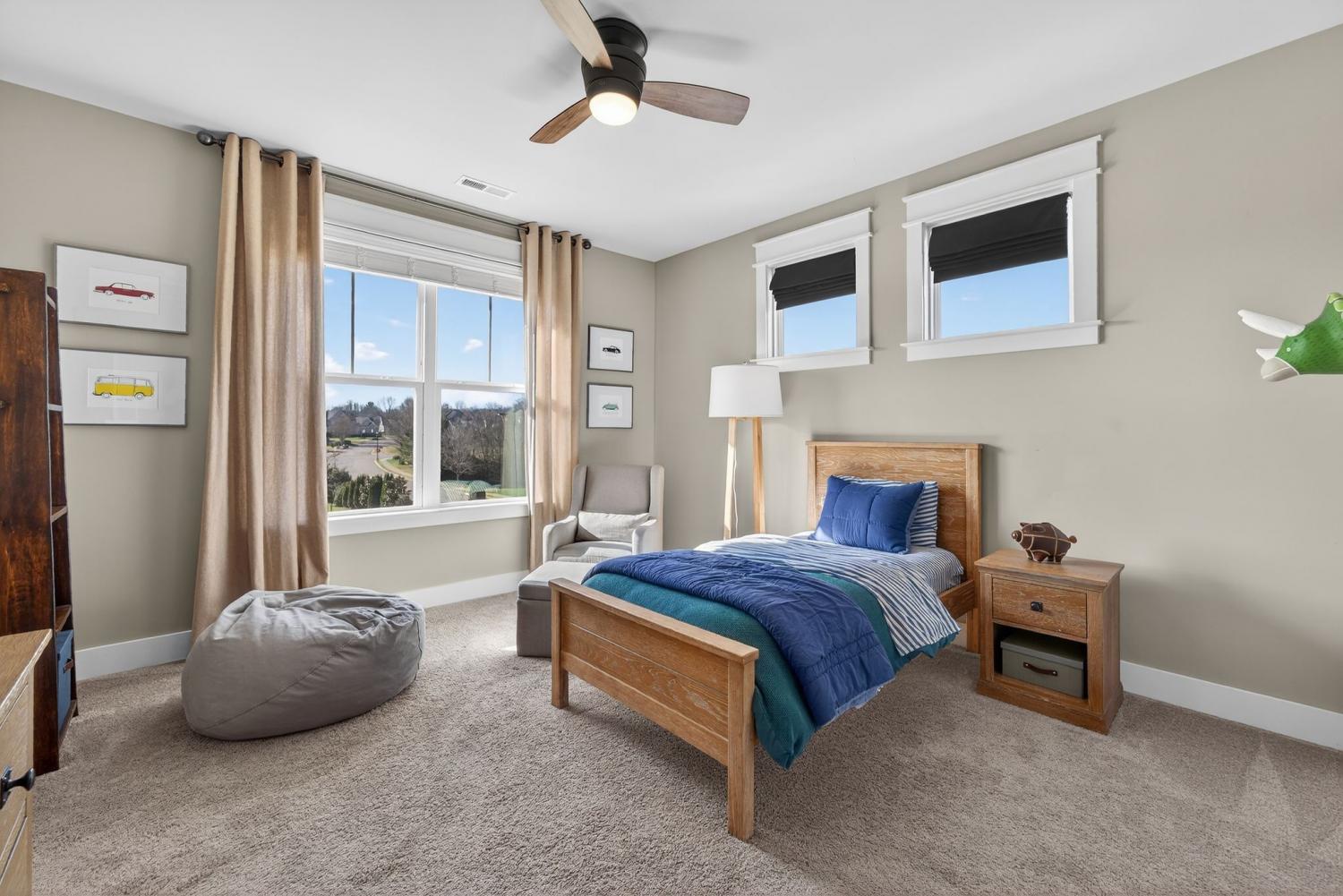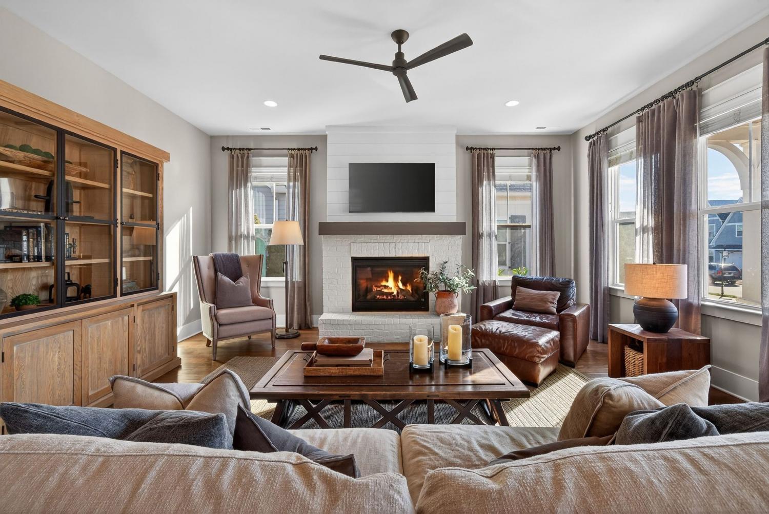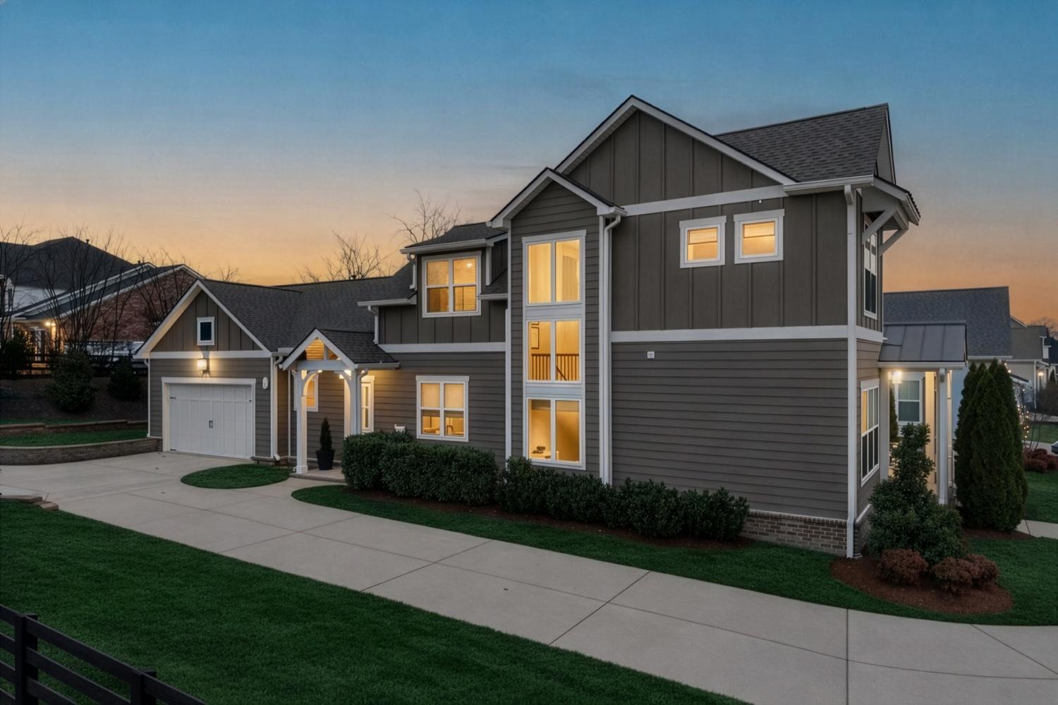 Situated in a desirable, boutique neighborhood in Williamson County, this home has the "Wow" factor showcasing stunning architecture, character, and fine touches throughout: Restoration Hardware, Pottery Barn, Graham's Lighting fixtures- hardware & draperies remain - Highly walkable location- dining, Harvey park, sidewalks and retail! The moment you step inside, you feel at home. High ceilings give a grand impression that you have to see in person. Welcoming entry, wood flooring throughout home, accent walls, living room w/ fireplace, primary and secondary bedroom/office on the main level. Secondary bath offers walk-in tiled shower and designer wall paper. Open designed, spacious kitchen with generous island, leathered granite countertops, wall oven, walk-in pantry, and gas cooktop -overlooking a dedicated dining area. Primary suite with vaulted ceiling. Spa-like Primary bath- extensive quartz dual vanity, freestanding tub, and extended, tiled shower. Floating design staircase leads to thoughtfully laid out upper level. Recreation room (or 5th BR) with walk-in closet and private bath. 2 Additional Bedrooms- Jack-Jill Bath w/ private vanity areas. Exterior features a side "tower" with windows, and friend's entry, tasteful landscaping, lighting, firepit, front porch, and covered entertainer's porch. This home and neighborhood are not "cookie cutter!" Come and see the difference! Zoned for new Amanda North elementary school! *up to $10,000 Lender Incentive with Hilary Hollingsworth-Modern Mortgage 615-236-6054 for qualified buyers to use for closing costs or rate buy down! Quick Closing- move right in!