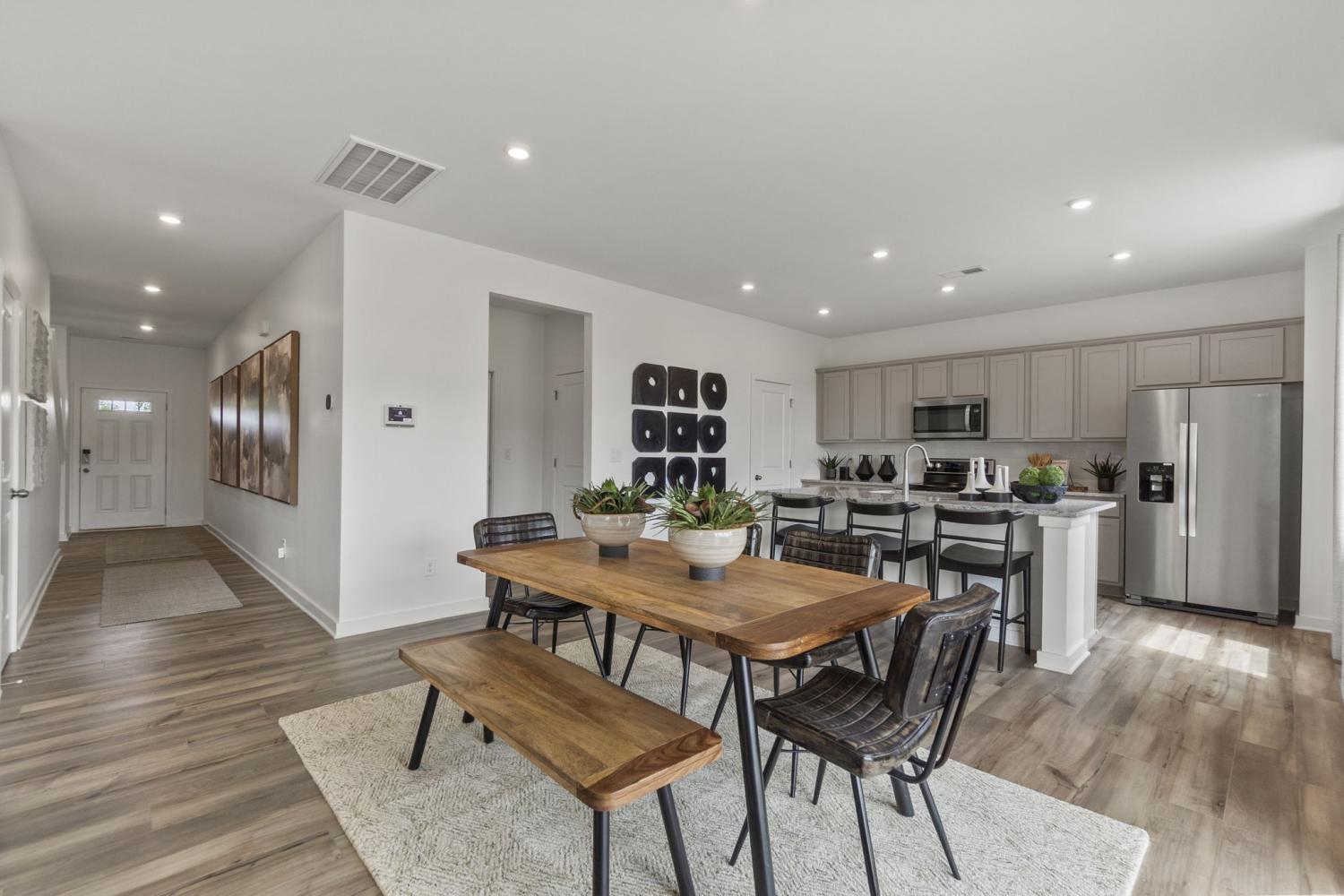 Step into this beautifully designed Harding plan at Barton Hills, offering a flexible layout and stylish finishes just steps from the community’s amenities. At the front of the home, one of two secondary downstairs bedrooms creates the perfect spot for a quiet retreat, or even a home office. Just beyond, the extended kitchen layout offers added counterspace, a walk-in pantry, and flows easily into the great room, providing an incredible amount of open space for hosting or just hanging out. A mud room with space for a valet/drop zone adds convenience for busy days, while the covered patio off the kitchen invites outdoor entertaining and relaxation. Upstairs, a spacious loft gives everyone room to spread out—ideal as a media room, playroom, or second living area. The owner’s suite features an enormous walk-in closet and a bathroom with an oversized shower and a generous linen closet for ultimate comfort.