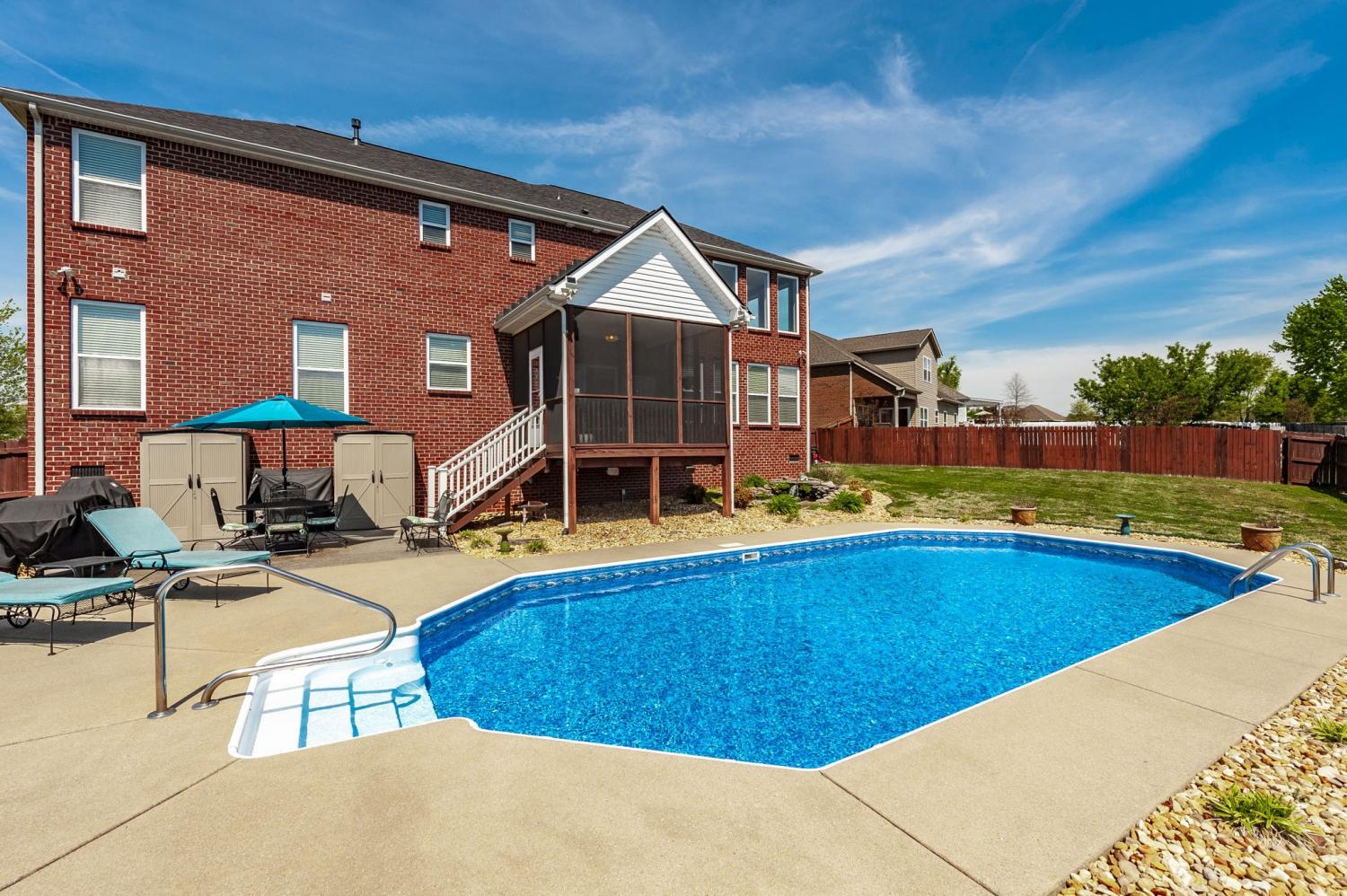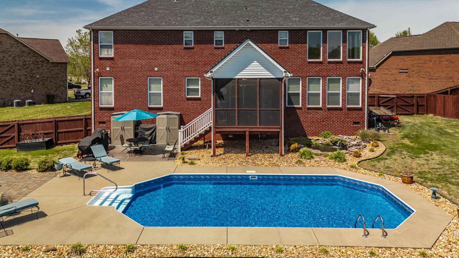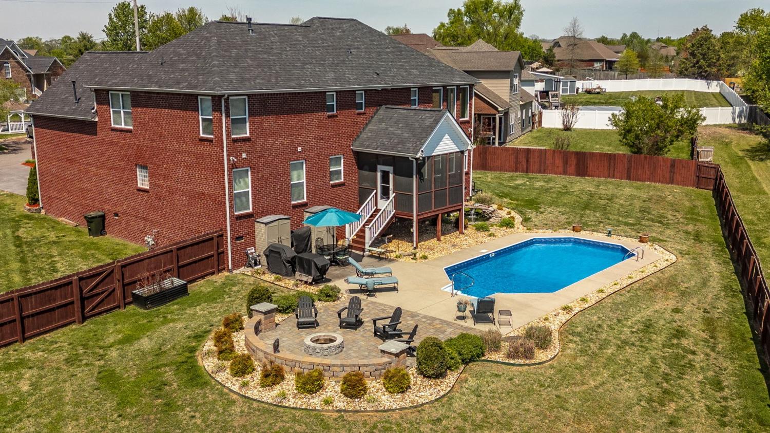Welcome to this beautifully maintained all-brick home in the highly sought-after Cambridge Farms subdivision! Nestled on a quiet cul-de-sac, this 4-bedroom, 3.5-bath property offers the perfect blend of comfort, space, and outdoor living.Step inside to a bright and inviting living room featuring stunning vaulted ceilings, creating an open and airy feel. The thoughtfully designed floor plan includes a separate office—ideal for working from home—as well as a spacious bonus room complete with an additional sitting area, perfect for a media room, play space, or guest retreat. Outdoors is where this home truly shines. Enjoy your own private oasis with a fully fenced, large backyard featuring an in-ground pool with a brand new liner, a custom firepit area perfect for entertaining, and a peaceful koi pond that adds a touch of tranquility. The screened-in back deck provides the perfect place to relax and unwind while taking in the beautiful surroundings. With a one-year-old roof and pride of ownership throughout, this home is truly move-in ready. Don’t miss your chance to own this exceptional property in one of the area’s most desirable neighborhoods!