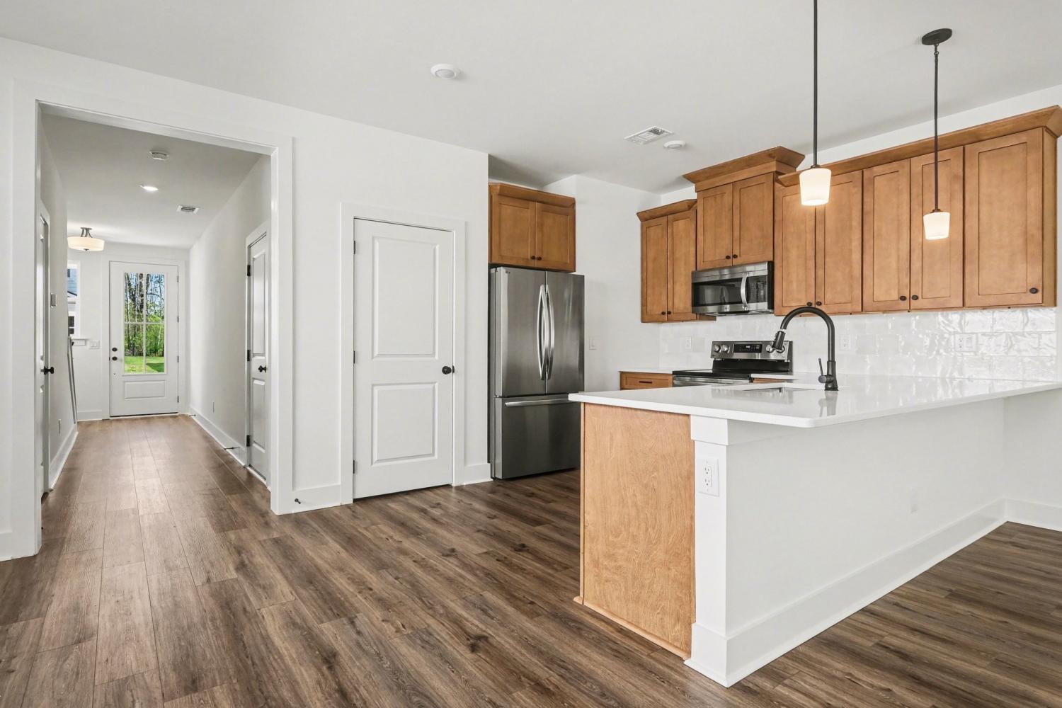 Better Than New • Upgraded Premium End‑Unit • Stunning Ridge Views Better than new and priced to sell. Move‑in ready end‑unit with no punch‑list and premium upgrades throughout. Enjoy panoramic Harpeth Valley ridge views, incredible natural light from one of the brightest floor plans in the community, and a private, shaded backyard—a rare combination at this price point. Upgrades include a reinforced Tuff Screen patio door, privacy landscaping, soft‑close cabinetry, 21" comfort‑height toilets for easier, more comfortable use, an oversized primary shower, and upgraded dimmers, switches, and outlet plugs throughout the home. Open‑concept living, spacious kitchen, and windows on three sides create a warm, airy feel you won’t find in builder inventory. Located moments from I‑40 with access to award‑winning amenities: three pools (including an adult‑only pool), playground, canoe launch, and the Harpeth River walking trail. Seller offers 1 year HOA paid, up to $5,000 lender credit, a 1‑year appliance warranty, and an existing 10‑year structural warranty for peace of mind. A premium lot, upgraded finishes, completed repairs, and unbeatable views—this home delivers more value than new construction and is ready for immediate move‑in.