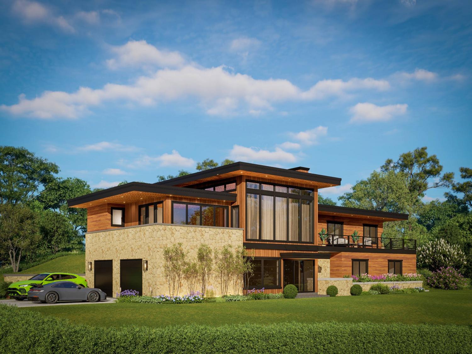 Build your dream home! Tucked away on a super private, highly sought-after road, this striking modern home blends clean design with natural surroundings for a true retreat feel—while still being conveniently located. Our concept shows warm wood tones, natural stone, and expansive windows to create a timeless exterior and fill the home with light, but all finishes and selections can be chose by the buyers. The open-concept living spaces feature soaring ceilings and seamless flow to a large covered porch, perfect for entertaining or relaxing while taking in the peaceful setting. The kitchen offers sleek finishes and functional design, opening effortlessly to the main living and dining areas. With 4 bedrooms, a dedicated office, and a spacious rec room, there’s room for both everyday living and flexibility. The private setting enhances the home’s serene feel, surrounded by mature trees and nature. The lot also offers incredible potential with space to add a detached garage, shop, or pool house—and even a pool—making it easy to create your own custom outdoor oasis. Interior renderings coming soon!