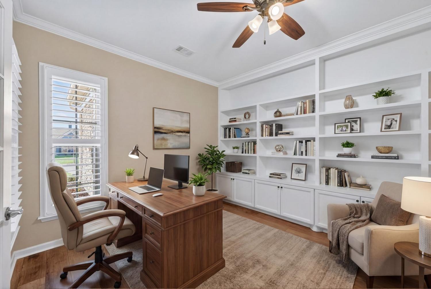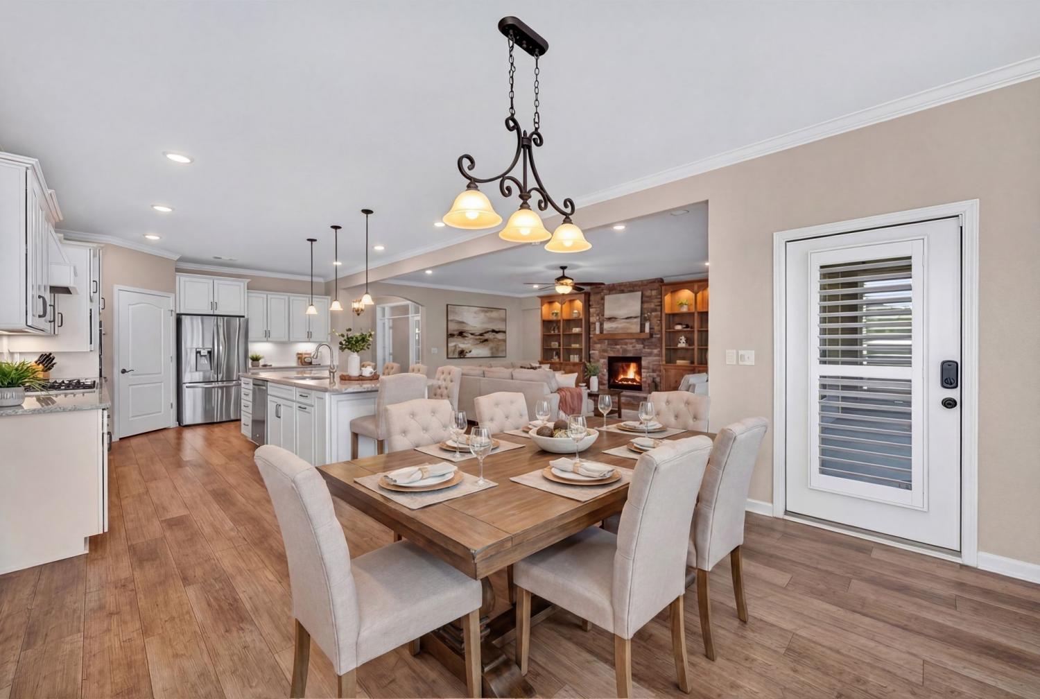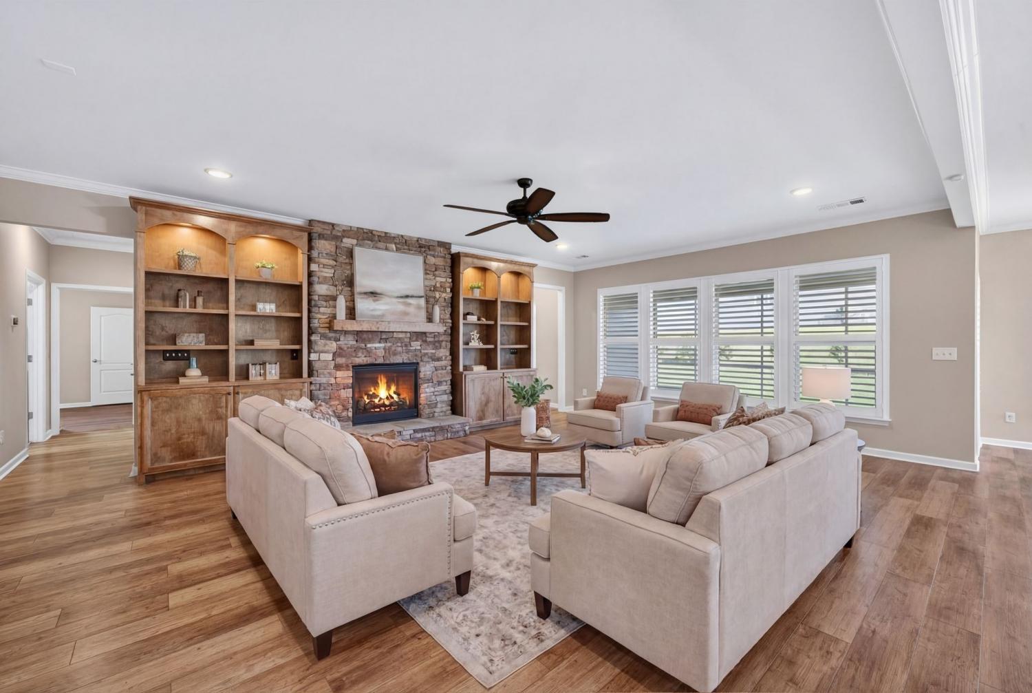 Welcome to your next chapter of refined comfort and effortless living in the highly sought-after 55+ community of Southern Springs. This stunning single-level home offers 3 bedrooms, 3 bathrooms, and 2,430 square feet of thoughtfully designed living space where luxury and convenience come together beautifully. From the moment you step inside, you’ll find an open, inviting layout enhanced by fresh paint throughout, new designer lighting, and extended wood flooring that adds warmth and continuity. Gather around the cozy fireplace in the living room, beautifully complemented by new custom built-ins, host memorable dinners in the elegant dining area. Enjoy the gourmet kitchen, perfect for entertaining. Featuring a dedicated office with new custom built-ins offers a refined and functional workspace. Step outside to your private screened-in patio, the perfect place to enjoy peaceful mornings and relaxing evenings. The spacious primary suite offers a serene retreat, complete with a walk-in closet featuring extra shelving for added organization. Additional bedrooms provide comfort and flexibility for guests, hobbies, or home gym. Designed with everyday ease in mind, the utility room including ample storage. The oversized two-car garage features newly epoxy-coated floors, a dedicated golf cart bay, and access to a fully accessible attic for even more valuable storage space. Southern Springs offers an exceptional lifestyle filled with connection, activity, and relaxation. Enjoy the resort-style pool, tennis and pickleball courts, and yoga studio, all just moments from your door. This is more than a home. It’s a place to thrive, connect, and truly enjoy the lifestyle you’ve been waiting for.