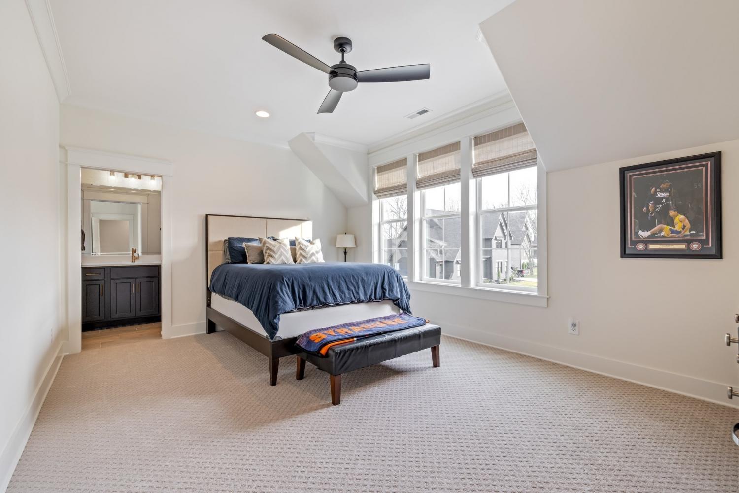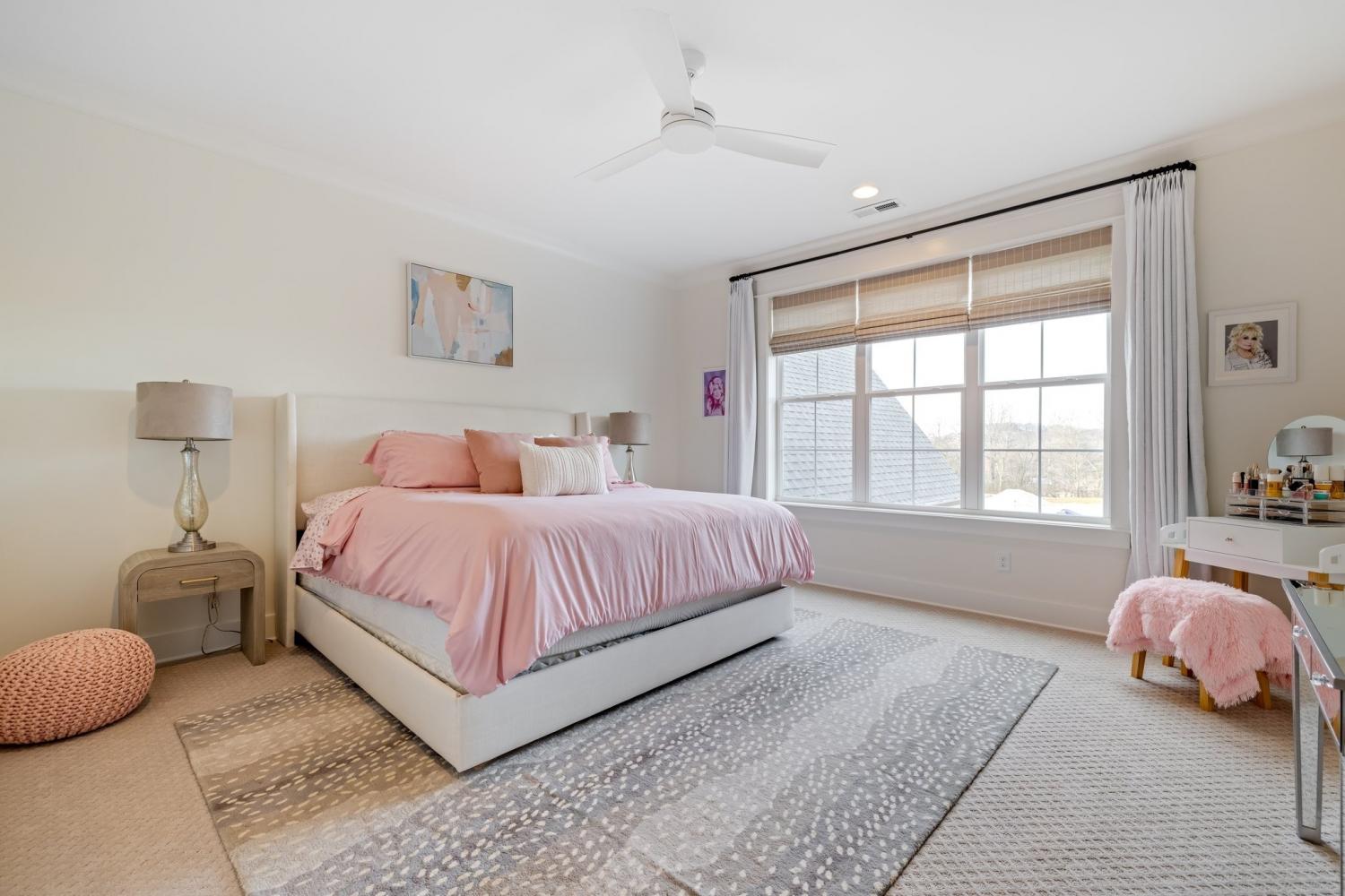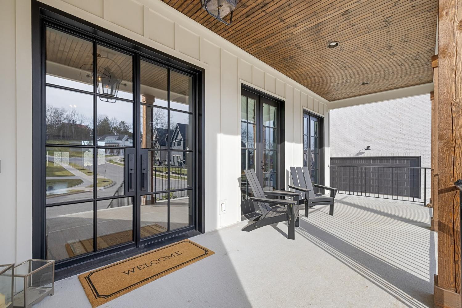 Better than brand new with over $100K in upgrades! This stunning 5-bedroom, 5.5-bath residence offers over 5,000 sq. ft. of thoughtfully designed living space, featuring a custom floor plan tailored for modern living. The chef’s kitchen impresses with ceiling-height custom cabinetry, a 10-foot Taj Mahal quartzite island, a matching full-height backsplash with an elegant ledge, a custom hood, and a large working pantry with hidden appliances and abundant storage. Throughout the home, you’ll find a designer lighting package, an ArcusStone fireplace, built-in surround sound, designer woven Roman shades, 4-inch white oak hardwoods, and detailed custom millwork that elevate every room. The primary suite is a true retreat with a spa-inspired bath featuring designer tile, a rain shower, and a sconce-lit double vanity. Each bedroom includes its own en-suite bath for ultimate comfort and privacy. Enjoy two covered porches, with one overlooking the private backyard, plus a spacious 3-car garage for additional storage. Located in a vibrant community offering a clubhouse, pool, and pickleball courts, this home blends timeless design with modern functionality.