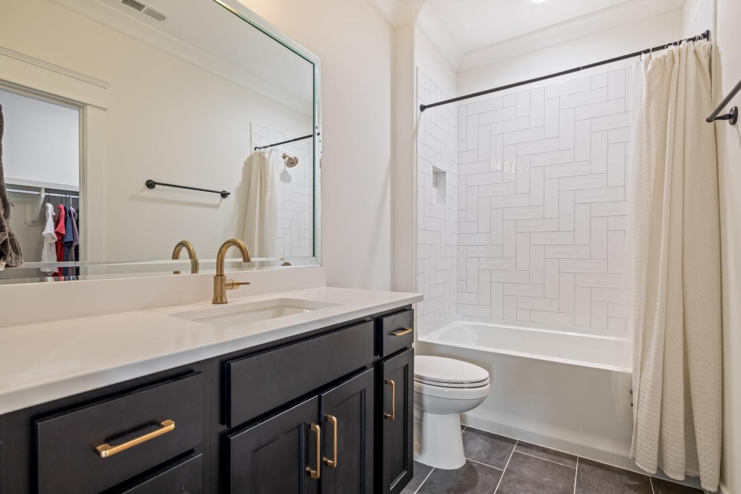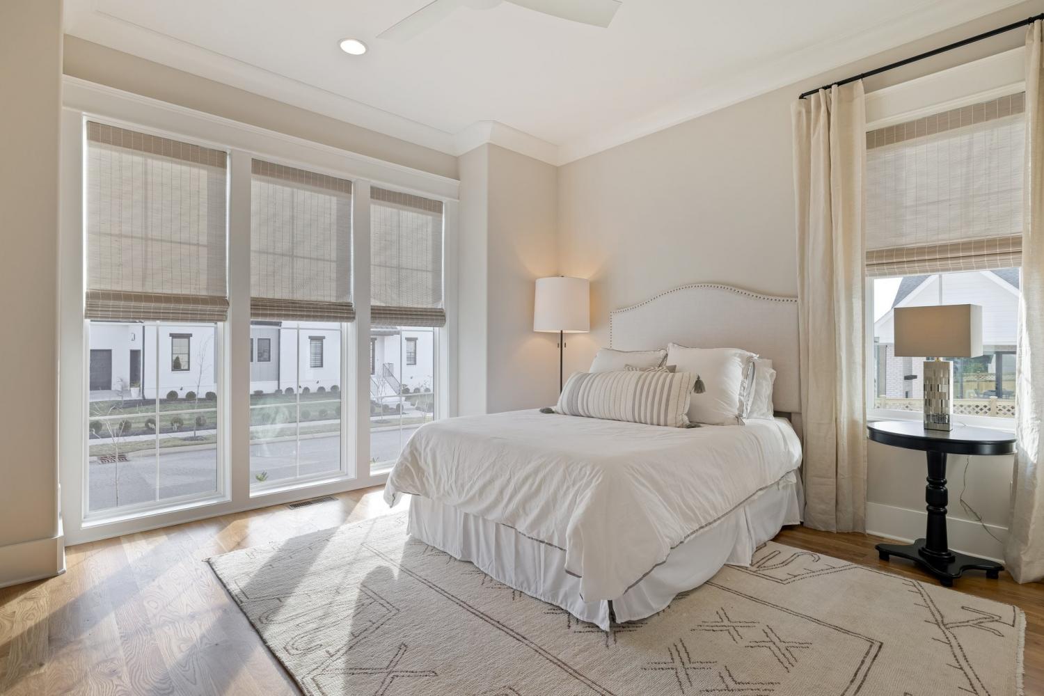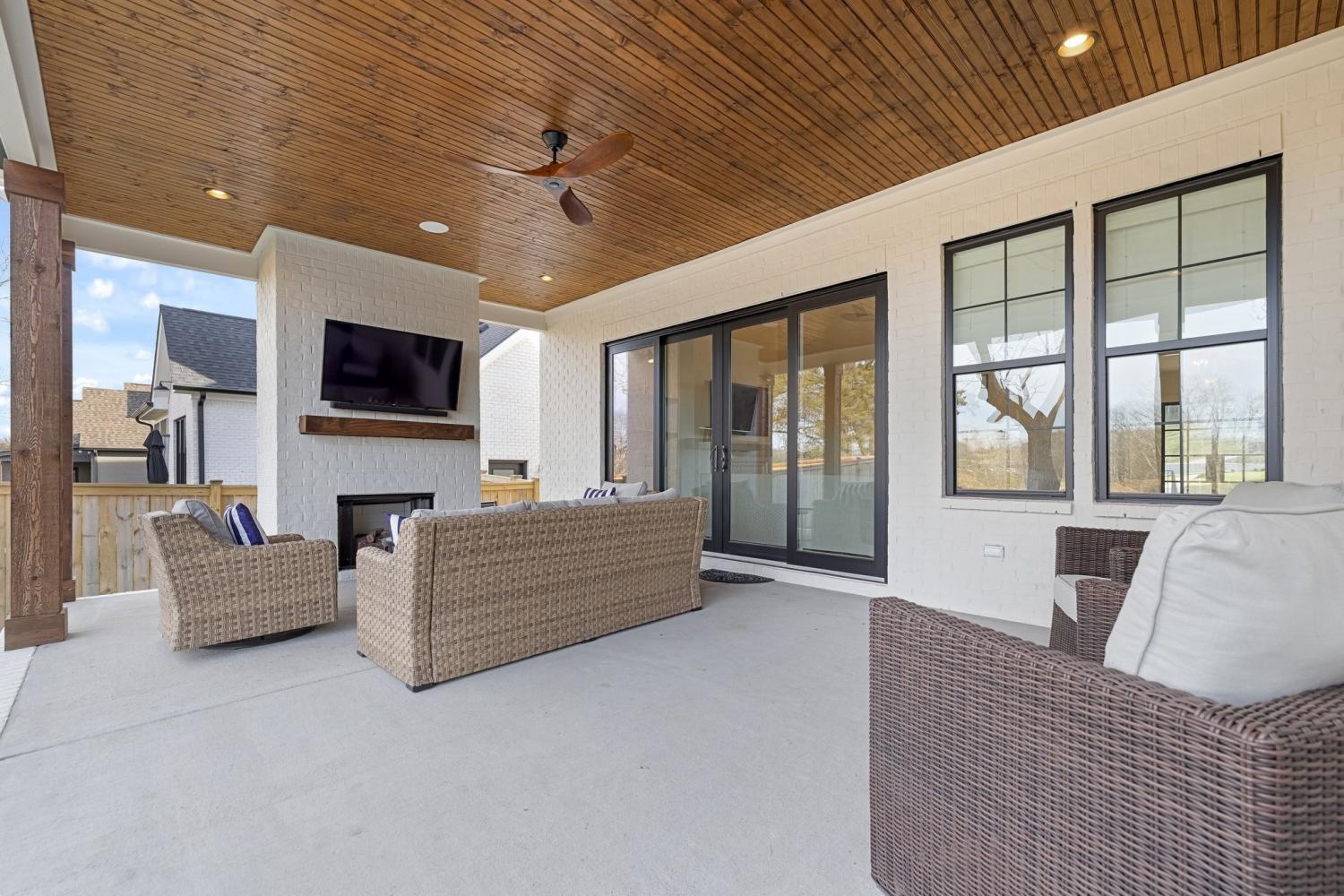 Better than brand new with over $100K in upgrades! This stunning 5-bedroom, 5.5-bath residence offers over 5,000 sq. ft. of thoughtfully designed living space, featuring a custom floor plan tailored for modern living. The chef’s kitchen impresses with ceiling-height custom cabinetry, a 10-foot Taj Mahal quartzite island, a matching full-height backsplash with an elegant ledge, a custom hood, and a large working pantry with hidden appliances and abundant storage. Throughout the home, you’ll find a designer lighting package, an ArcusStone fireplace, built-in surround sound, designer woven Roman shades, 4-inch white oak hardwoods, and detailed custom millwork that elevate every room. The primary suite is a true retreat with a spa-inspired bath featuring designer tile, a rain shower, and a sconce-lit double vanity. Each bedroom includes its own en-suite bath for ultimate comfort and privacy. Enjoy two covered porches, with one overlooking the private backyard, plus a spacious 3-car garage for additional storage. Located in a vibrant community offering a clubhouse, pool, and pickleball courts, this home blends timeless design with modern functionality.