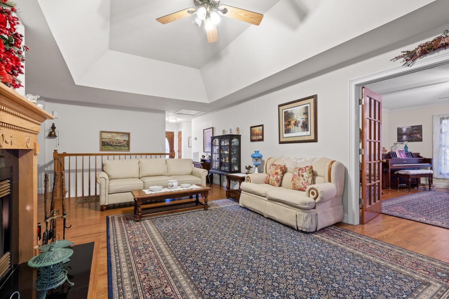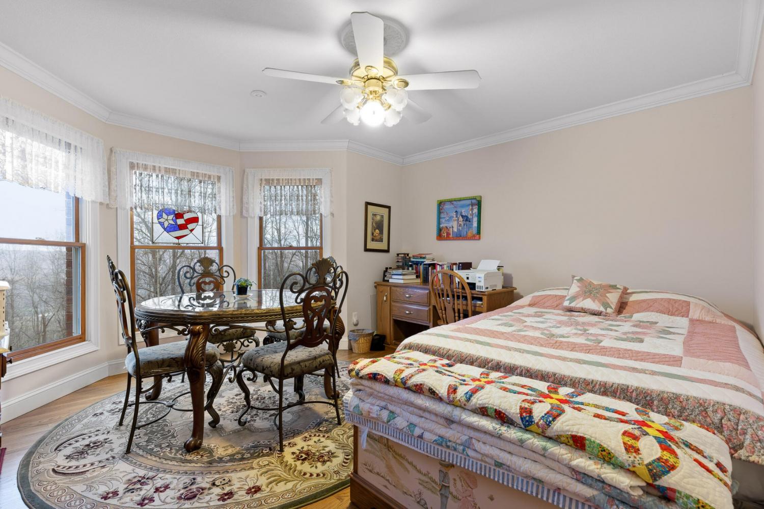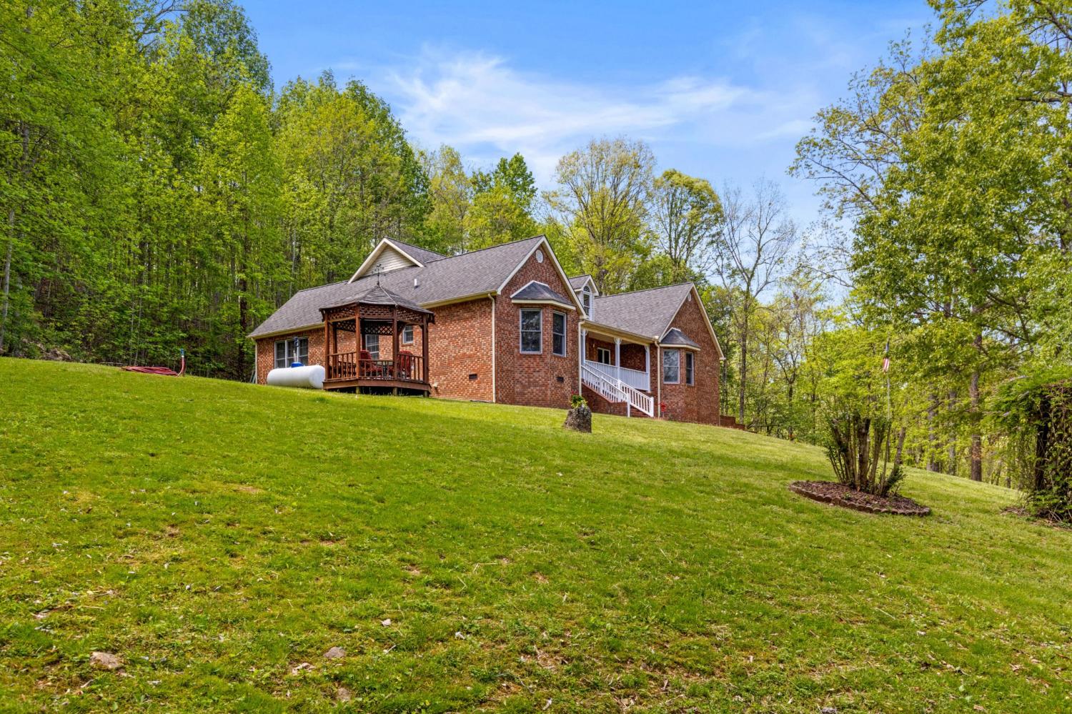 Discover your own private mountain top retreat on 32.6 breathtaking acres just 10 miles from Sewanee University. This one-owner, all-brick home offers the perfect blend of privacy, comfort, and long-term potential--complete with assumable greenbelt status and already subdivided into four +/- 8-acre tracts. A scenic 6-degree elevation concrete driveway welcomes you home, leading to an oversized 2.5-car garage featuring a drain, water access, and its own half bath. Step inside to an inviting, open layout where a stunning dual gas/wood-burning fireplace anchors the great room, highlighted by tray ceilings and warm natural light. The adjoining family room and dining area--framed by picturesque bay windows--capture sweeping mountain and wooded views. The kitchen is both functional and timeless, featuring custom oak cabinetry, generous prep space, and Corian countertops. The private primary suite offers a sitting area, bay window views, oversized walk-in closet, and a spa-like en-suite with whirlpool tub, separate shower, and dual vanities. Two additional bedrooms provide space and charm, with shared access to a well-appointed bath. Thoughtful details include crown molding, 36'' doorways for accessibility, and main-level living. A full basement with 12-14 ft ceilings, fireplace, and full bath offers endless expansion potential. Outdoor features include a gazebo, outbuilding, and a 2,000-gallon water tank certified by Sewanee Fire Department as a hydrant. Modern upgrades include new 5-ton HVAC, fiber optic internet, underground utilities, 400-amp service, and a diesel backup generator. Enjoy unmatched privacy, natural beauty, and investment potential just minutes from I-24.