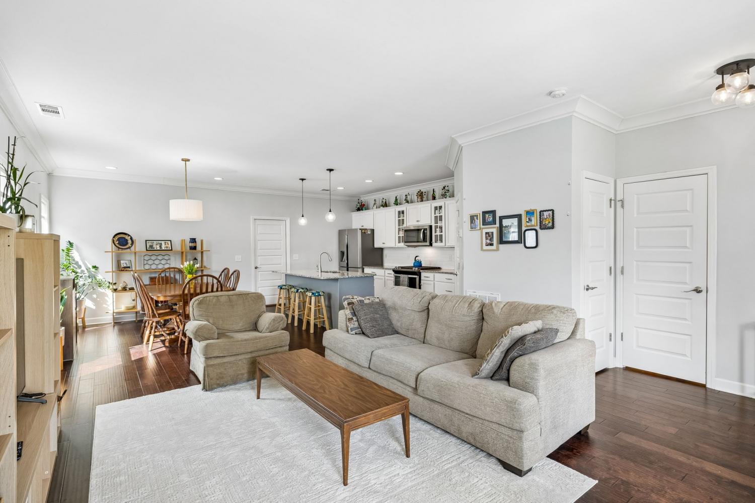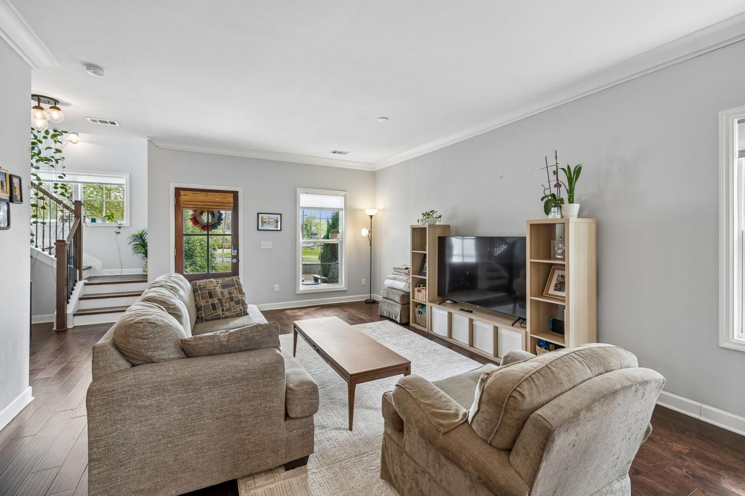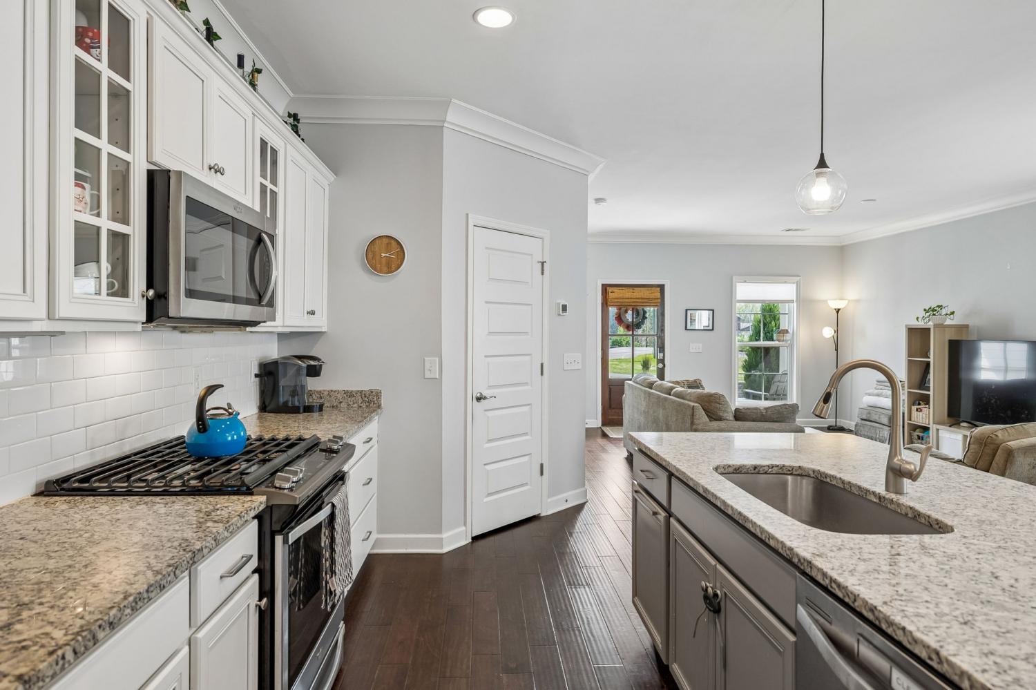 Adorable cottage-style home nestled in the charming Bellevue Station community! This beautifully maintained 3-bedroom, 2.5-bath home lives far larger than its square footage, offering a bright and open main level perfect for everyday living and entertaining. The spacious living, dining, and kitchen areas feature hardwood floors and elegant crown molding throughout. The oversized kitchen is a true centerpiece, complete with white cabinetry, granite countertops, a large center island, stainless steel appliances, and a walk-in pantry. Upstairs, you’ll find three generously sized bedrooms, including a relaxing primary suite with a private en-suite bath featuring a granite double vanity and an oversized shower. A second living area upstairs provides flexible space for a media room, playroom, or home office. Additional highlights include a walk-in laundry room and a 2-car garage, offering ample storage throughout. Conveniently located with quick access to I-40 and just 25 minutes from downtown Nashville, this home combines comfort, style, and location—making it a true must-see!