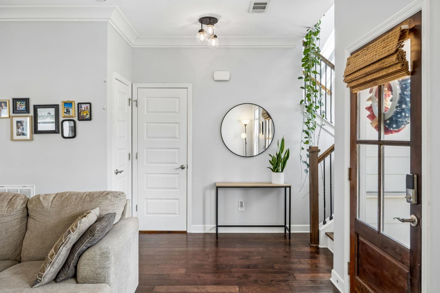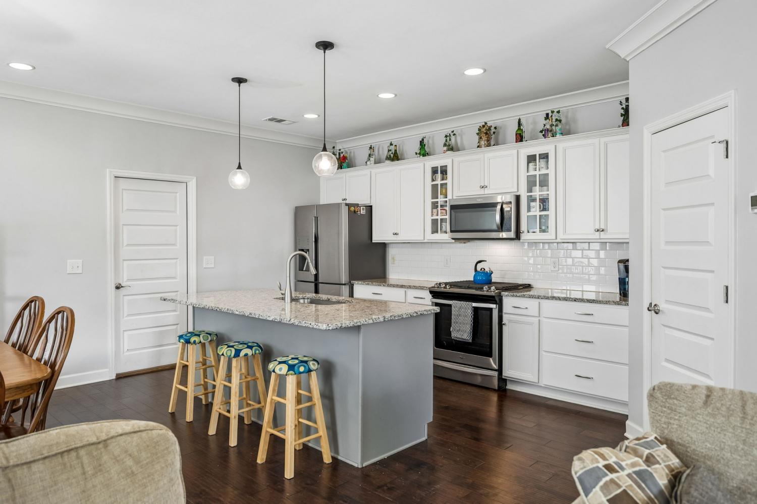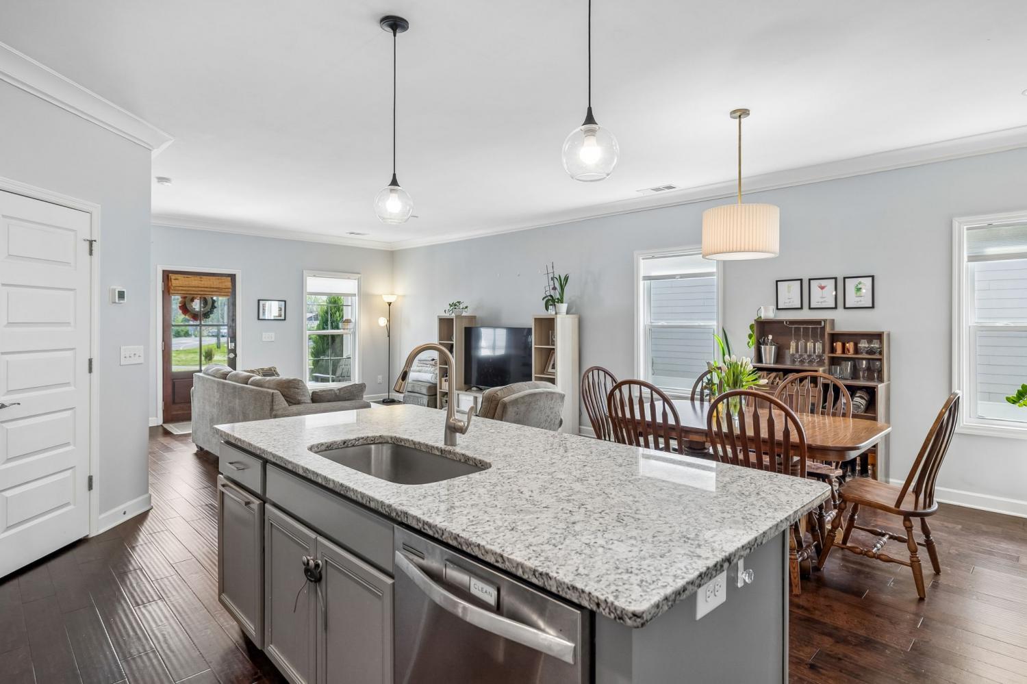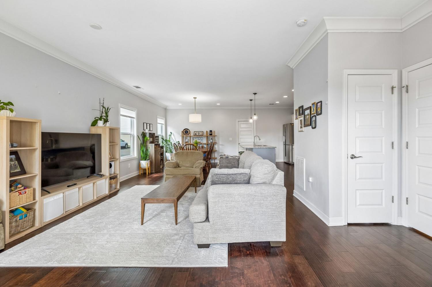Adorable cottage-style home nestled in the charming Bellevue Station community! This beautifully maintained 3-bedroom, 2.5-bath home lives far larger than its square footage, offering a bright and open main level perfect for everyday living and entertaining. The spacious living, dining, and kitchen areas feature hardwood floors and elegant crown molding throughout. The oversized kitchen is a true centerpiece, complete with white cabinetry, granite countertops, a large center island, stainless steel appliances, and a walk-in pantry. Upstairs, you’ll find three generously sized bedrooms, including a relaxing primary suite with a private en-suite bath featuring a granite double vanity and an oversized shower. A second living area upstairs provides flexible space for a media room, playroom, or home office. Additional highlights include a walk-in laundry room and a 2-car garage, offering ample storage throughout. Conveniently located with quick access to I-40 and just 25 minutes from downtown Nashville, this home combines comfort, style, and location—making it a true must-see!