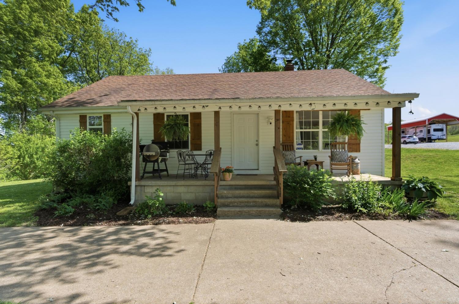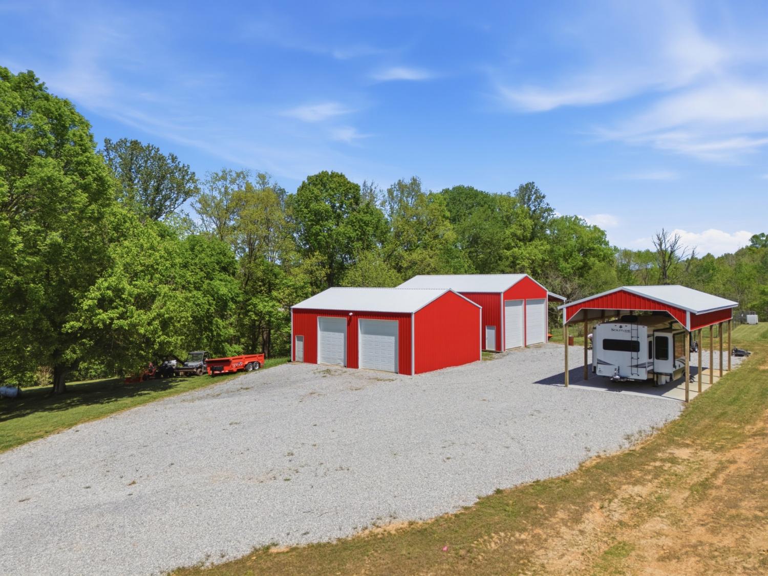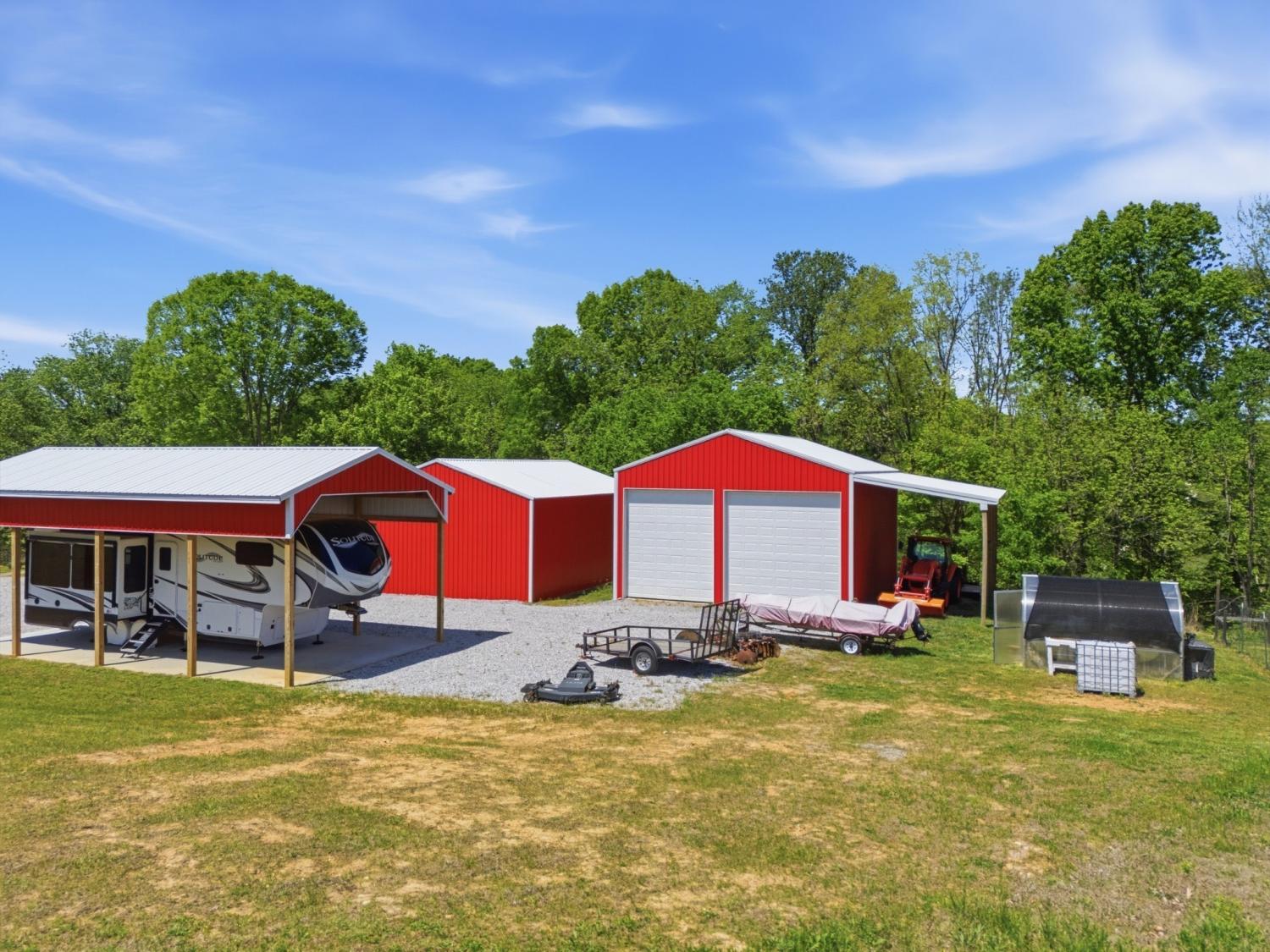 Once in a lifetime opportunity to build your dream life on this 90-acre Tennessee farm. Fully operational, impeccably maintained, ready for you to simply show up! Renovated 1930 farmhouse is a cute and comfy home base-- stay forever and live the simple life or stay there while you build your dream house on the sunny hill behind it! Then keep it for guests, in-laws, or Airbnb income. Two ponds, year-round creek, rolling open pasture, and deep, sun-dappled wooded trails with privacy and room to breathe in every direction. And the best thing: EVERYTHING stays. Even the RV. Air-conditioned cab tractor, diesel side-by-side, dump trailer, all tools + equipment. The high-end residential 5th wheel RV + dually truck to haul it can also stay— perfect for guests or a build phase. Infrastructure includes two concrete-floor barns (plus the old tobacco barn), a greenhouse, + covered pull-through RV pad with full hookups. The gardens alone are worth the visit: two fully fenced organic growing areas, a 13-tree/bush orchard, established grapevines, blackberry trellis, blueberry bushes, beehives, and inoculated mushroom logs (oyster & shiitake). Every bed is compost-enriched and planted seasonally. Natural gas at the road. Propane tank owned outright. Rock fire pit. Rocking chair front porch. You can tell there are too many wonderful things to list them all-- schedule a private showing and leave plenty of time! Check out the video in our links.