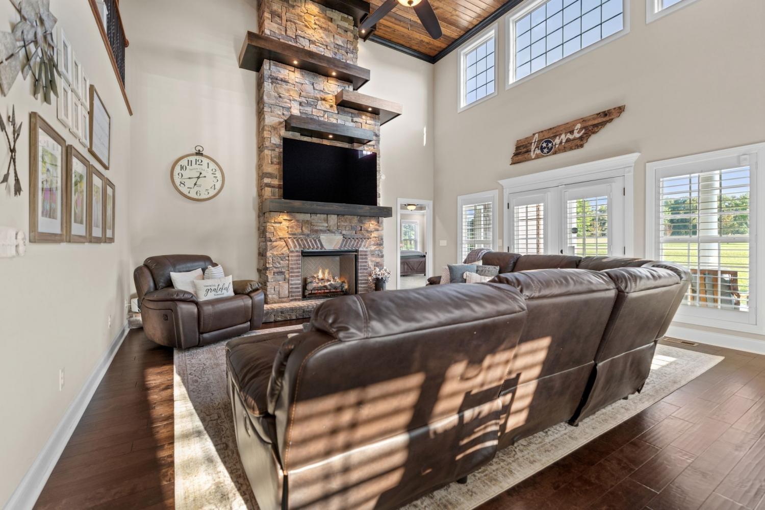 Immaculately maintained, move-in ready. Standout features you won’t find elsewhere: programmable landscape lighting (holiday light-ready), 30-amp RV hookup, storm shelter, encapsulated crawl space, heated/cooled doghouse. One-of-a-kind luxury inside Tullahoma city limits with custom millwork, tongue-and-groove ceilings, and a dramatic two-story stone fireplace. Chef’s kitchen with gas cooking, double ovens, butler’s pantry, and new luxury appliances; New carpet in bedrooms and retiled primary shower. Enjoy covered porches, mature landscaping, and space for pool/workshop/garden; flexible front room + 5th bedroom/bonus. Across from Beechcraft Heritage Museum with trails; minutes to shopping, dining, lakes, and Arnold AFB. Back on market due to buyer's financing.