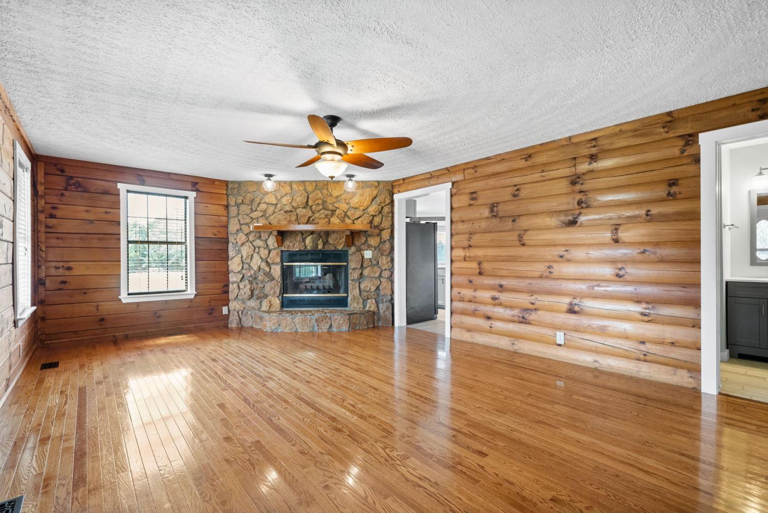 Located in the peaceful Backwoods Subdivision, 110 Jerry Smith Rd. offers a unique blend of rustic charm and functional living on over 2 acres. This log cabin-style home features a warm, inviting interior with a stunning stone fireplace, log walls, and a layout designed for both comfort and versatility. The kitchen includes stainless steel appliances and flows seamlessly into the dining and laundry areas. The main level offers a primary suite with ensuite bath, along with two additional bedrooms and a full guest bath. Upstairs, you’ll find flexible bonus spaces ideal for additional bedrooms, office, or hobby use. Outside, the property is equipped for both lifestyle and storage, featuring a detached garage with an insulated cold room, carport, and ample space for ATVs, equipment, or animals. Assumable mortgage opportunity may be available—contact agent for details. Vacant and easy to show—schedule your private tour today.
