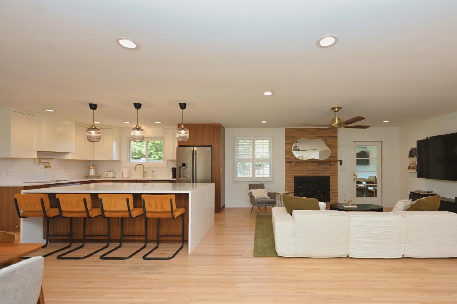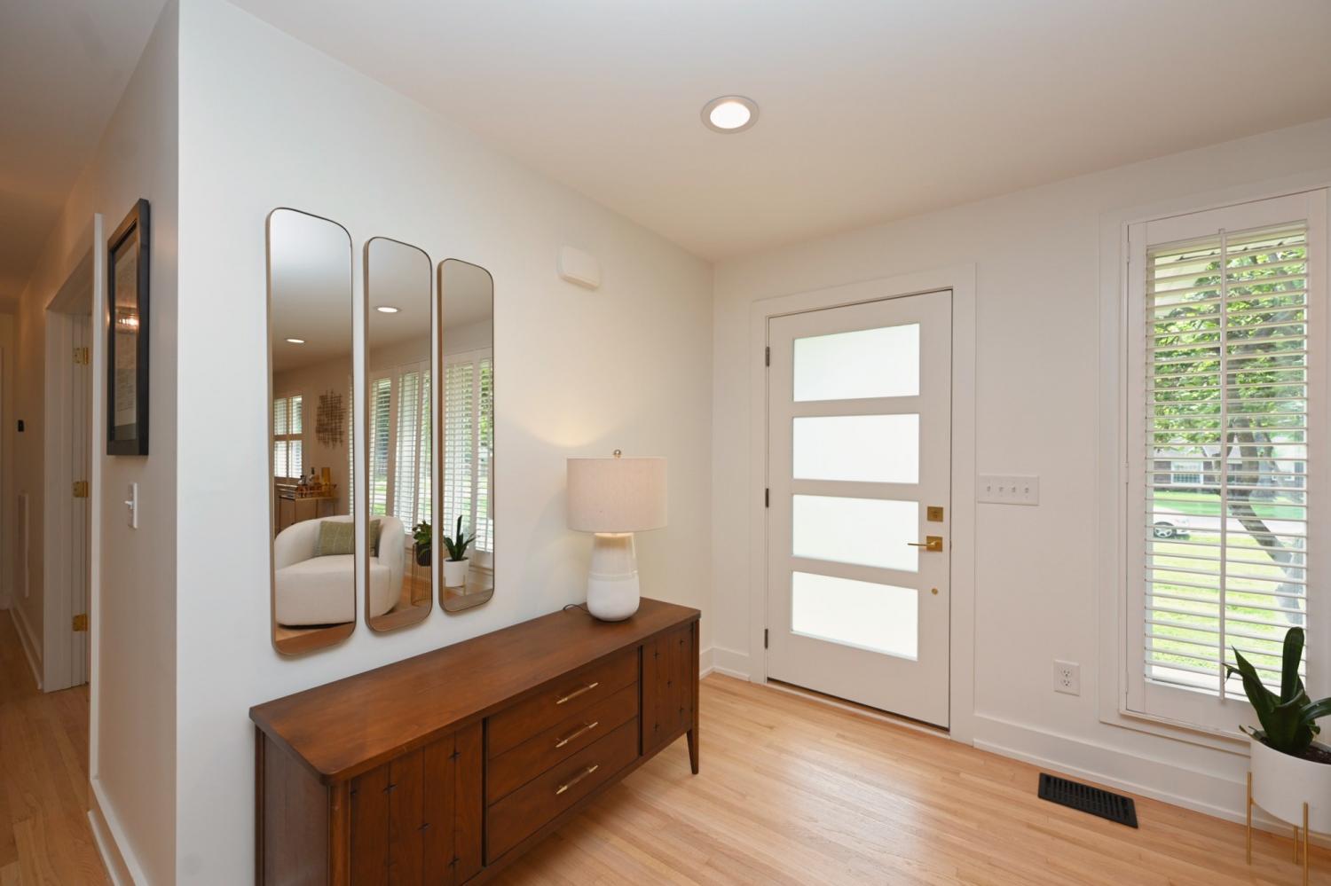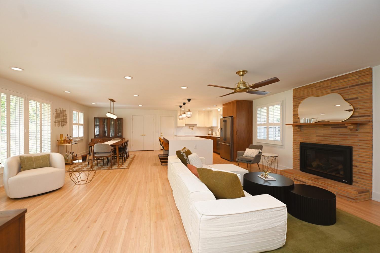 **MID-CENTURY MODERN PERFECTION IN THE HEART OF CRIEVE HALL** Experience a meticulously-crafted $400,000+ high-end expansion & renovation. This 5-bedroom, 3-bathroom residence seamlessly blends 1960s character w/ 2026 luxury, offering 2,501 sqft of curated living space on a rare, flat 0.46-acre lot. Step through the 4-lite door into a light-filled open-concept sanctuary. Stunning white oak flooring flows throughout, leading you to a show-stopping Roman brick fireplace. The chef’s kitchen is a masterpiece featuring custom, European style vertical-grain walnut lowers, sleek white uppers, & a massive waterfall island w/ a built-in microwave drawer & dual-beverage fridge/ wine cooler. Professional-grade Frigidaire appliances, pot filler, sleek hood, & designer-inspired lighting complete this culinary hub. The oversized primary suite is a true escape w/ private French door access to the porch. The spa-inspired bathroom rivals a five-star hotel, boasting a freestanding soaking tub, a frameless glass shower w/ dual rain heads, a heated towel rack, & quintessential MCM Terrazzo tile flooring. The massive walk-in closet features a custom organization system. Guest baths are equally impressive w/ stacked artisan tile and floating vanities. The crown jewel is the 455-sqft covered back porch w/ cedar columns & railings, an outdoor living room overlooking a private, fully fenced oasis. Backing up to a lush tree line with no neighbors behind, the yard includes a secondary concrete patio w/ a fire pit. 5th Bedroom serves perfectly as a home office. Designer laundry room w/ custom oak cabinetry & geometric tile. 2-car garage + an expansive parking pad. Zoned for Crieve Hall Elementary. Mature tree canopy throughout the neighborhood. Every wet area features meticulously selected designer tile & brushed gold fixtures. From the plantation shutters to the gallery-style hallway, no detail was overlooked. **LOVE WHERE YOU LIVE IN ONE OF NASHVILLE'S MOST SOUGHT-AFTER COMMUNITIES!**