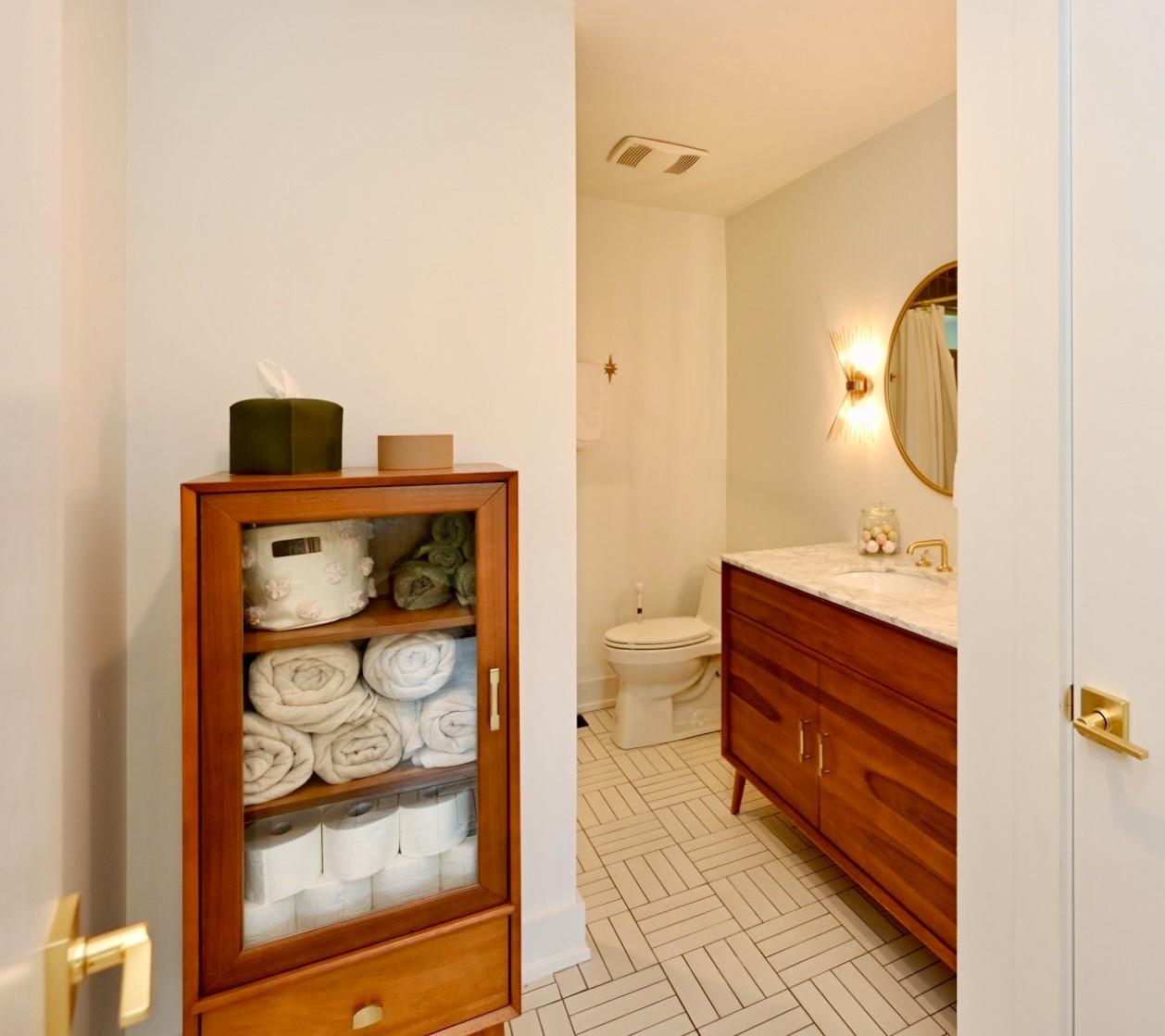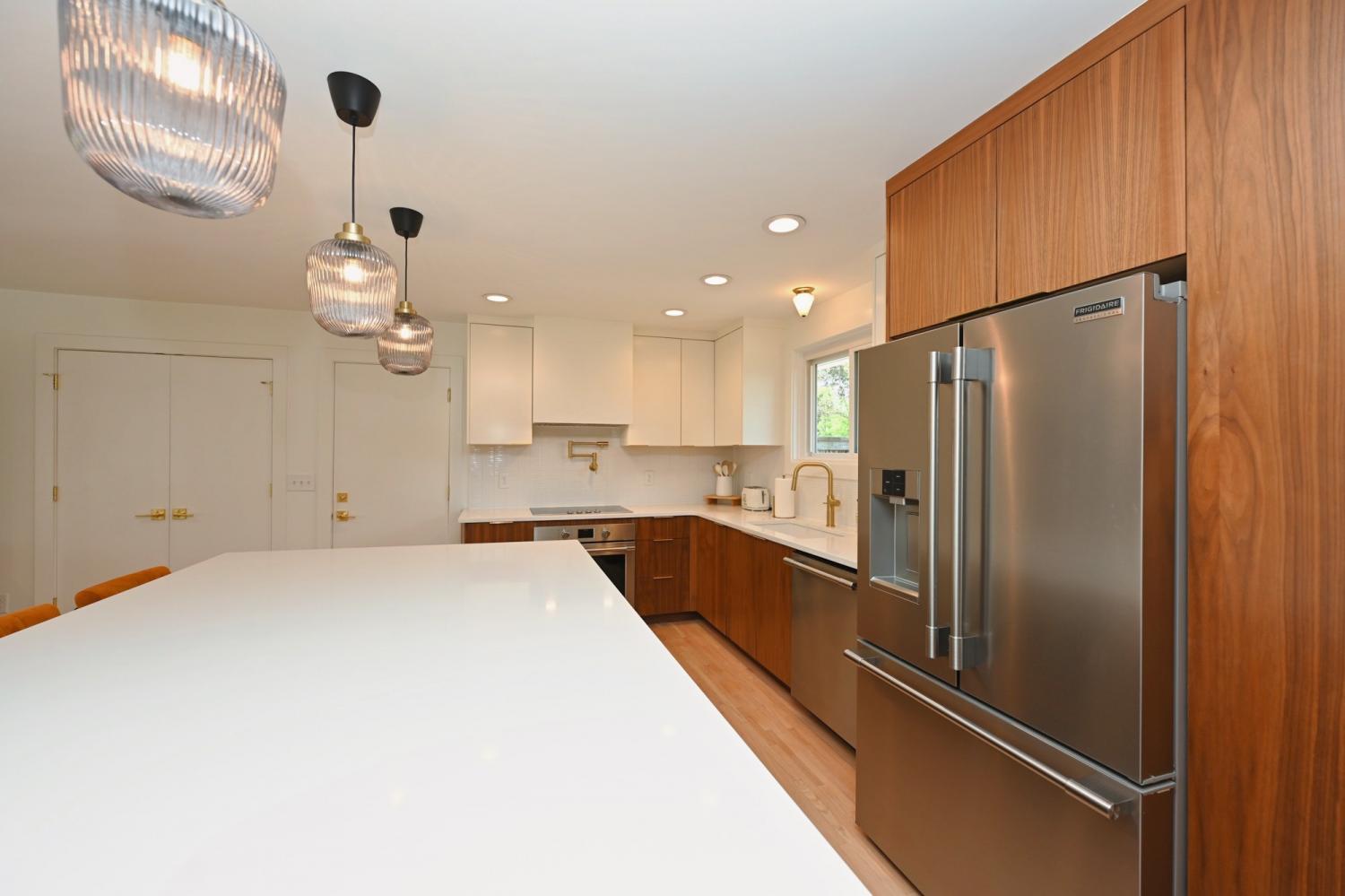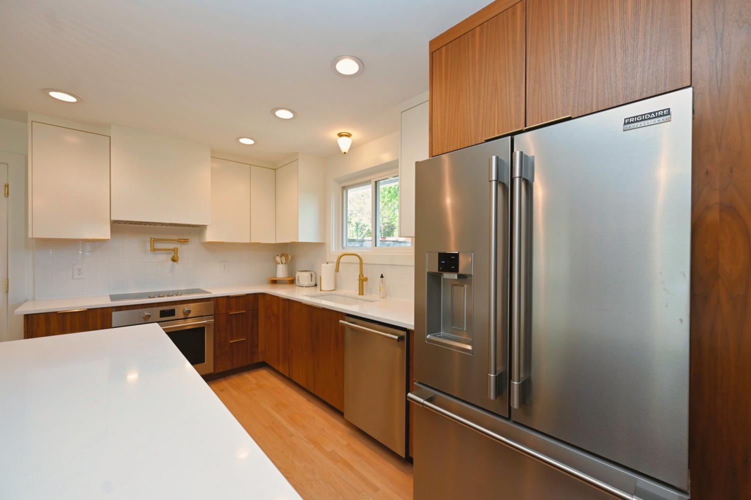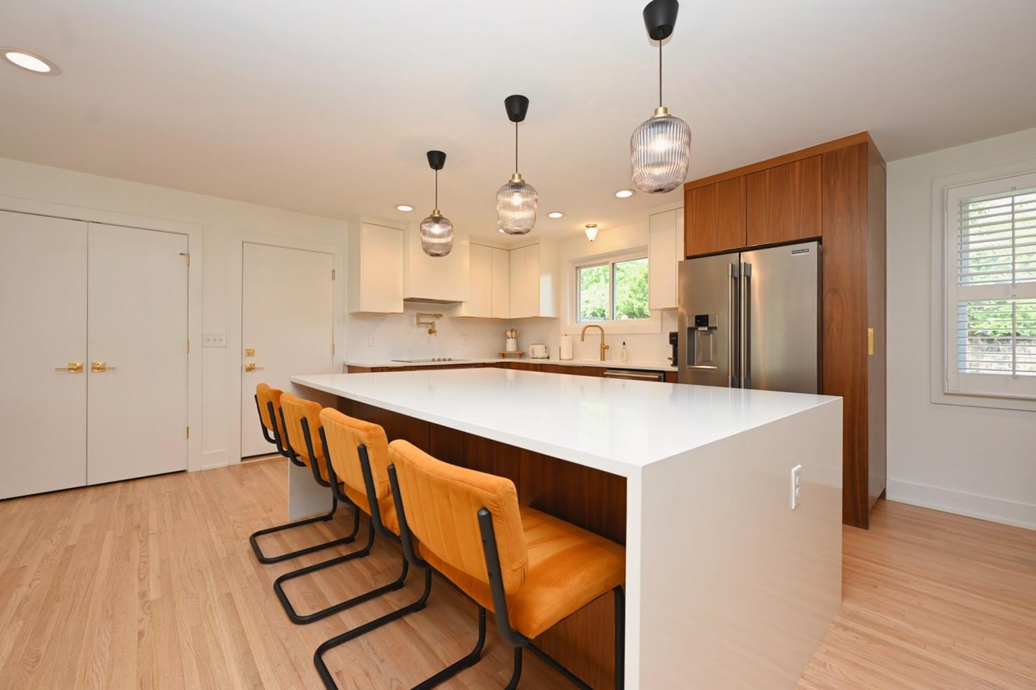 **MID-CENTURY MODERN PERFECTION IN THE HEART OF CRIEVE HALL** Experience a meticulously-crafted $400,000+ high-end expansion & renovation. This 5-bedroom, 3-bathroom residence seamlessly blends 1960s character w/ 2026 luxury, offering 2,501 sqft of curated living space on a rare, flat 0.46-acre lot. Step through the 4-lite door into a light-filled open-concept sanctuary. Stunning white oak flooring flows throughout, leading you to a show-stopping Roman brick fireplace. The chef’s kitchen is a masterpiece featuring custom, European style vertical-grain walnut lowers, sleek white uppers, & a massive waterfall island w/ a built-in microwave drawer & dual-beverage fridge/ wine cooler. Professional-grade Frigidaire appliances, pot filler, sleek hood, & designer-inspired lighting complete this culinary hub. The oversized primary suite is a true escape w/ private French door access to the porch. The spa-inspired bathroom rivals a five-star hotel, boasting a freestanding soaking tub, a frameless glass shower w/ dual rain heads, a heated towel rack, & quintessential MCM Terrazzo tile flooring. The massive walk-in closet features a custom organization system. Guest baths are equally impressive w/ stacked artisan tile and floating vanities. The crown jewel is the 455-sqft covered back porch w/ cedar columns & railings, an outdoor living room overlooking a private, fully fenced oasis. Backing up to a lush tree line with no neighbors behind, the yard includes a secondary concrete patio w/ a fire pit. 5th Bedroom serves perfectly as a home office. Designer laundry room w/ custom oak cabinetry & geometric tile. 2-car garage + an expansive parking pad. Zoned for Crieve Hall Elementary. Mature tree canopy throughout the neighborhood. Every wet area features meticulously selected designer tile & brushed gold fixtures. From the plantation shutters to the gallery-style hallway, no detail was overlooked. **LOVE WHERE YOU LIVE IN ONE OF NASHVILLE'S MOST SOUGHT-AFTER COMMUNITIES!**