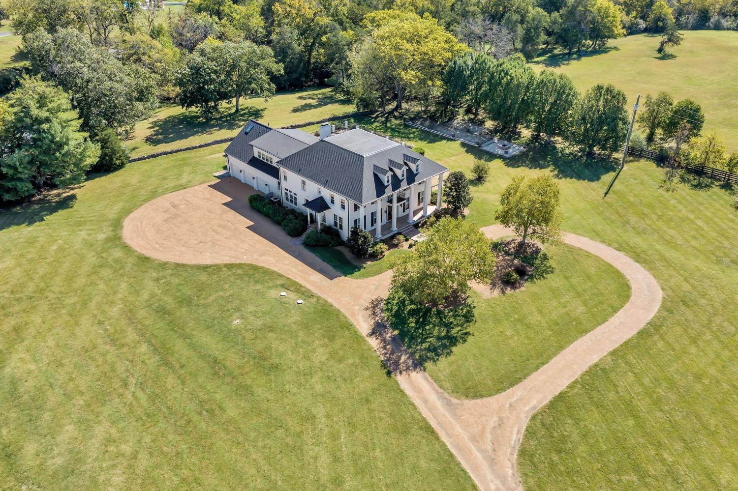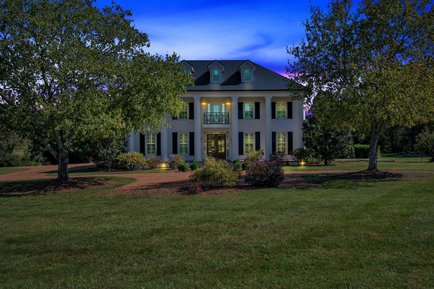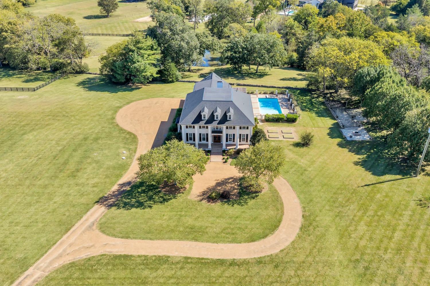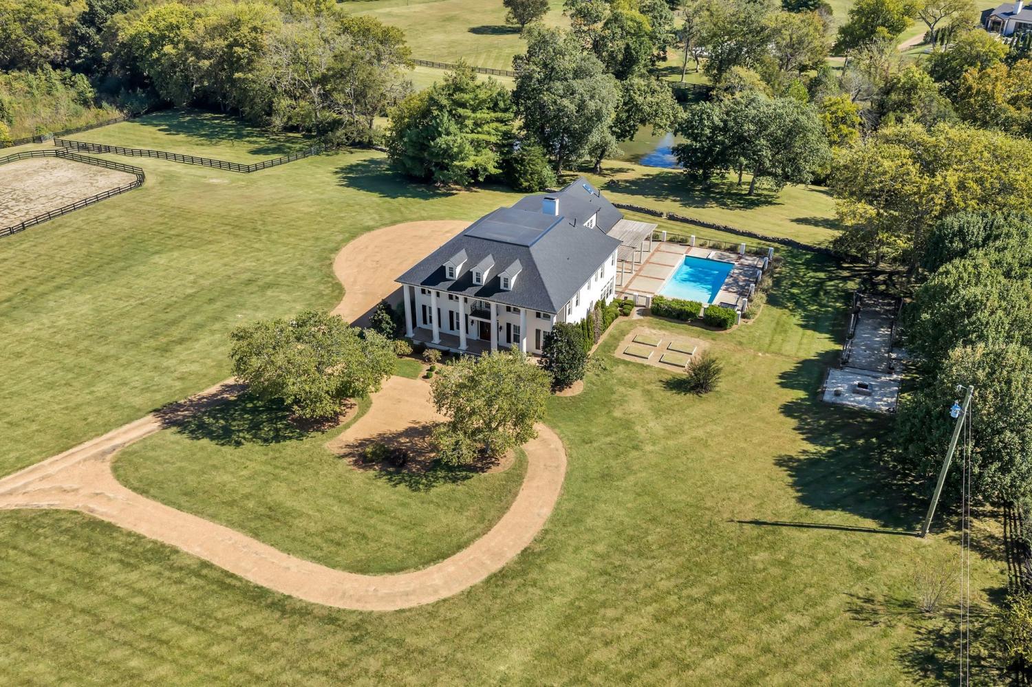 Beautiful drive down Old Natchez Trace leads you to 'Southern Trace' follow the treed line drive back to our 4 bedrooms/6 full and 2 half bath Southern Colonial with 53x8 covered 'Rocking Chair' front porch on 5 landscaping acres * The bright, sunlit home has both a formal dining area, main level music/library & breakfast room teamed with a light- infused sunroom/lounge w/wet bar off of the great room. Entertain by the pool, harvest from your raised bed outdoor gardens, dine al-fresco at the outdoor dining area and enjoy a game at the bocce ball court or relax by the fire pit. Each bedroom ensuite w/heated bath floors * Chef's kitchen features 10' Italian marble island, Thermador double ovens; twin custom refrigerator/freezer; two dishwashers * Both formal and informal dining * Sunroom off Gathering Room * 440 sq ft. Screened in porch opens to 41x 15 covered porch off inground pool * 3rd level is an additional 40X 22 rec room with built- in bunk beds and theater- style layout with room for a pool table. New HVAC, new refrigerators, and new roof replaced in August 2025.