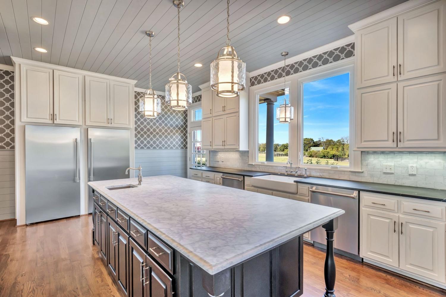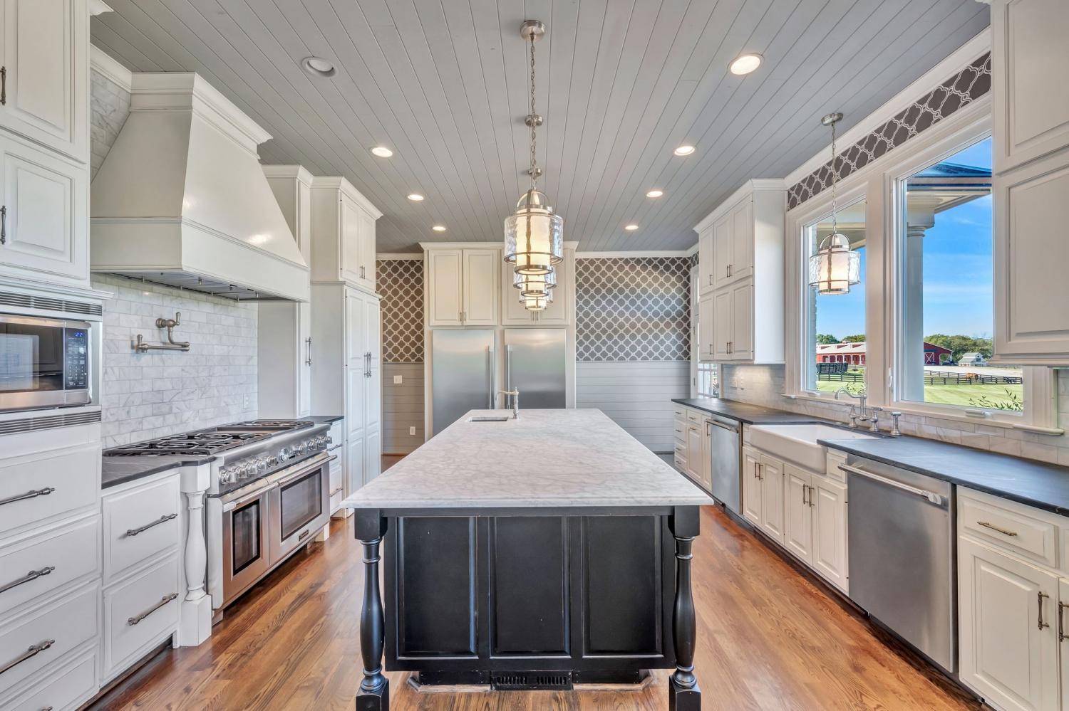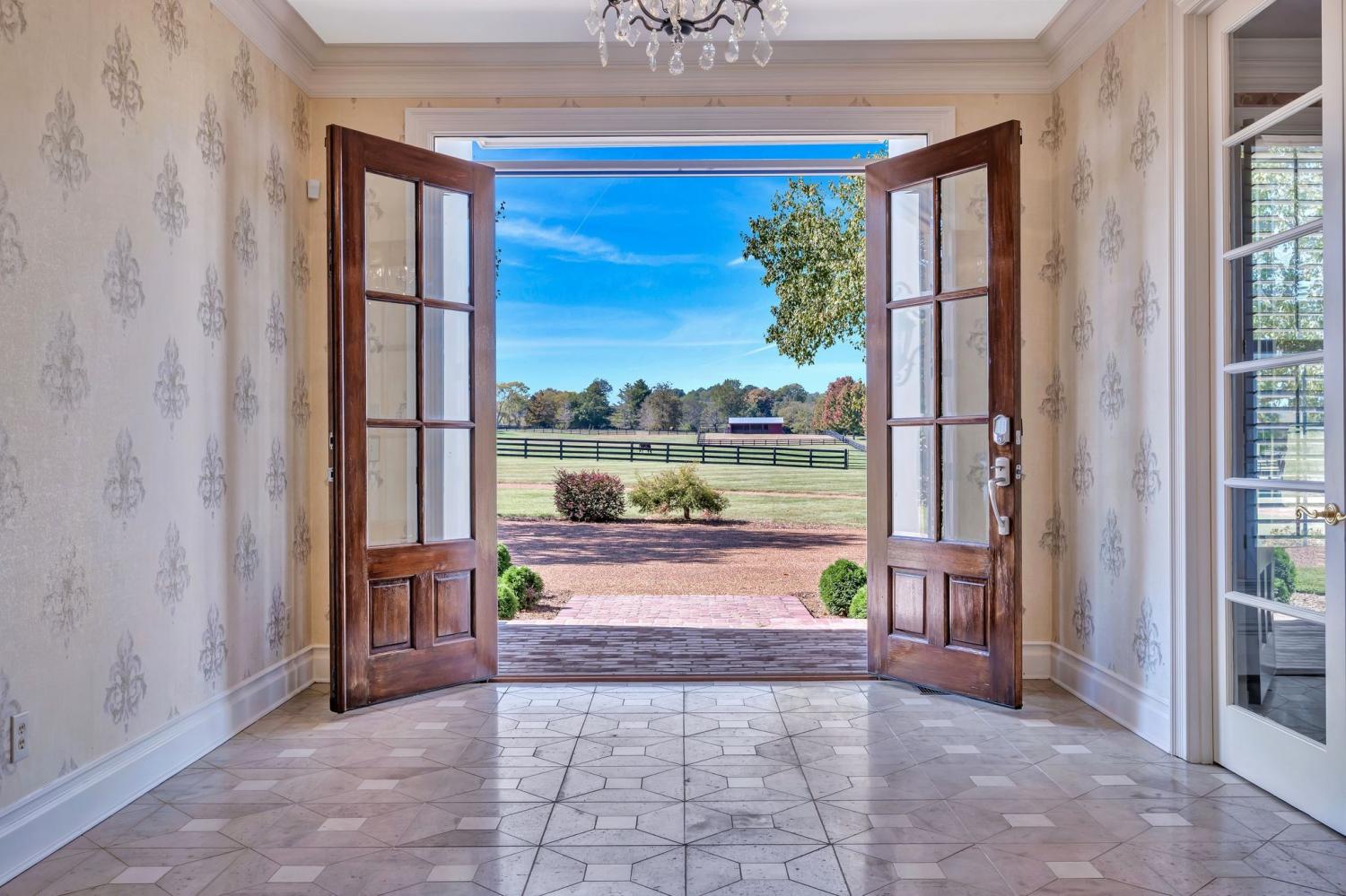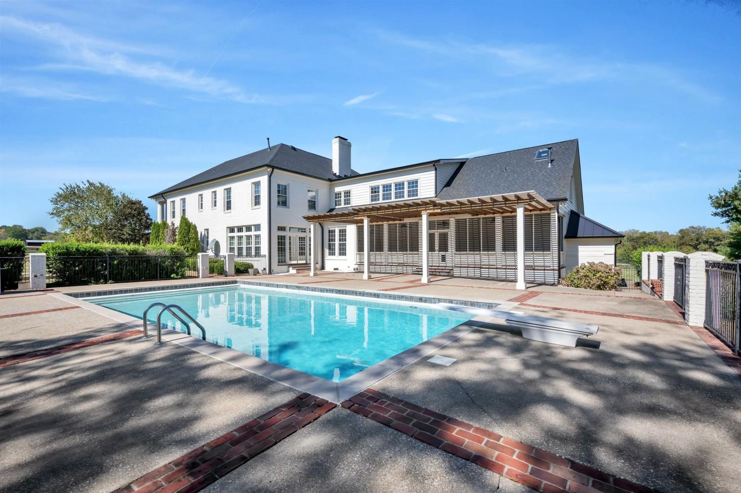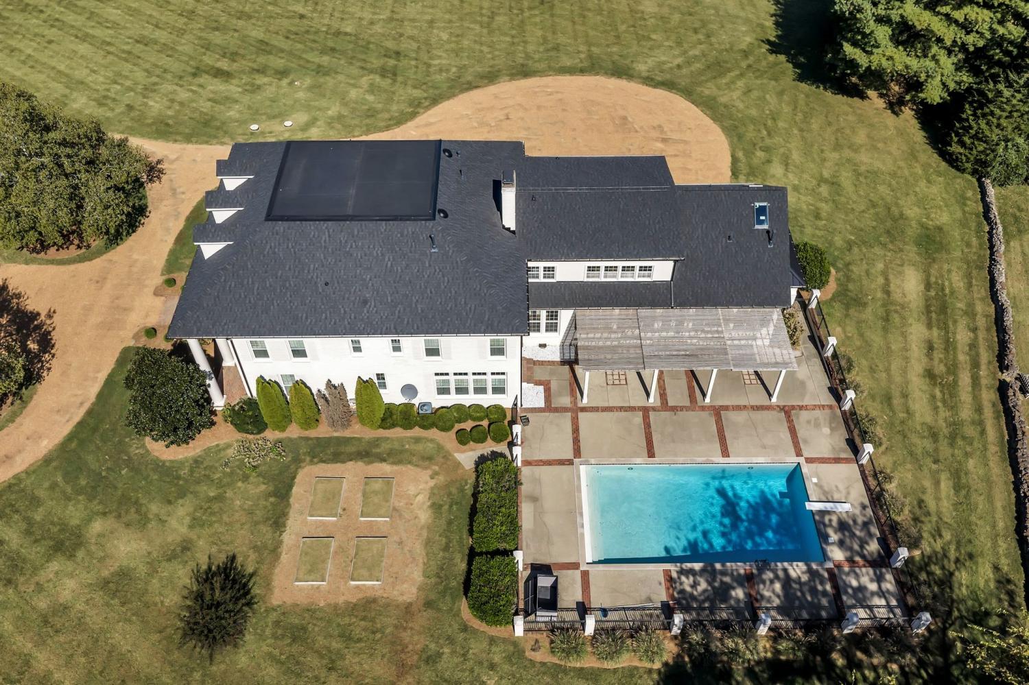 Beautiful drive down Old Natchez Trace leads you to 'Southern Trace' follow the treed line drive back to our 4 bedrooms/6 full and 2 half bath Southern Colonial with 53x8 covered 'Rocking Chair' front porch on 5 landscaping acres * The bright, sunlit home has both a formal dining area, main level music/library & breakfast room teamed with a light- infused sunroom/lounge w/wet bar off of the great room. Entertain by the pool, harvest from your raised bed outdoor gardens, dine al-fresco at the outdoor dining area and enjoy a game at the bocce ball court or relax by the fire pit. Each bedroom ensuite w/heated bath floors * Chef's kitchen features 10' Italian marble island, Thermador double ovens; twin custom refrigerator/freezer; two dishwashers * Both formal and informal dining * Sunroom off Gathering Room * 440 sq ft. Screened in porch opens to 41x 15 covered porch off inground pool * 3rd level is an additional 40X 22 rec room with built- in bunk beds and theater- style layout with room for a pool table. New HVAC, new refrigerators, and new roof replaced in August 2025.