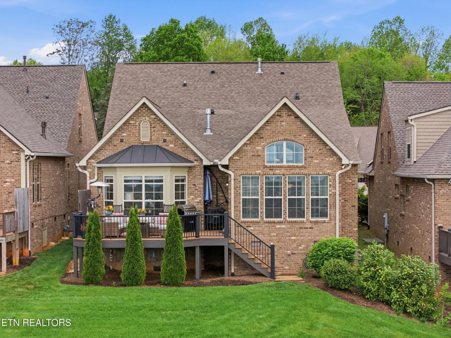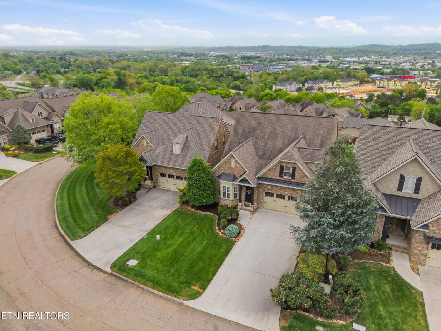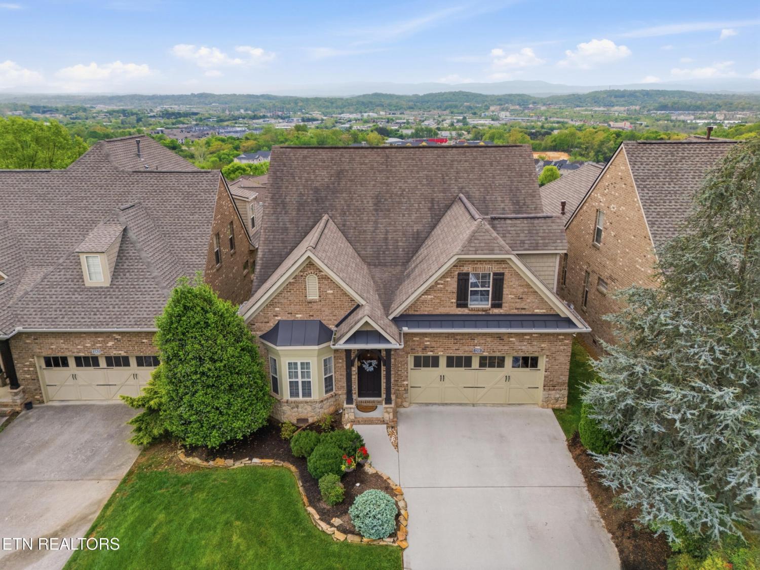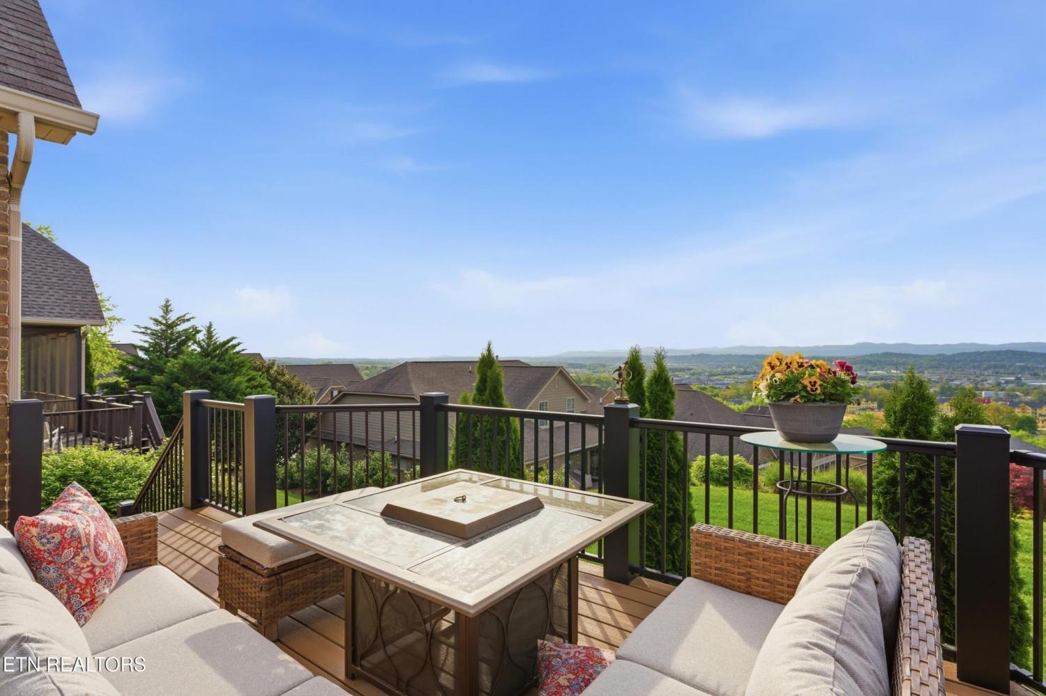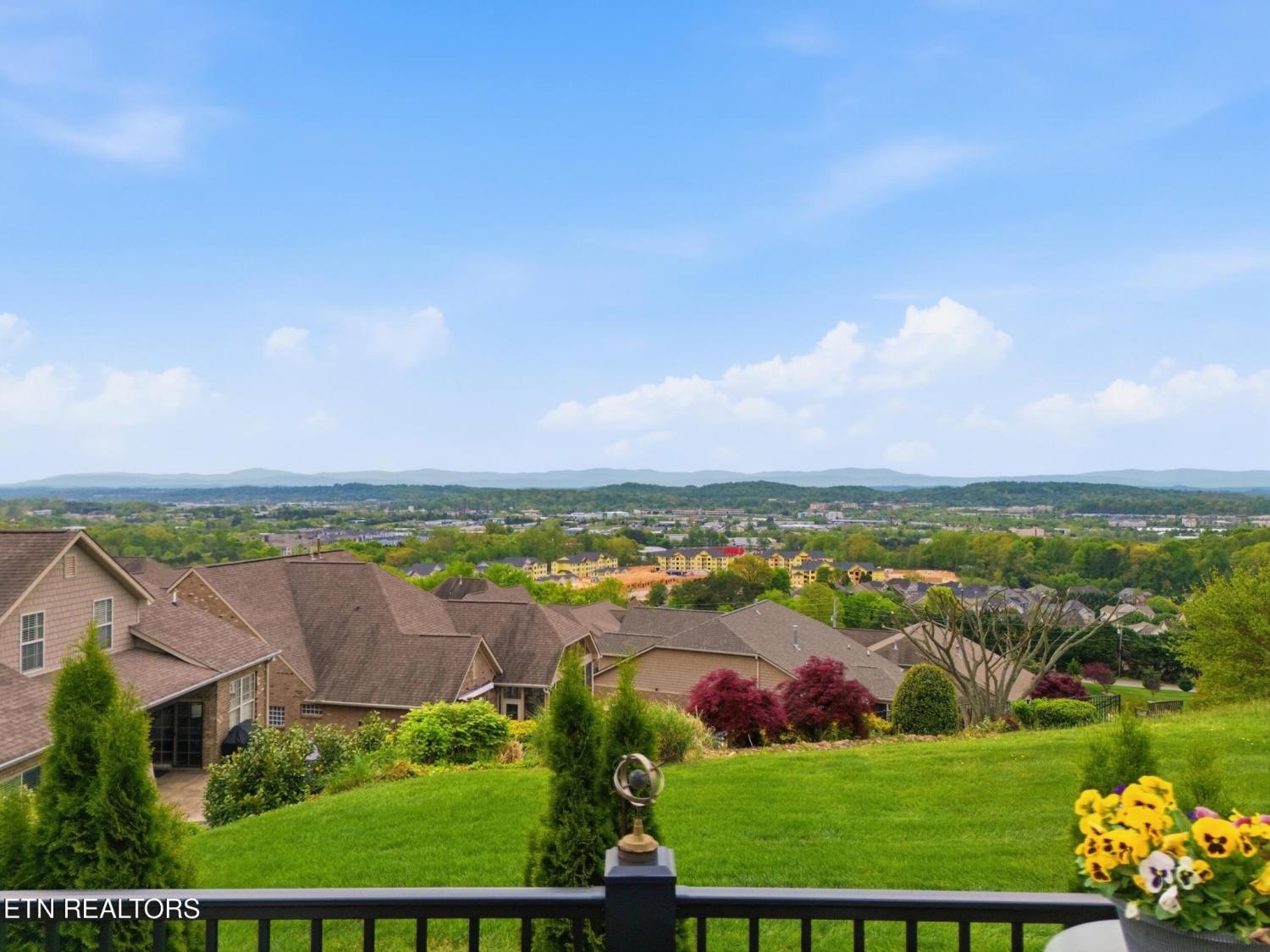 Welcome to an exceptional offering in Bishops Court, where refined design meets uninterrupted panoramic views of the Smoky Mountains. This 3,281 sq ft residence is thoughtfully positioned to capture breathtaking vistas from nearly every angle, creating a daily backdrop of sunrises, sunsets, and rolling mountain landscapes that simply never get old. Inside, the home unfolds with an elegant, open-concept design highlighted by soaring ceilings, rich hardwood flooring, and an abundance of natural light. A formal dining space sets the tone for elevated entertaining, while the chef's kitchen--complete with custom cabinetry, granite surfaces, stainless appliances, and an oversized island--anchors the heart of the home. The living area is both warm and sophisticated, centered around a gas fireplace and seamlessly extending into a stunning sunroom wrapped in windows, where the views take center stage. Just beyond, the premium Trex deck offers a low-maintenance outdoor retreat--perfect for morning coffee above the city or evenings watching the mountains fade into dusk. The main-level owner's suite is a private sanctuary, designed to maximize both comfort and scenery. Wake up to mountain views and unwind in a spa-like ensuite featuring a soaking tub, walk-in shower, and expansive custom closet system. Upstairs, two generously sized bedrooms each feature private ensuite baths, offering ideal accommodations for guests or family. A spacious bonus room provides flexibility for a media room, home office, or additional living space. All of this is complemented by a maintenance-free lifestyle, with HOA services covering exterior upkeep--allowing you to fully enjoy the beauty and ease of East Tennessee living. This is more than a home--it's a vantage point, a retreat, and a rare opportunity to own one of Knoxville's most scenic properties.