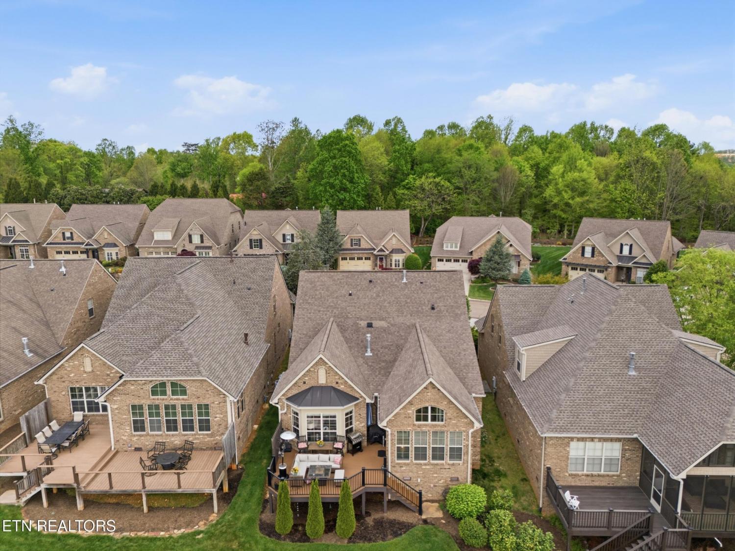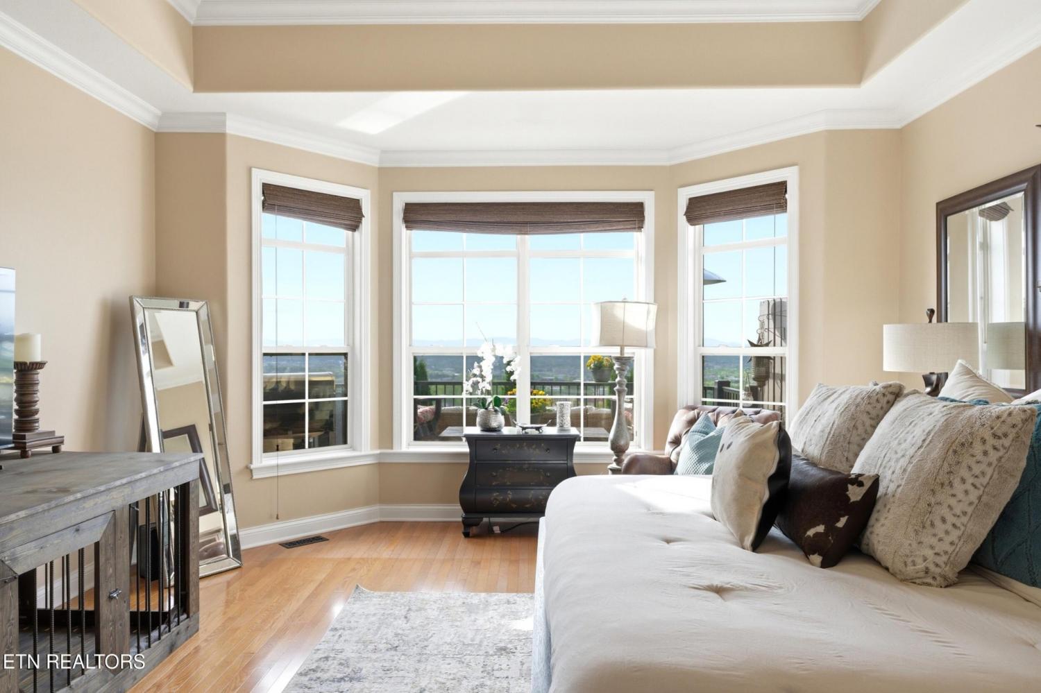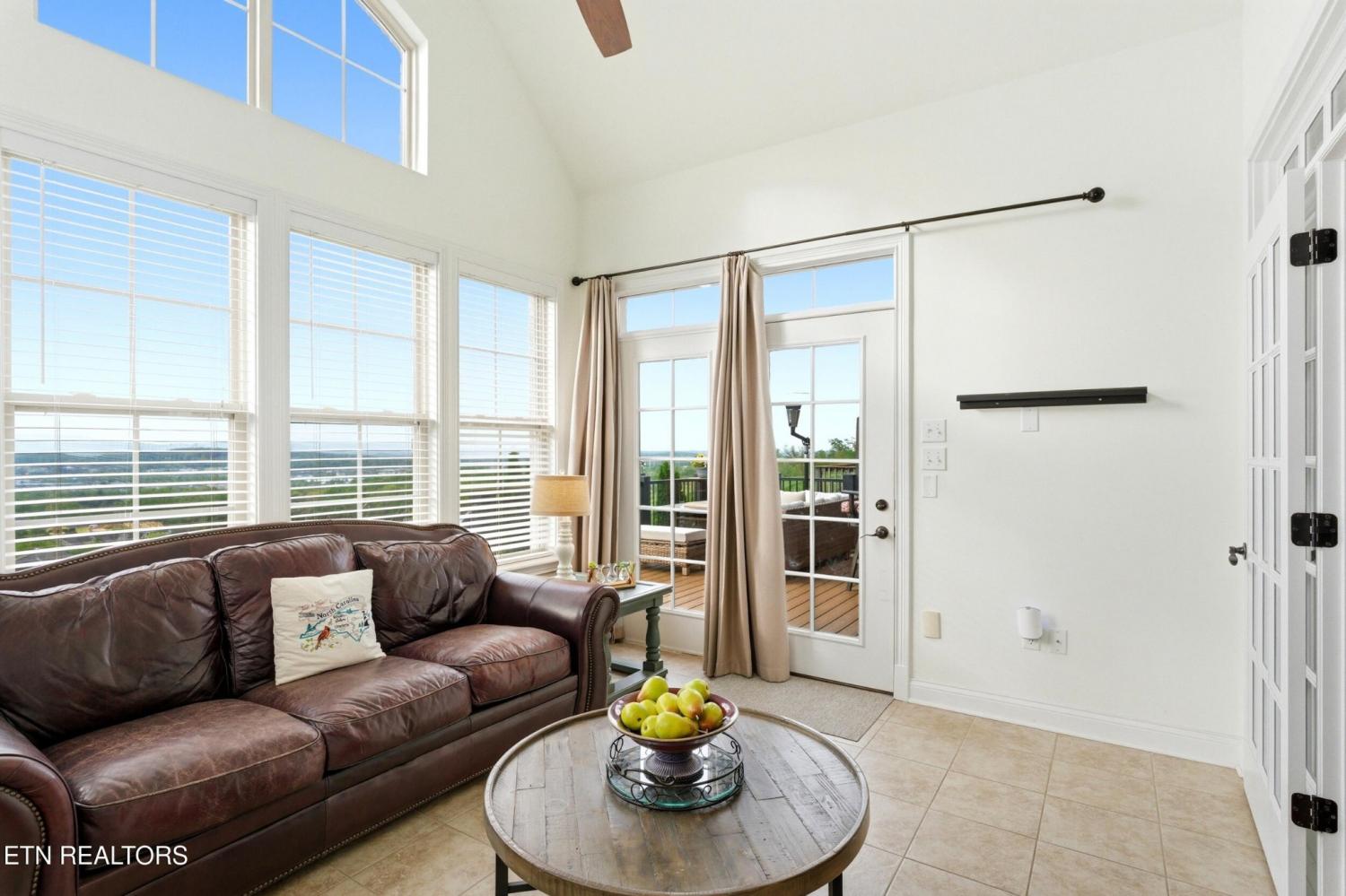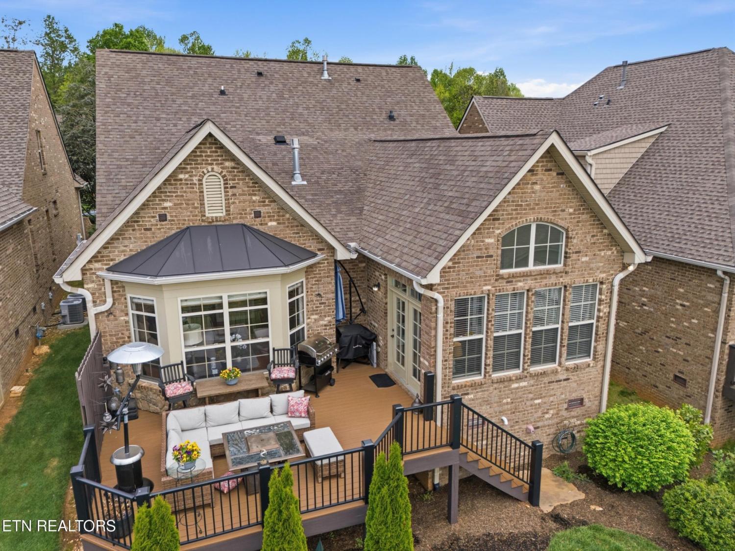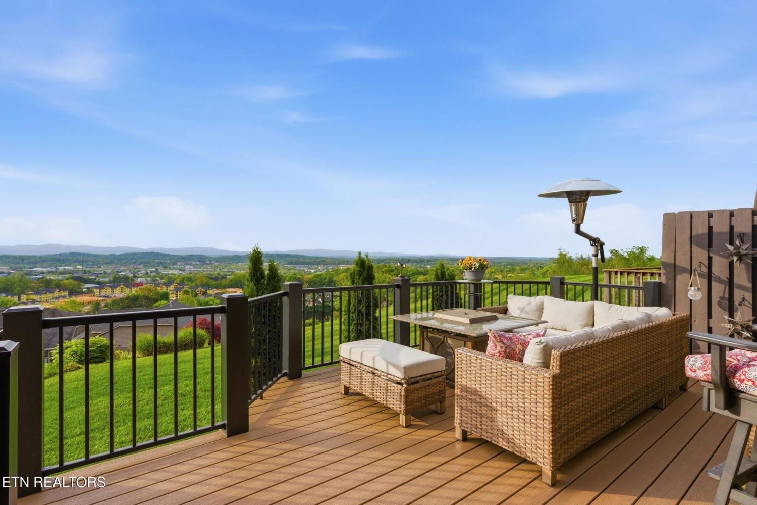 Welcome to an exceptional offering in Bishops Court, where refined design meets uninterrupted panoramic views of the Smoky Mountains. This 3,281 sq ft residence is thoughtfully positioned to capture breathtaking vistas from nearly every angle, creating a daily backdrop of sunrises, sunsets, and rolling mountain landscapes that simply never get old. Inside, the home unfolds with an elegant, open-concept design highlighted by soaring ceilings, rich hardwood flooring, and an abundance of natural light. A formal dining space sets the tone for elevated entertaining, while the chef's kitchen--complete with custom cabinetry, granite surfaces, stainless appliances, and an oversized island--anchors the heart of the home. The living area is both warm and sophisticated, centered around a gas fireplace and seamlessly extending into a stunning sunroom wrapped in windows, where the views take center stage. Just beyond, the premium Trex deck offers a low-maintenance outdoor retreat--perfect for morning coffee above the city or evenings watching the mountains fade into dusk. The main-level owner's suite is a private sanctuary, designed to maximize both comfort and scenery. Wake up to mountain views and unwind in a spa-like ensuite featuring a soaking tub, walk-in shower, and expansive custom closet system. Upstairs, two generously sized bedrooms each feature private ensuite baths, offering ideal accommodations for guests or family. A spacious bonus room provides flexibility for a media room, home office, or additional living space. All of this is complemented by a maintenance-free lifestyle, with HOA services covering exterior upkeep--allowing you to fully enjoy the beauty and ease of East Tennessee living. This is more than a home--it's a vantage point, a retreat, and a rare opportunity to own one of Knoxville's most scenic properties.