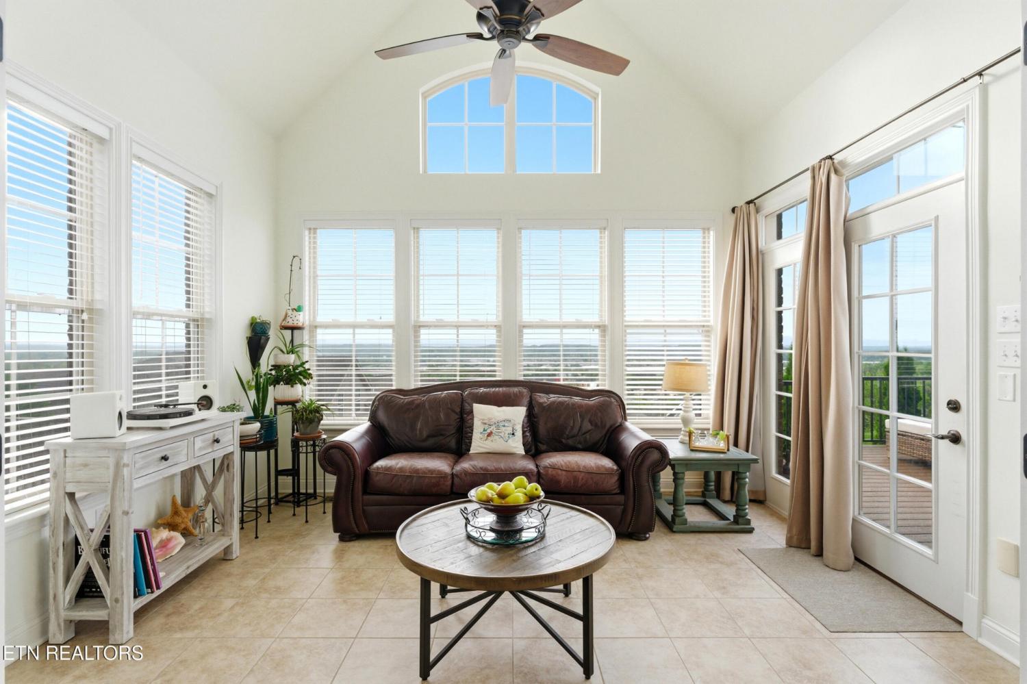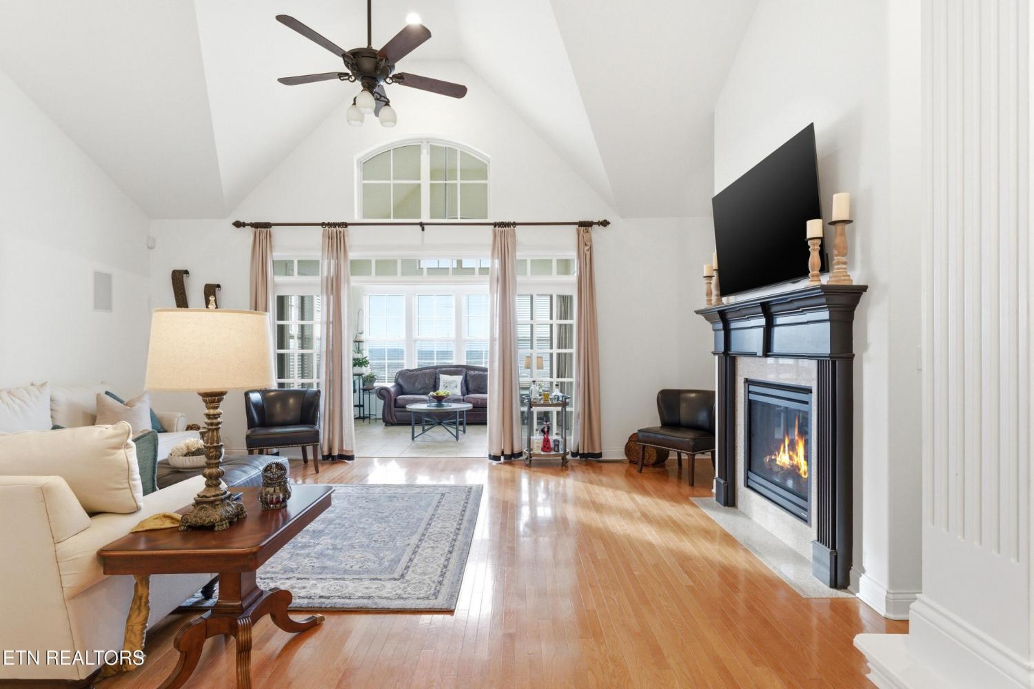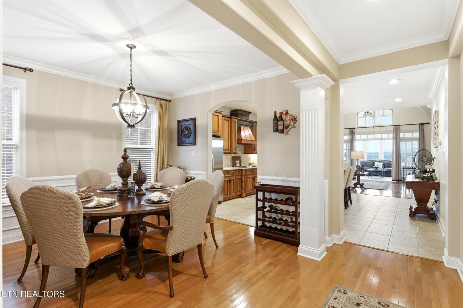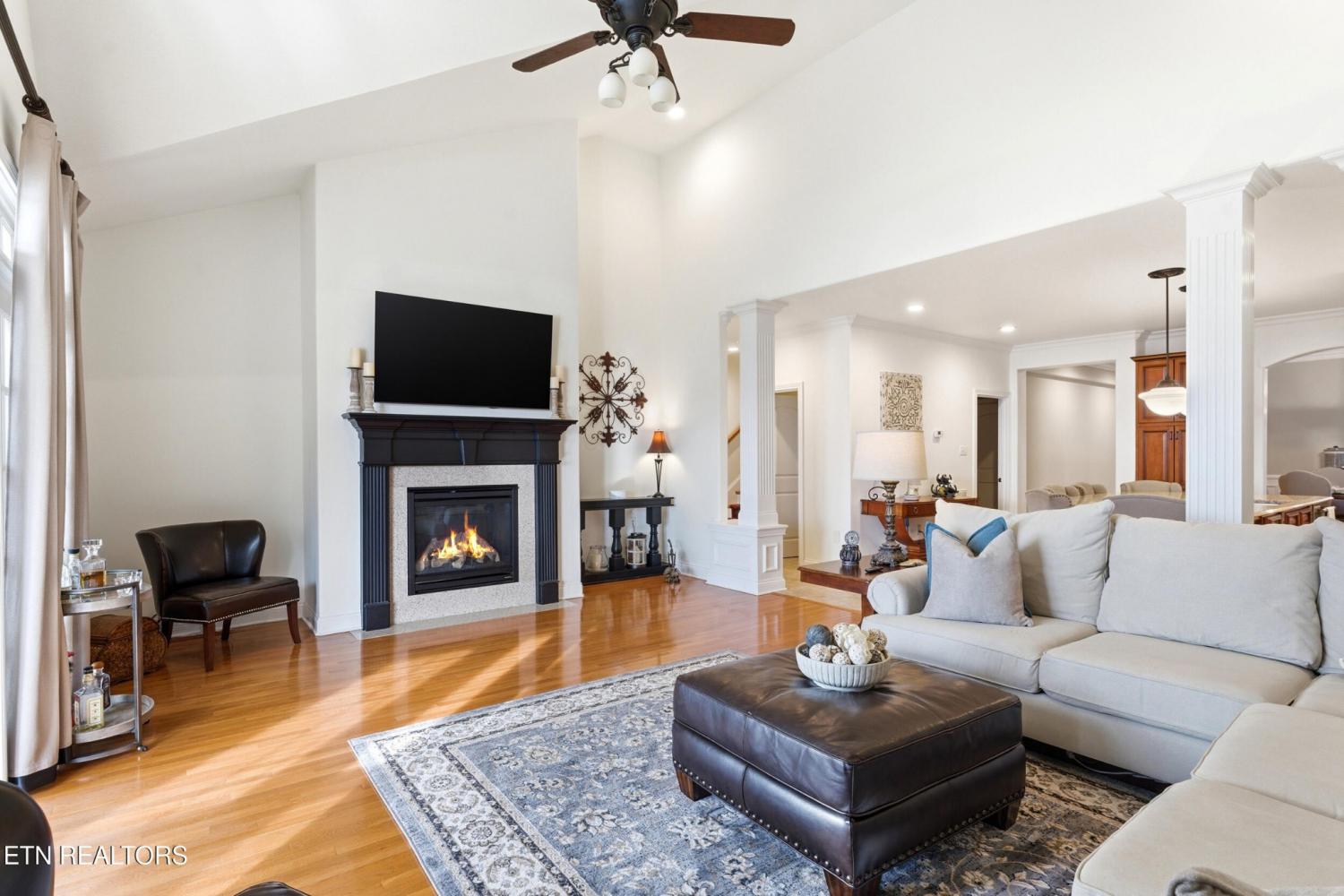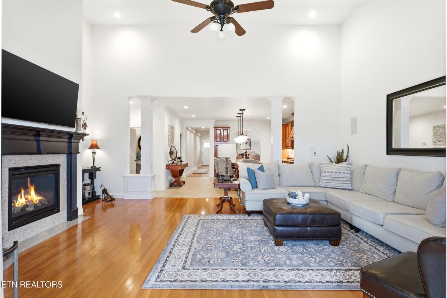 Welcome to an exceptional offering in Bishops Court, where refined design meets uninterrupted panoramic views of the Smoky Mountains. This 3,281 sq ft residence is thoughtfully positioned to capture breathtaking vistas from nearly every angle, creating a daily backdrop of sunrises, sunsets, and rolling mountain landscapes that simply never get old. Inside, the home unfolds with an elegant, open-concept design highlighted by soaring ceilings, rich hardwood flooring, and an abundance of natural light. A formal dining space sets the tone for elevated entertaining, while the chef's kitchen--complete with custom cabinetry, granite surfaces, stainless appliances, and an oversized island--anchors the heart of the home. The living area is both warm and sophisticated, centered around a gas fireplace and seamlessly extending into a stunning sunroom wrapped in windows, where the views take center stage. Just beyond, the premium Trex deck offers a low-maintenance outdoor retreat--perfect for morning coffee above the city or evenings watching the mountains fade into dusk. The main-level owner's suite is a private sanctuary, designed to maximize both comfort and scenery. Wake up to mountain views and unwind in a spa-like ensuite featuring a soaking tub, walk-in shower, and expansive custom closet system. Upstairs, two generously sized bedrooms each feature private ensuite baths, offering ideal accommodations for guests or family. A spacious bonus room provides flexibility for a media room, home office, or additional living space. All of this is complemented by a maintenance-free lifestyle, with HOA services covering exterior upkeep--allowing you to fully enjoy the beauty and ease of East Tennessee living. This is more than a home--it's a vantage point, a retreat, and a rare opportunity to own one of Knoxville's most scenic properties.