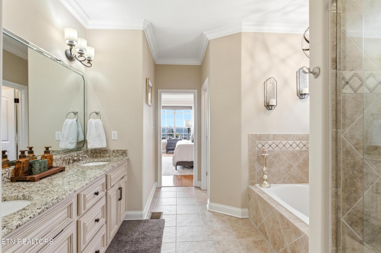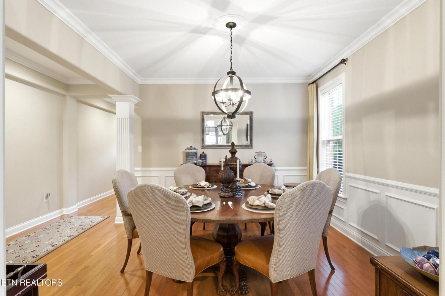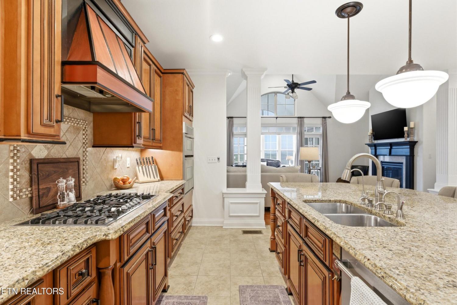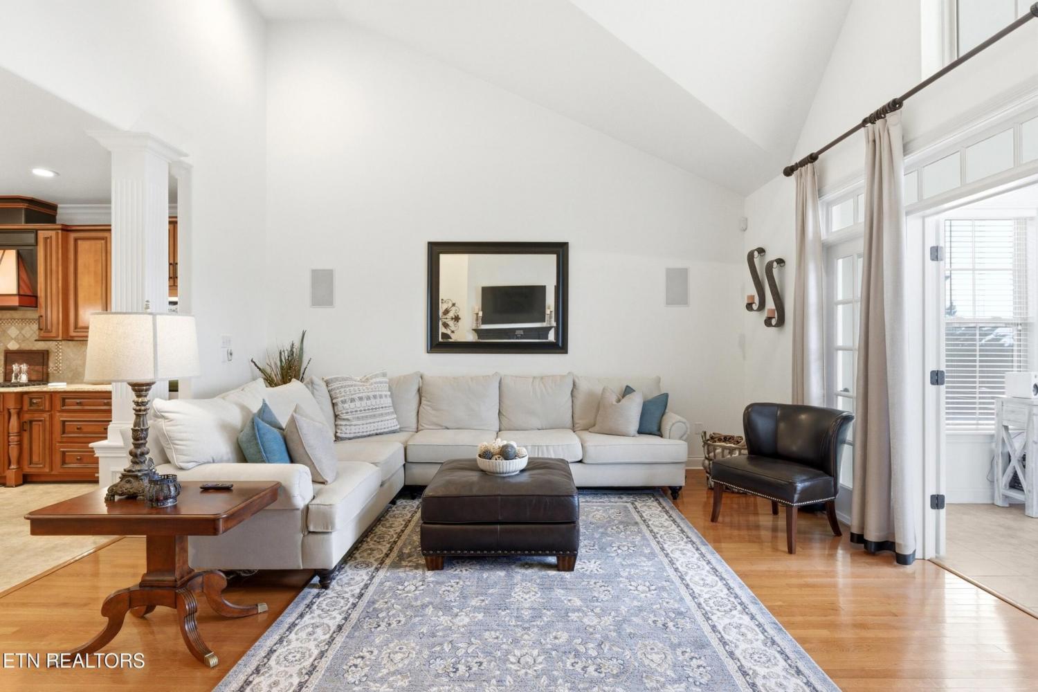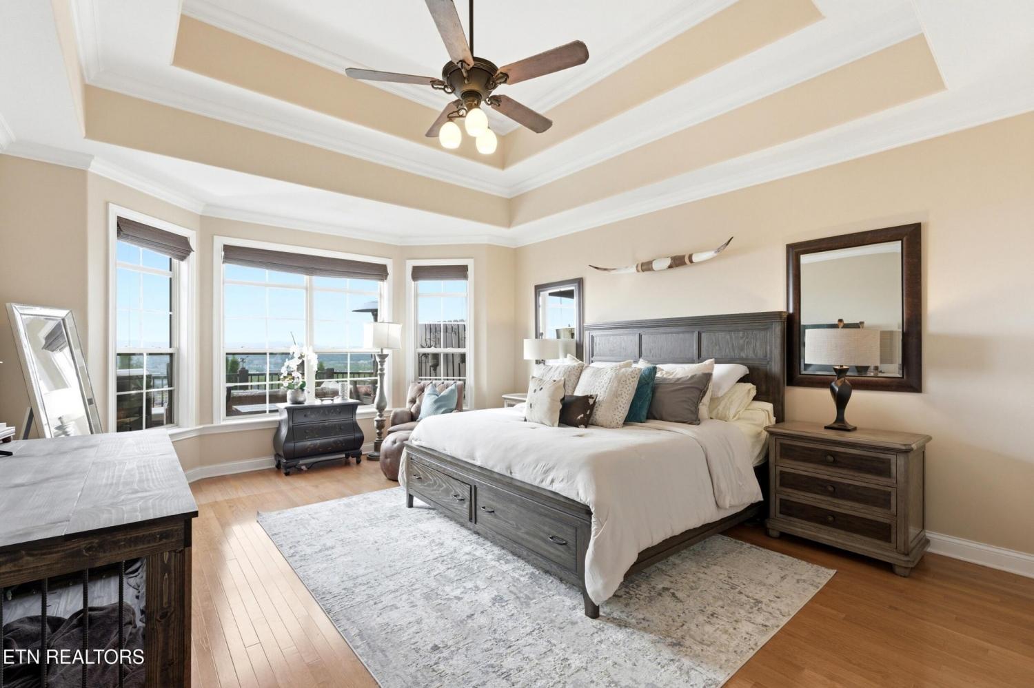 Welcome to an exceptional offering in Bishops Court, where refined design meets uninterrupted panoramic views of the Smoky Mountains. This 3,281 sq ft residence is thoughtfully positioned to capture breathtaking vistas from nearly every angle, creating a daily backdrop of sunrises, sunsets, and rolling mountain landscapes that simply never get old. Inside, the home unfolds with an elegant, open-concept design highlighted by soaring ceilings, rich hardwood flooring, and an abundance of natural light. A formal dining space sets the tone for elevated entertaining, while the chef's kitchen--complete with custom cabinetry, granite surfaces, stainless appliances, and an oversized island--anchors the heart of the home. The living area is both warm and sophisticated, centered around a gas fireplace and seamlessly extending into a stunning sunroom wrapped in windows, where the views take center stage. Just beyond, the premium Trex deck offers a low-maintenance outdoor retreat--perfect for morning coffee above the city or evenings watching the mountains fade into dusk. The main-level owner's suite is a private sanctuary, designed to maximize both comfort and scenery. Wake up to mountain views and unwind in a spa-like ensuite featuring a soaking tub, walk-in shower, and expansive custom closet system. Upstairs, two generously sized bedrooms each feature private ensuite baths, offering ideal accommodations for guests or family. A spacious bonus room provides flexibility for a media room, home office, or additional living space. All of this is complemented by a maintenance-free lifestyle, with HOA services covering exterior upkeep--allowing you to fully enjoy the beauty and ease of East Tennessee living. This is more than a home--it's a vantage point, a retreat, and a rare opportunity to own one of Knoxville's most scenic properties.