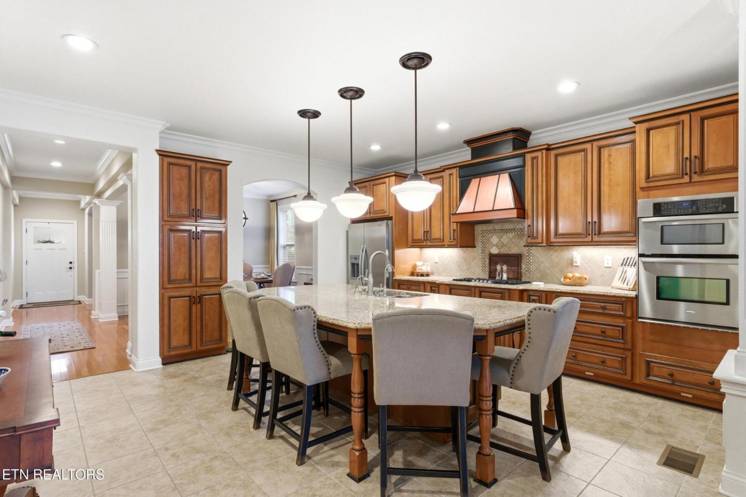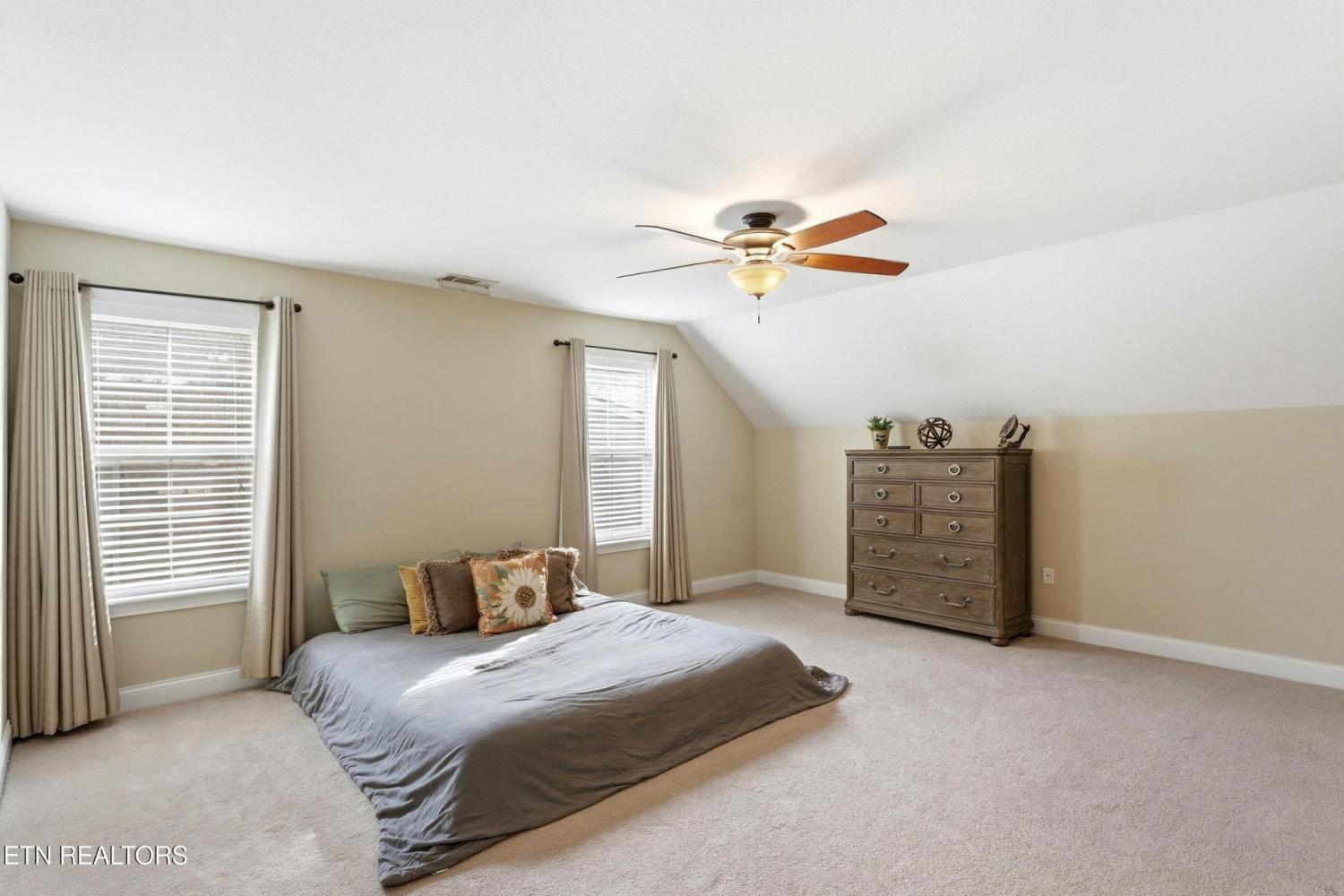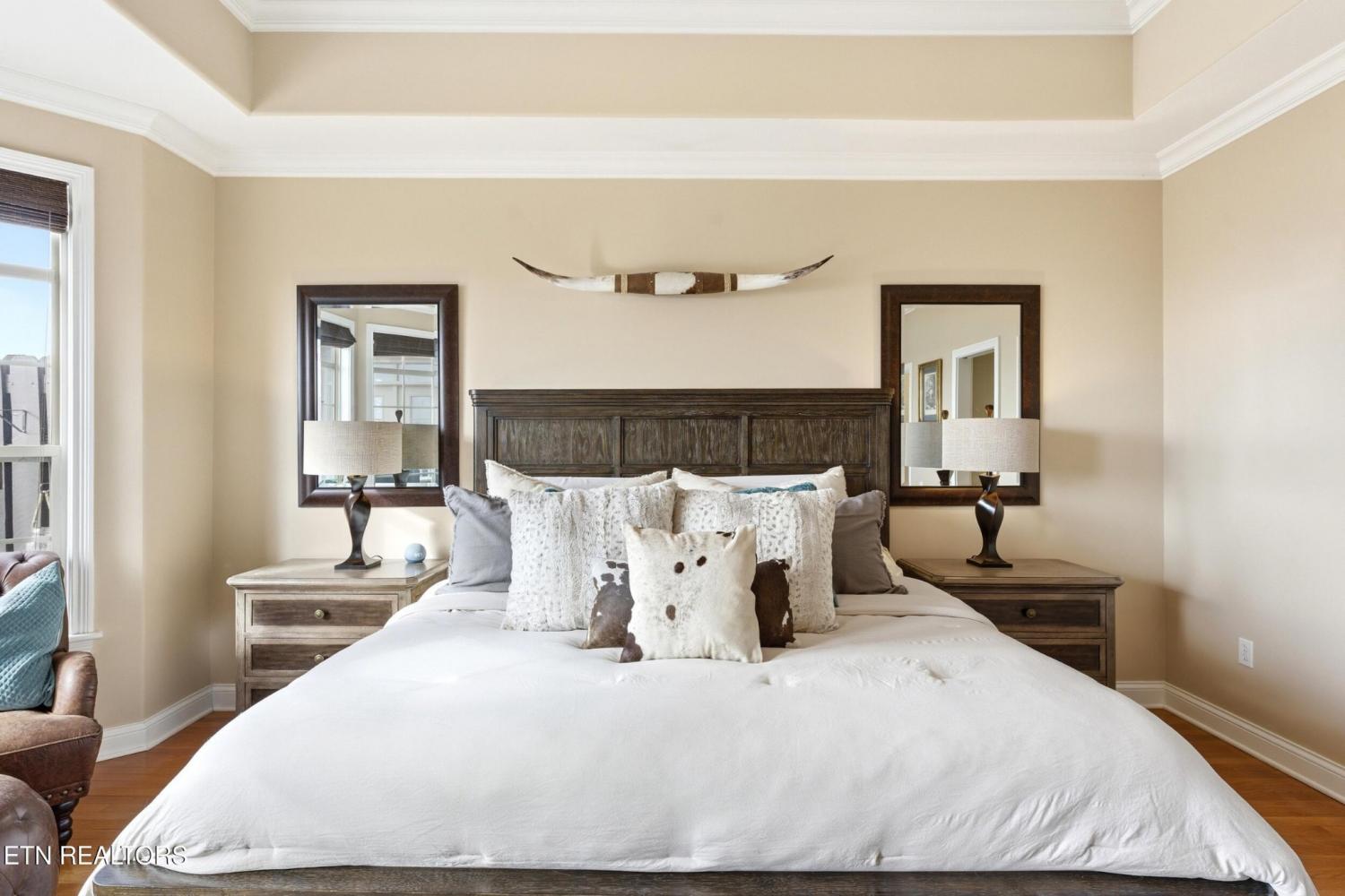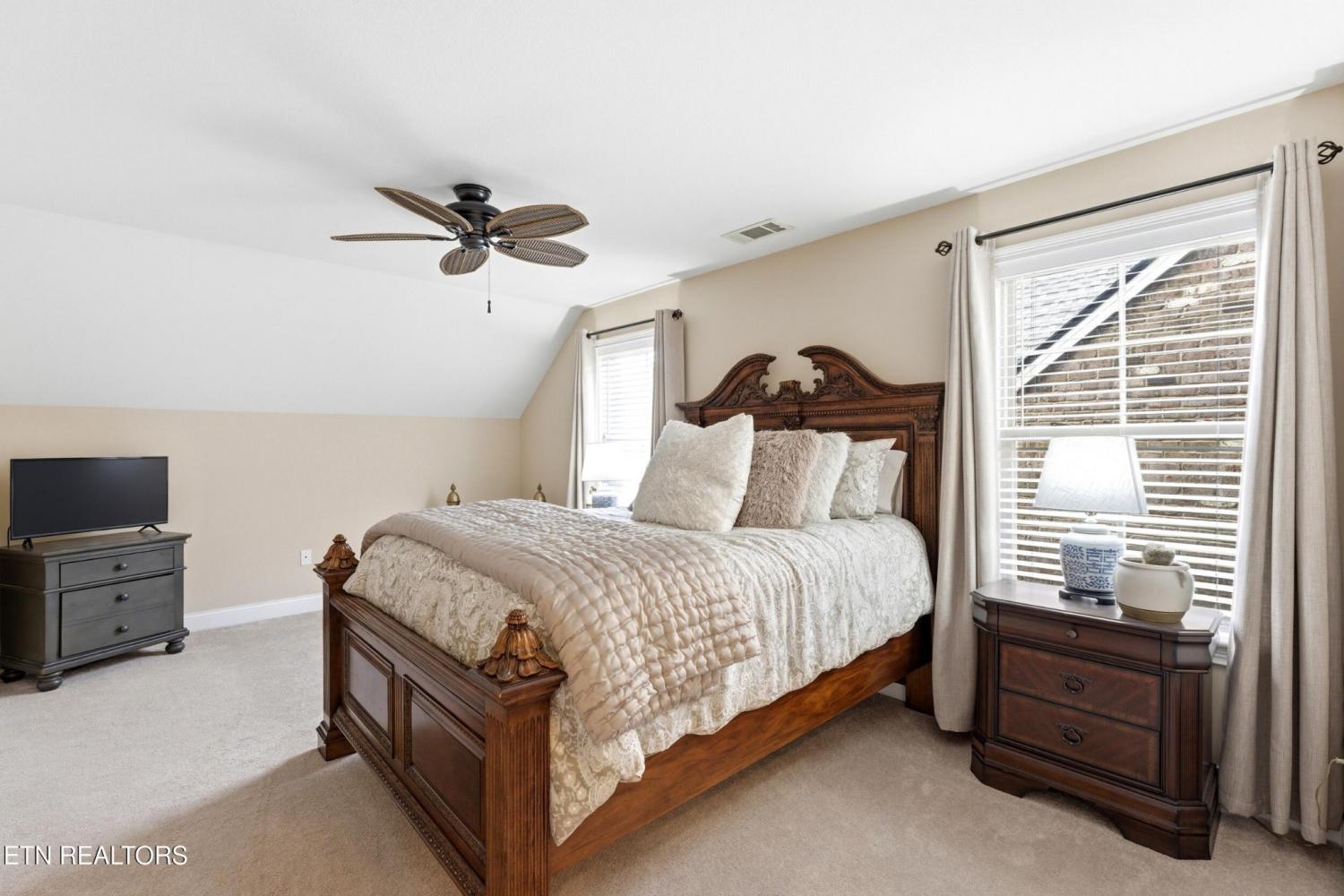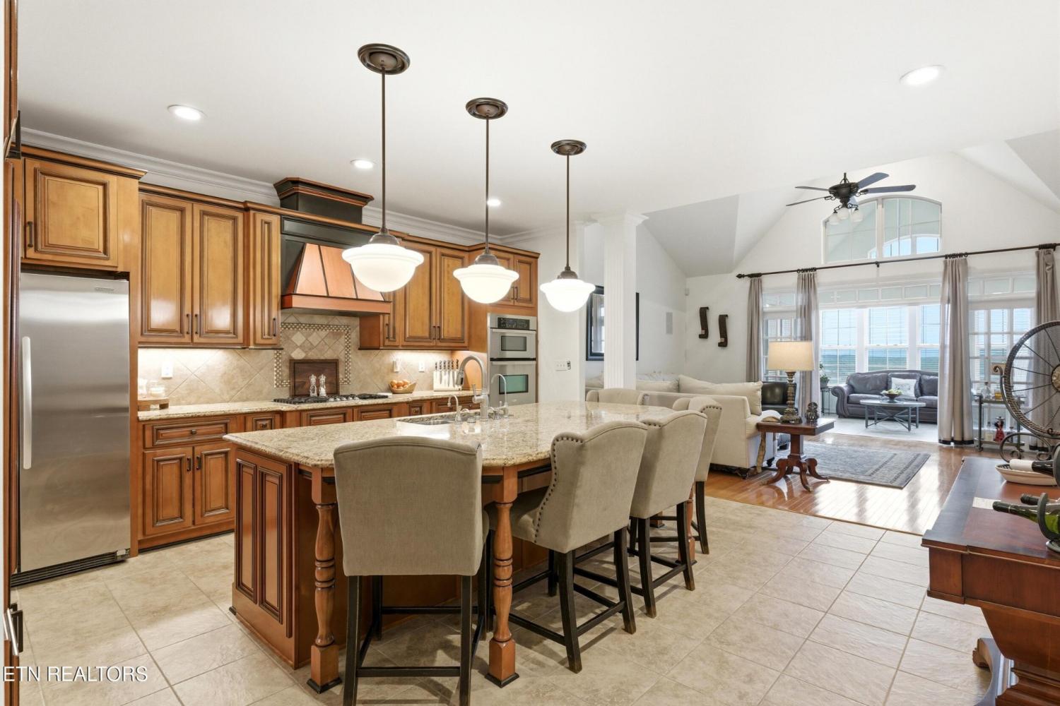 Welcome to an exceptional offering in Bishops Court, where refined design meets uninterrupted panoramic views of the Smoky Mountains. This 3,281 sq ft residence is thoughtfully positioned to capture breathtaking vistas from nearly every angle, creating a daily backdrop of sunrises, sunsets, and rolling mountain landscapes that simply never get old. Inside, the home unfolds with an elegant, open-concept design highlighted by soaring ceilings, rich hardwood flooring, and an abundance of natural light. A formal dining space sets the tone for elevated entertaining, while the chef's kitchen--complete with custom cabinetry, granite surfaces, stainless appliances, and an oversized island--anchors the heart of the home. The living area is both warm and sophisticated, centered around a gas fireplace and seamlessly extending into a stunning sunroom wrapped in windows, where the views take center stage. Just beyond, the premium Trex deck offers a low-maintenance outdoor retreat--perfect for morning coffee above the city or evenings watching the mountains fade into dusk. The main-level owner's suite is a private sanctuary, designed to maximize both comfort and scenery. Wake up to mountain views and unwind in a spa-like ensuite featuring a soaking tub, walk-in shower, and expansive custom closet system. Upstairs, two generously sized bedrooms each feature private ensuite baths, offering ideal accommodations for guests or family. A spacious bonus room provides flexibility for a media room, home office, or additional living space. All of this is complemented by a maintenance-free lifestyle, with HOA services covering exterior upkeep--allowing you to fully enjoy the beauty and ease of East Tennessee living. This is more than a home--it's a vantage point, a retreat, and a rare opportunity to own one of Knoxville's most scenic properties.