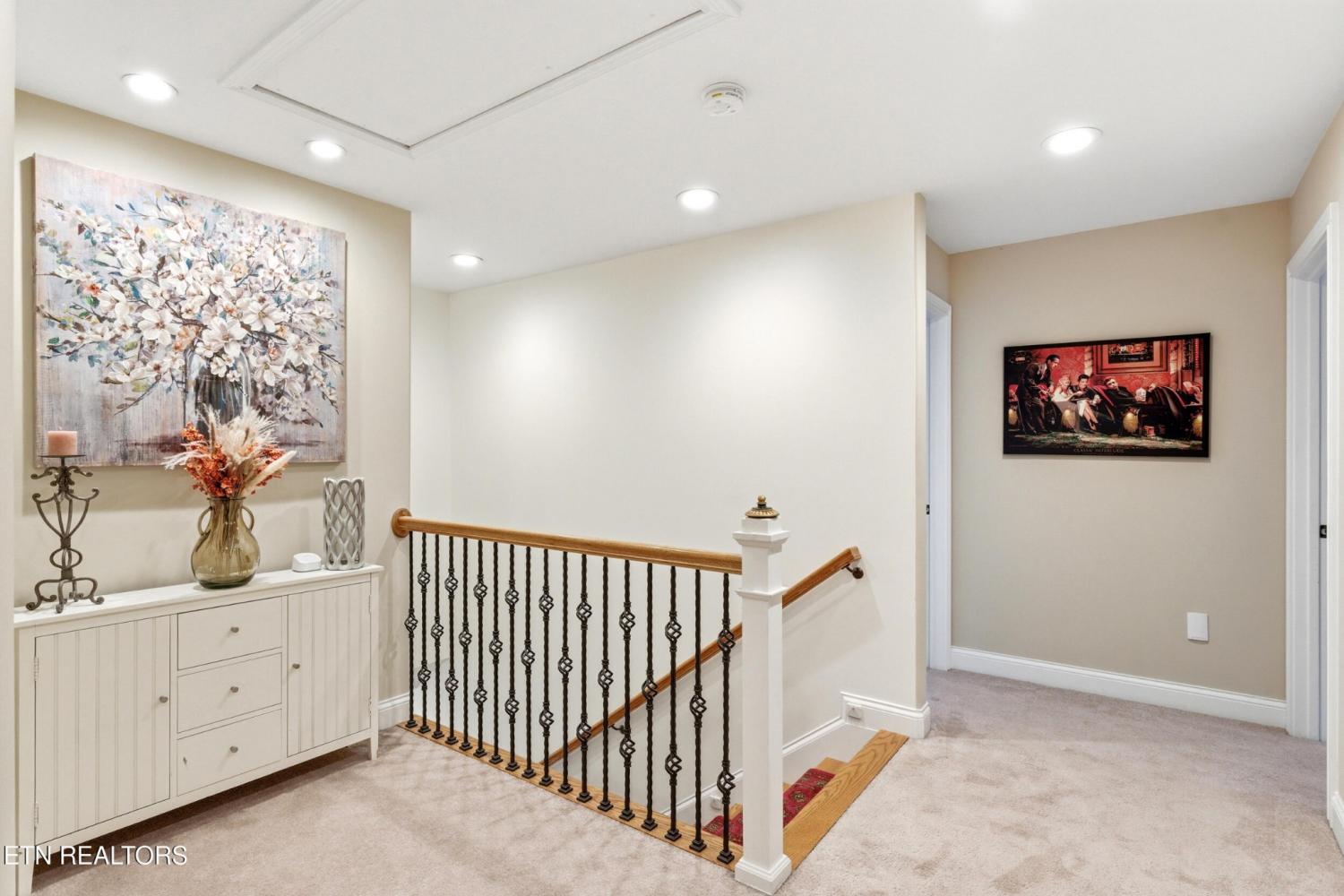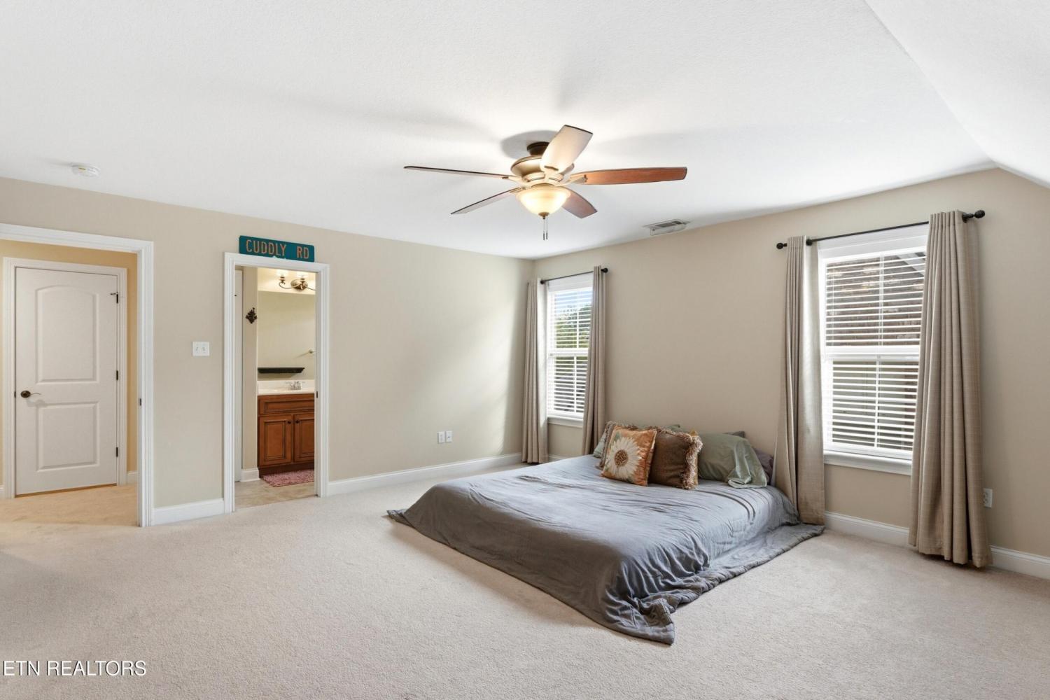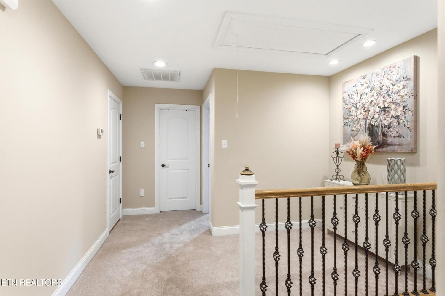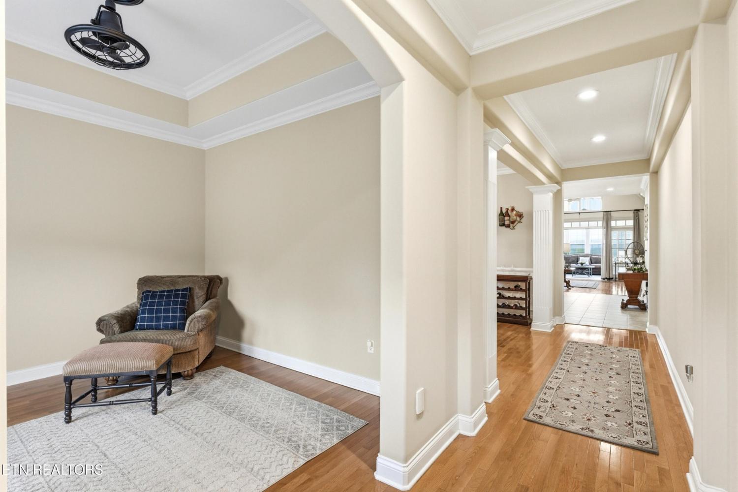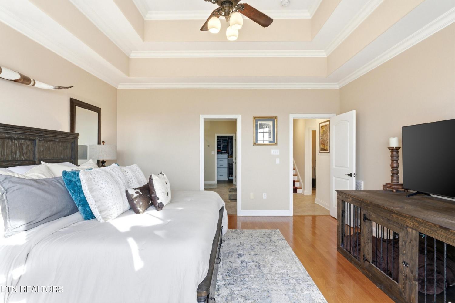 Welcome to an exceptional offering in Bishops Court, where refined design meets uninterrupted panoramic views of the Smoky Mountains. This 3,281 sq ft residence is thoughtfully positioned to capture breathtaking vistas from nearly every angle, creating a daily backdrop of sunrises, sunsets, and rolling mountain landscapes that simply never get old. Inside, the home unfolds with an elegant, open-concept design highlighted by soaring ceilings, rich hardwood flooring, and an abundance of natural light. A formal dining space sets the tone for elevated entertaining, while the chef's kitchen--complete with custom cabinetry, granite surfaces, stainless appliances, and an oversized island--anchors the heart of the home. The living area is both warm and sophisticated, centered around a gas fireplace and seamlessly extending into a stunning sunroom wrapped in windows, where the views take center stage. Just beyond, the premium Trex deck offers a low-maintenance outdoor retreat--perfect for morning coffee above the city or evenings watching the mountains fade into dusk. The main-level owner's suite is a private sanctuary, designed to maximize both comfort and scenery. Wake up to mountain views and unwind in a spa-like ensuite featuring a soaking tub, walk-in shower, and expansive custom closet system. Upstairs, two generously sized bedrooms each feature private ensuite baths, offering ideal accommodations for guests or family. A spacious bonus room provides flexibility for a media room, home office, or additional living space. All of this is complemented by a maintenance-free lifestyle, with HOA services covering exterior upkeep--allowing you to fully enjoy the beauty and ease of East Tennessee living. This is more than a home--it's a vantage point, a retreat, and a rare opportunity to own one of Knoxville's most scenic properties.