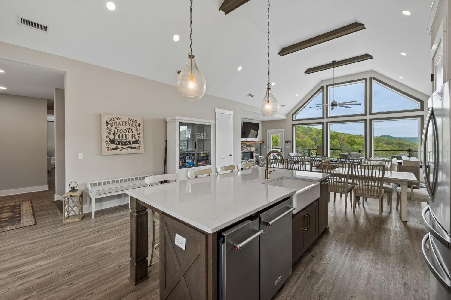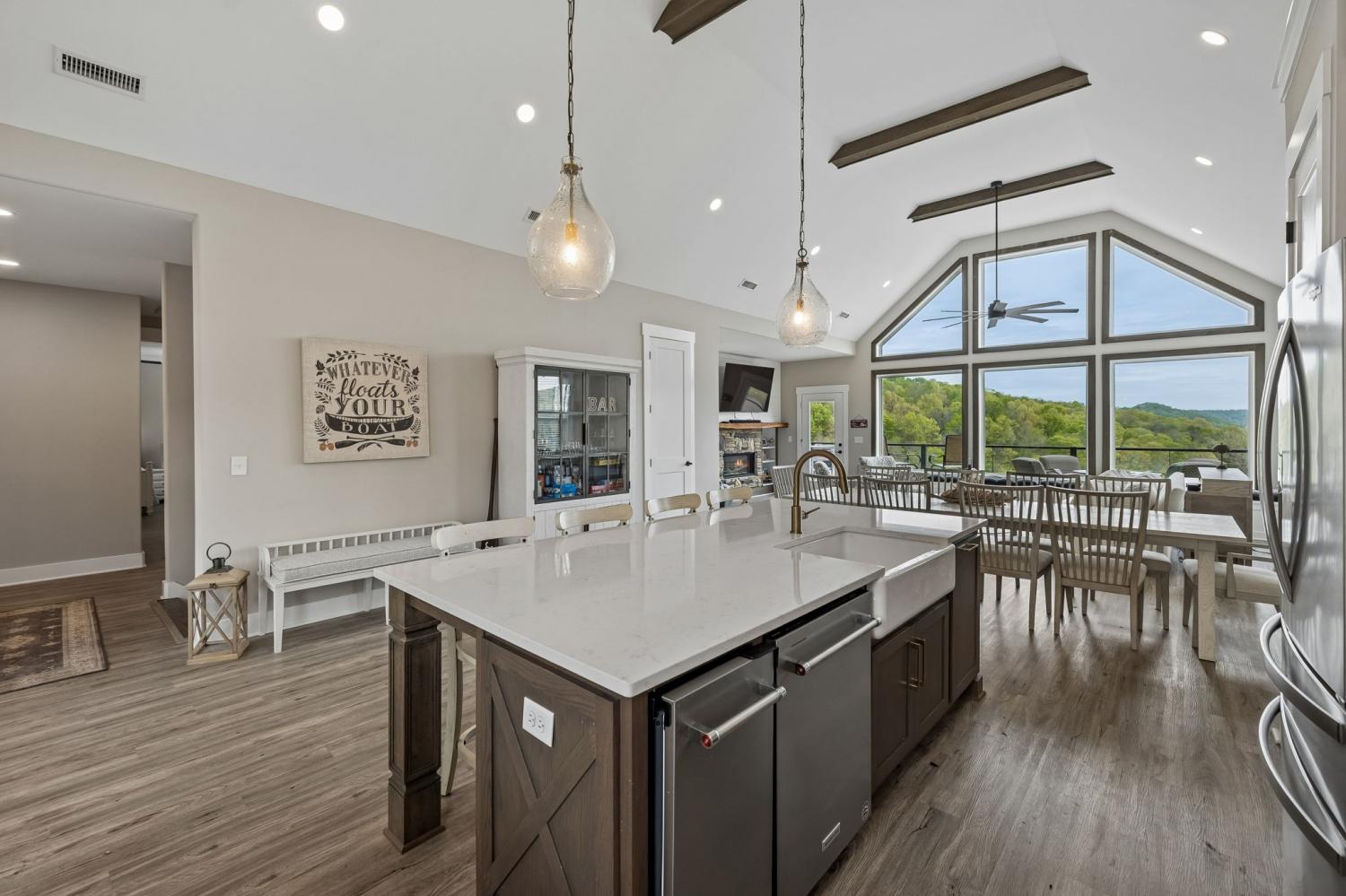 Lake life just got a whole lot better! Just two minutes, yes two, from Hidden Harbor Marina, you can bring your golf cart, bring your pontoon, and be on the water in no time. This 5 bedroom, 4.5 bath home offers two spacious living areas, two fireplaces, and a layout that balances comfort with functionality. The beautiful kitchen is equipped with stainless steel appliances, a gas stove, and an ice machine, making it easy to prep, entertain, and keep the cooler stocked for a day on the lake. The lower level is a full, finished basement designed for lake living, featuring sleek epoxy floors, a kitchenette, and generous space for gathering, hosting, or unwinding after a day on the water. The home is ideal for hosting, weekend getaways, or full-time living, with plenty of space for family and guests alike. Step out onto the covered decks and take in the views, perfect for morning coffee, relaxing evenings, and everything in between. Homes this close to the marina with this level of space and flexibility are hard to find. If you’ve been waiting for the right lake property, this is it!
