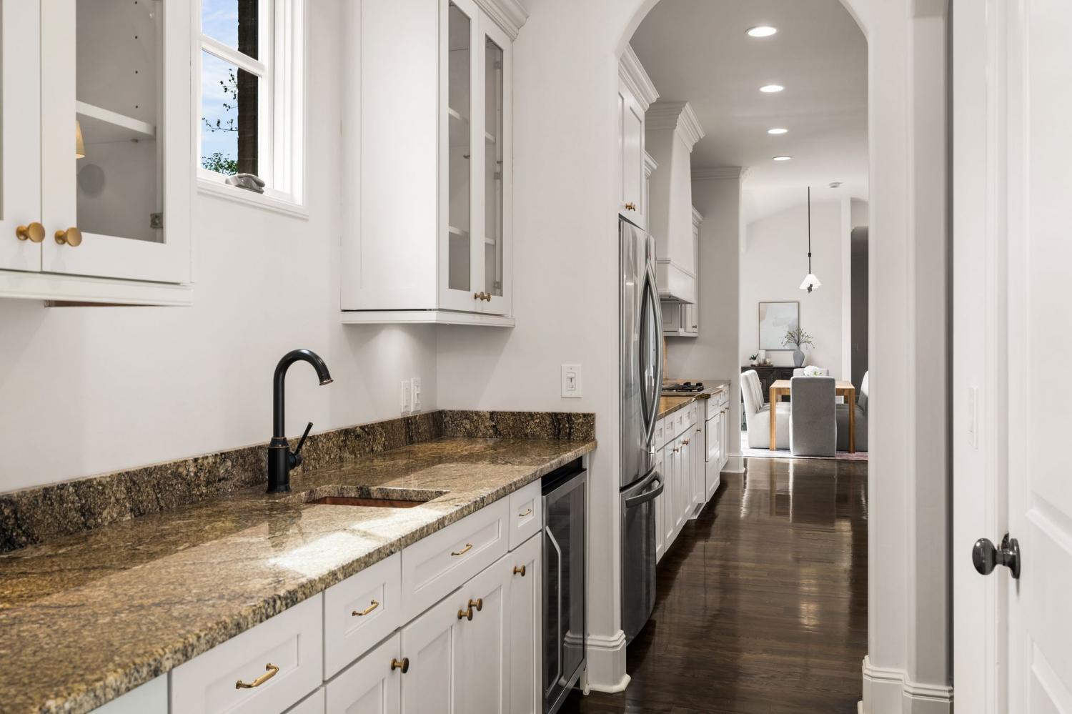 Perched 1/2 acre off of the street, this stunning Green Hills tudor-inspired home features 4 bedrooms and 4.5 baths with over 6,000 SF of thoughtfully designed living space. The open, light-filled floor plan boasts 10-foot ceilings, a two-story living room, and a chef-inspired kitchen perfect for entertaining family + friends. This home offers two primary suites, two dedicated office spaces, two-car garage, and a two-tiered back deck that leads you out into a serene outdoor escape, featuring stone pathways, a hot tub and fresh landscaping. Extra square footage in the basement provides ample opportunity for a wine cellar, home-gym, craftsman space - whatever you may need. With recent upgrades (Spring 2026) including a new roof, fresh paint, new light fixtures, new carpet and fresh landscaping, this home is truly move-in ready. Located minutes from downtown and Green Hills shopping + dining and zoned for Percy Priest Elementary, this home combines privacy, luxury, functionality and convenience in one exceptional package.