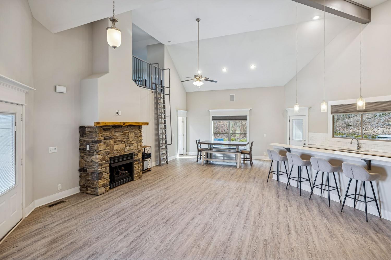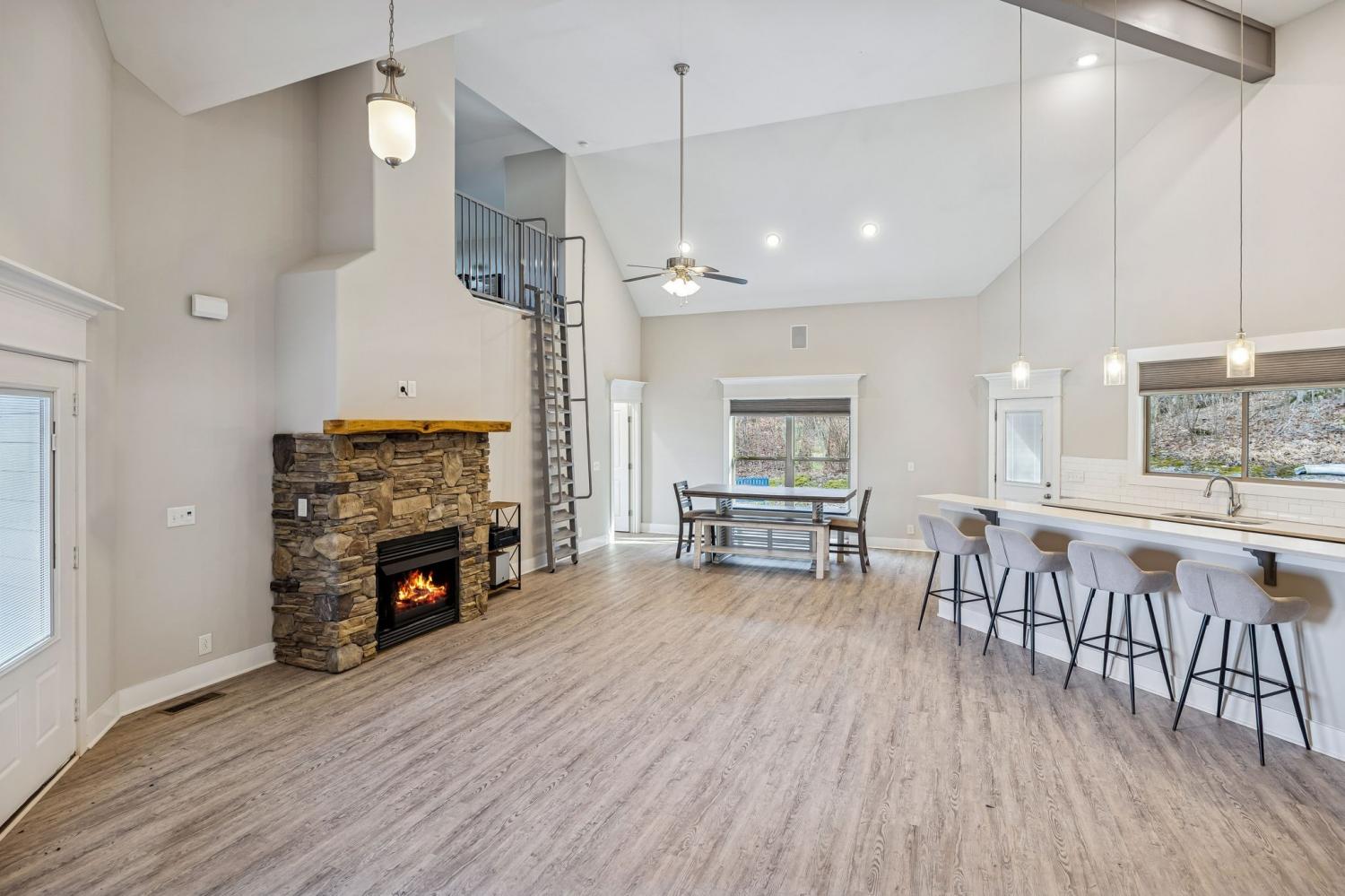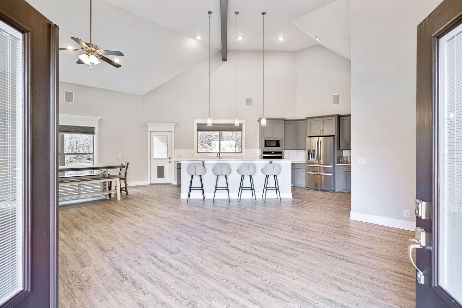 This is truly one of the most unique opportunities at Center Hill Lake. Offering 3 bedrooms and 2 full baths, this home blends comfort, flexibility, and exceptional functionality whether you are searching for a full time residence or the perfect lake retreat. The spacious owner’s suite feels like a private escape and features a soaking tub and tiled shower. The great room is warm and inviting with a fireplace, open concept layout, and durable LVP flooring designed for both everyday living and easy maintenance. Upstairs, a versatile loft provides the ideal space for a bunk room, office, or additional lounge area. Two secondary bedrooms are positioned near a second living space, creating separation and flexibility for guests. Step outside to a covered porch surrounded by nature with no one behind you, offering privacy and peaceful views. The garage capacity sets this property apart, with 10 ft doors, it is tall enough to accommodate a 26 ft boat with the tower up. This home was built for lake life! And the location to the lake is what truly makes this home exceptional. Center Hill Lake is right there. You are within walking distance to the water and among the closest residential properties to the lake in Smithville. Ride a golf cart or take a short walk to a boat slip and enjoy everything Hidden Harbor has to offer. Opportunities this close to the lake with this level of garage space are rare. This one is special!