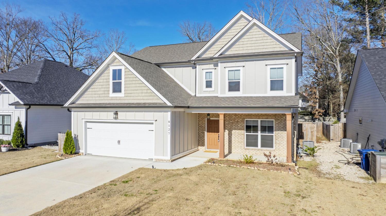 Welcome to this nearly new 4-bedroom, 3-bathroom home built in 2023, offering modern living in a fantastic location! This beautifully designed 2685sq ft residence features an open floor plan that effortlessly combines style and functionality. The inviting kitchen comes equipped with stainless steel appliances, including a fridge, stove, and dishwasher, along with a spacious pantry for all your storage needs. The adjacent living room boasts a cozy fireplace, perfect for relaxing evenings, while a separate formal dining room adds an elegant touch for entertaining. Convenience is key with one bedroom located on the main level, ideal for guests or as a home office. The primary suite is located on the second level, offering privacy and tranquility, along with two additional guest rooms. A versatile bonus room awaits your creativity—use it as a media room, office, gym, or whatever suits your lifestyle. The laundry area is conveniently situated upstairs and includes a washer and dryer, making chores a breeze. Luxury blinds throughout the home add a touch of sophistication and privacy. Enjoy outdoor living on the screened-in back porch, overlooking a fenced-in backyard, perfect for pets and play. The property also features a two-car attached garage for added convenience. As part of a welcoming community, you'll have access to a pool and playground, making this the ideal place for families. Located just minutes from Hamilton Place Mall, enjoy great shopping, dining, and entertainment options nearby. Don't miss your chance to own this immaculate home—schedule a showing today!