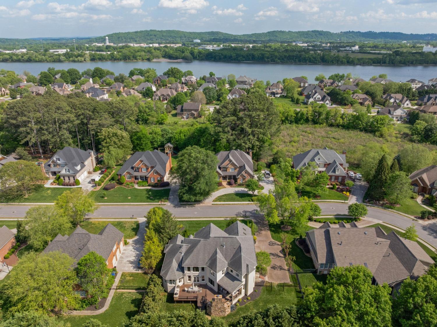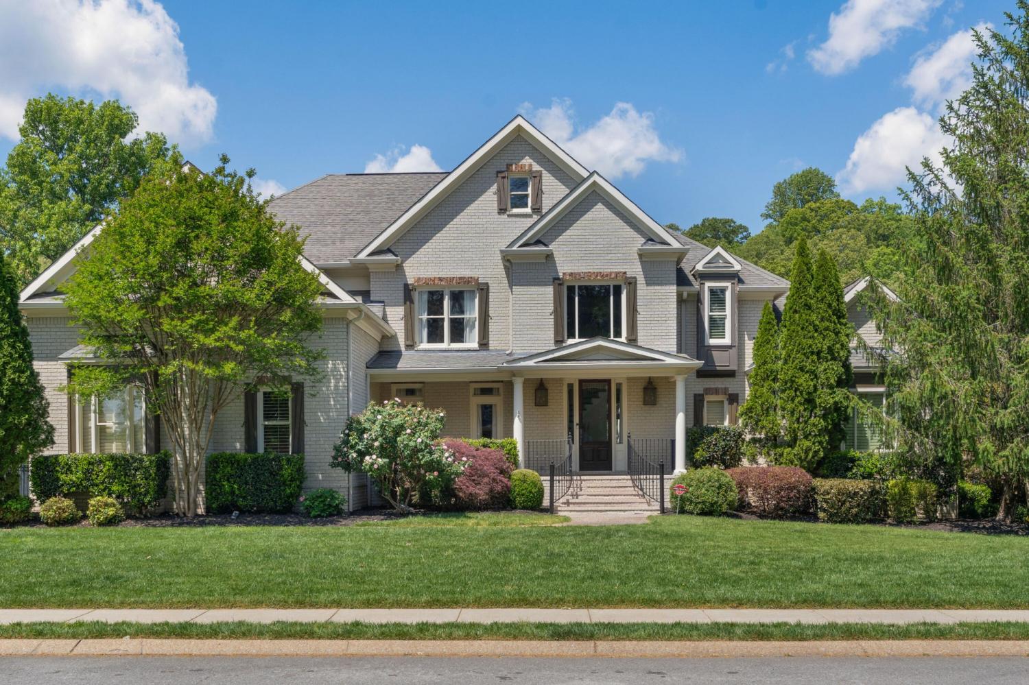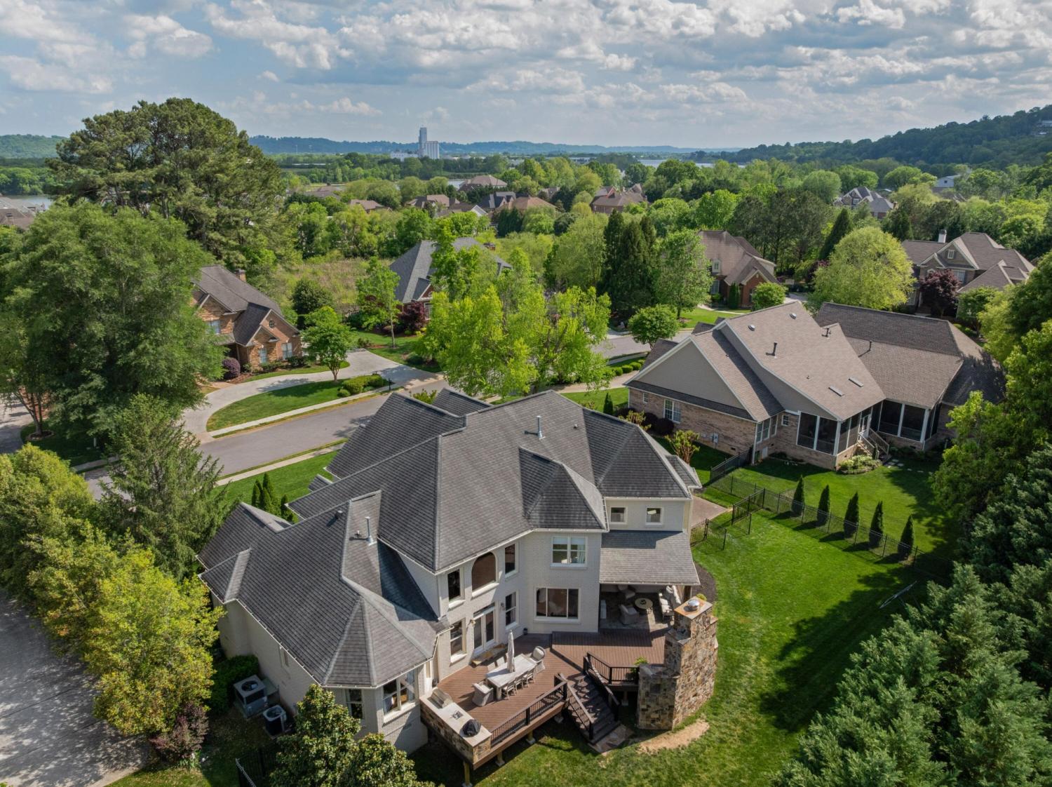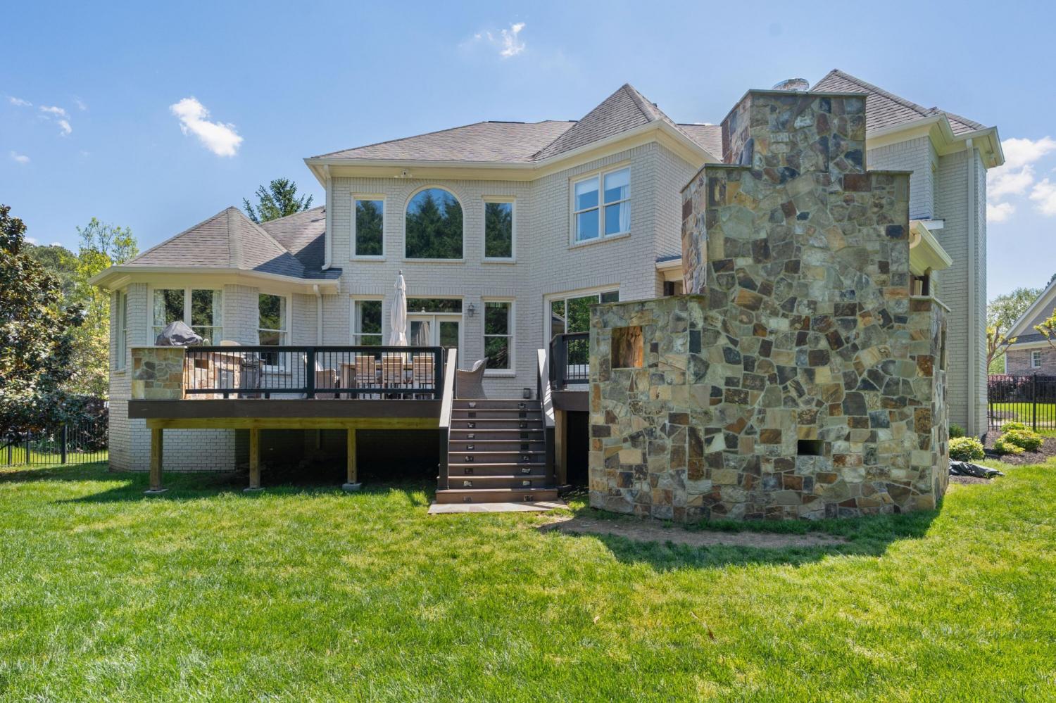 All brick 4 bedroom, 4.5 bath home in the The Enclave At Riverview neighborhood just minutes from schools, parks, hospitals, the Chattanooga Golf and Country Club, the shopping and restaurants of the North Shore and Hixson, as well as downtown Chattanooga. This well-designed home boasts a great floor plan with both formal and informal living spaces, an open living concept, the primary suite on the main, a 3-car garage, fantastic outdoor living spaces and a level, fenced back yard. You will also love the quality finishes, including the hardwood floors, crown moldings, decorative and recessed lighting, stone countertops, 2 gas fireplaces inside and a wood burning one outside, 2 staircases, 2 ice makers and coveted closet systems. Your tour begins with entry from the covered front porch to a nice foyer with a sweeping staircase, powder room and enlarged doorway to the dining room. The great room is straight ahead and has a 2-story ceiling, one of the gas fireplaces, a dry bar with ice maker and beverage fridge and French doors to the expansive rear composite deck. The heart of the home is the kitchen which is open to the breakfast and the keeping rooms. The kitchen has a center island, level dining bar, tile backsplash, soft-close cabinetry, a walk-in pantry and stainless appliances, including a gas cooktop and convection double wall oven, with the garage and laundry room just steps away. The breakfast area has access to the covered patio, and the keeping room has the 2nd gas fireplace and will quickly become a favorite spot in the house. The covered back patio faces the outdoor fireplace, while the built-in grilling station is on the other side of the deck with room to dine, gather and entertain in-between. The primary bedroom is a retreat unto itself with a vaulted ceiling, sitting area and double doors to the primary bath with separate vanities, a jetted tub, a center shower with tile and glass and two walk-in closets.