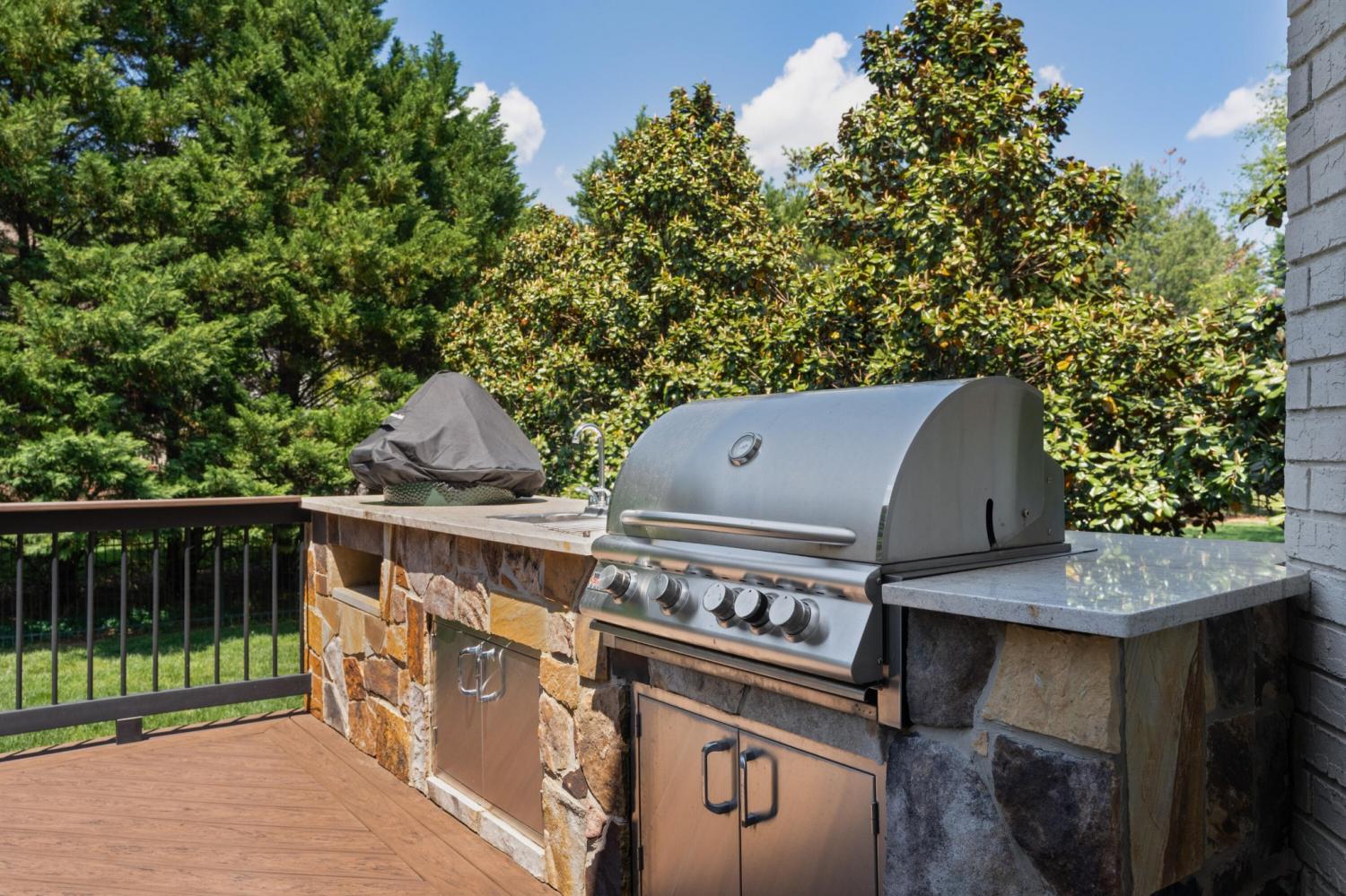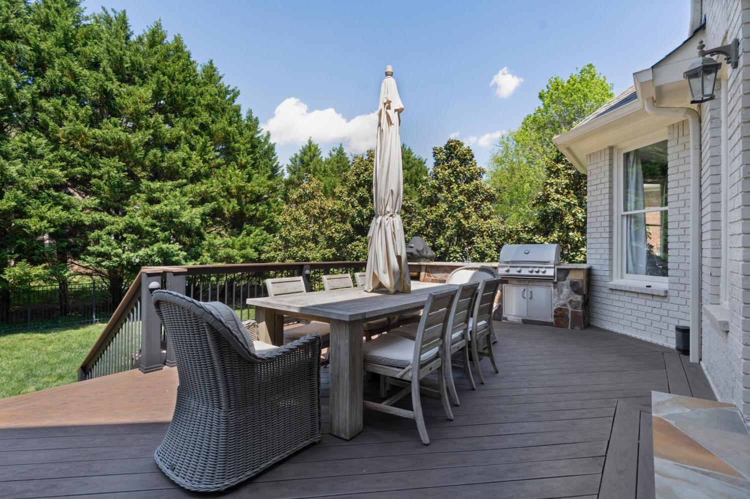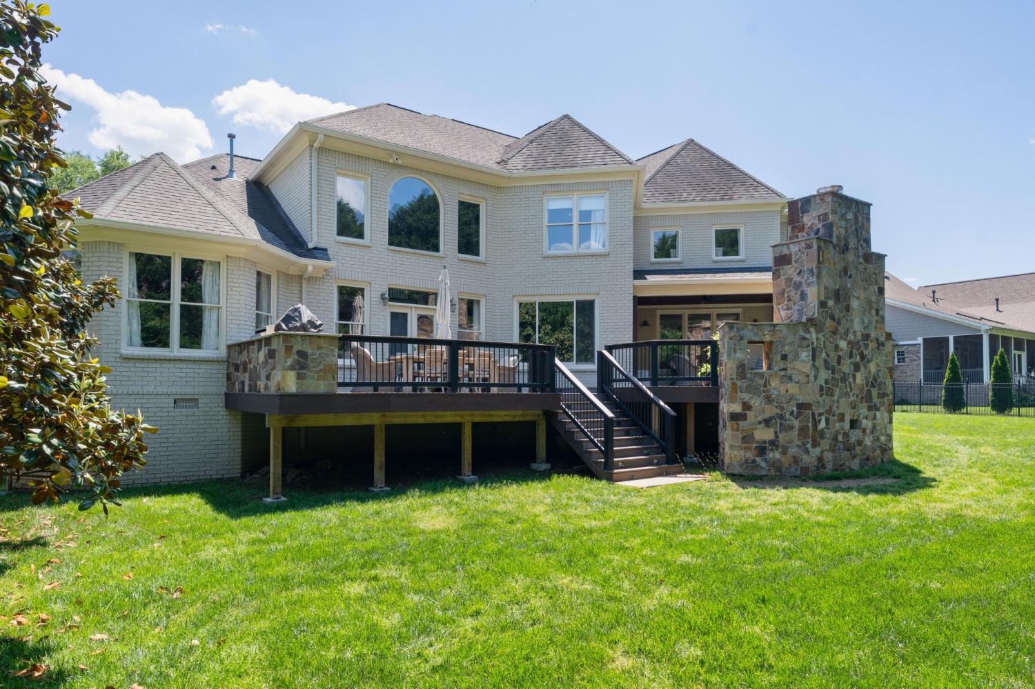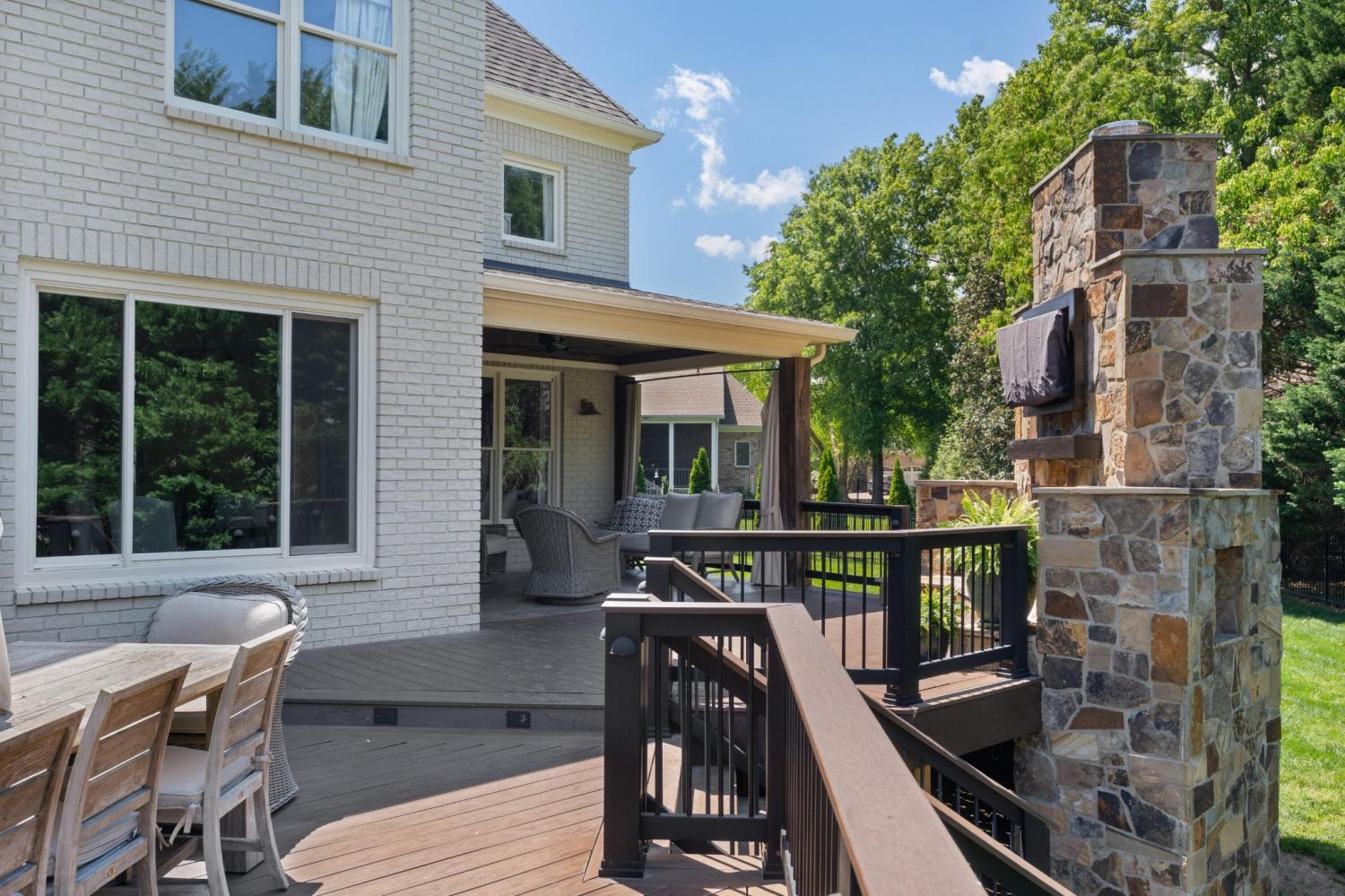 All brick 4 bedroom, 4.5 bath home in the The Enclave At Riverview neighborhood just minutes from schools, parks, hospitals, the Chattanooga Golf and Country Club, the shopping and restaurants of the North Shore and Hixson, as well as downtown Chattanooga. This well-designed home boasts a great floor plan with both formal and informal living spaces, an open living concept, the primary suite on the main, a 3-car garage, fantastic outdoor living spaces and a level, fenced back yard. You will also love the quality finishes, including the hardwood floors, crown moldings, decorative and recessed lighting, stone countertops, 2 gas fireplaces inside and a wood burning one outside, 2 staircases, 2 ice makers and coveted closet systems. Your tour begins with entry from the covered front porch to a nice foyer with a sweeping staircase, powder room and enlarged doorway to the dining room. The great room is straight ahead and has a 2-story ceiling, one of the gas fireplaces, a dry bar with ice maker and beverage fridge and French doors to the expansive rear composite deck. The heart of the home is the kitchen which is open to the breakfast and the keeping rooms. The kitchen has a center island, level dining bar, tile backsplash, soft-close cabinetry, a walk-in pantry and stainless appliances, including a gas cooktop and convection double wall oven, with the garage and laundry room just steps away. The breakfast area has access to the covered patio, and the keeping room has the 2nd gas fireplace and will quickly become a favorite spot in the house. The covered back patio faces the outdoor fireplace, while the built-in grilling station is on the other side of the deck with room to dine, gather and entertain in-between. The primary bedroom is a retreat unto itself with a vaulted ceiling, sitting area and double doors to the primary bath with separate vanities, a jetted tub, a center shower with tile and glass and two walk-in closets.
