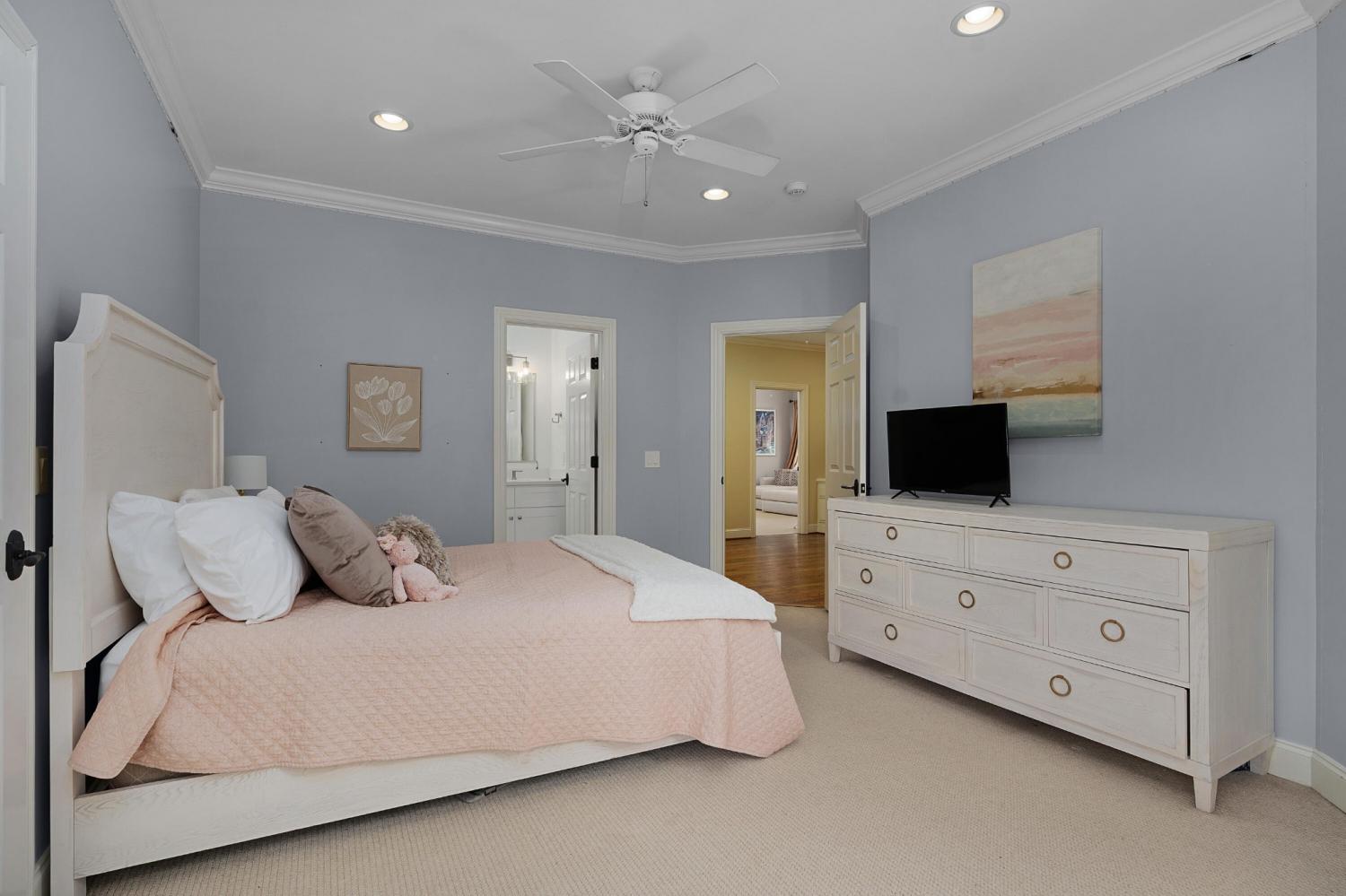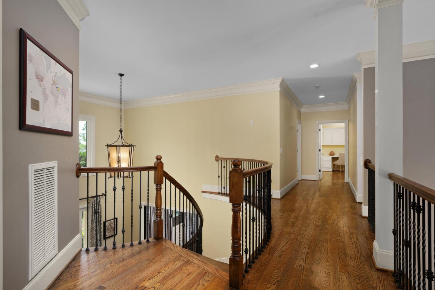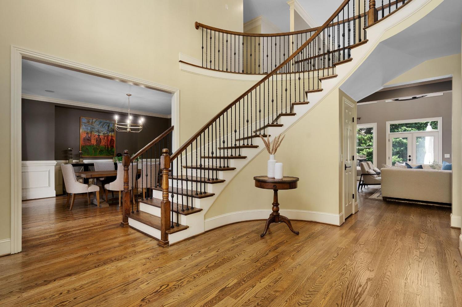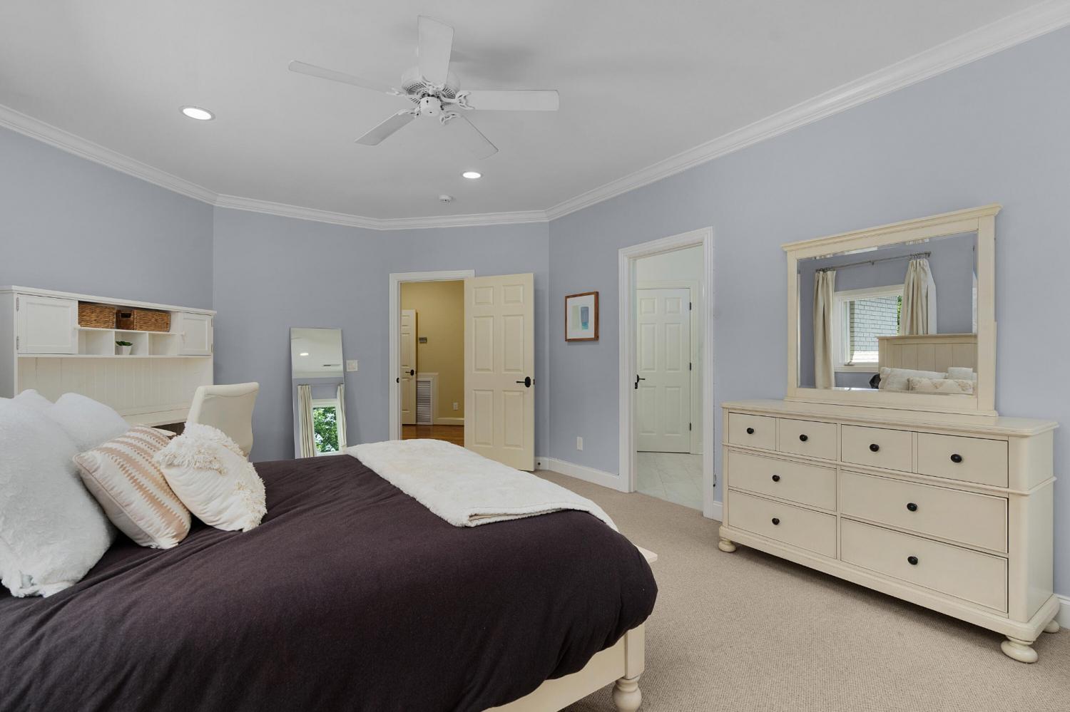 All brick 4 bedroom, 4.5 bath home in the The Enclave At Riverview neighborhood just minutes from schools, parks, hospitals, the Chattanooga Golf and Country Club, the shopping and restaurants of the North Shore and Hixson, as well as downtown Chattanooga. This well-designed home boasts a great floor plan with both formal and informal living spaces, an open living concept, the primary suite on the main, a 3-car garage, fantastic outdoor living spaces and a level, fenced back yard. You will also love the quality finishes, including the hardwood floors, crown moldings, decorative and recessed lighting, stone countertops, 2 gas fireplaces inside and a wood burning one outside, 2 staircases, 2 ice makers and coveted closet systems. Your tour begins with entry from the covered front porch to a nice foyer with a sweeping staircase, powder room and enlarged doorway to the dining room. The great room is straight ahead and has a 2-story ceiling, one of the gas fireplaces, a dry bar with ice maker and beverage fridge and French doors to the expansive rear composite deck. The heart of the home is the kitchen which is open to the breakfast and the keeping rooms. The kitchen has a center island, level dining bar, tile backsplash, soft-close cabinetry, a walk-in pantry and stainless appliances, including a gas cooktop and convection double wall oven, with the garage and laundry room just steps away. The breakfast area has access to the covered patio, and the keeping room has the 2nd gas fireplace and will quickly become a favorite spot in the house. The covered back patio faces the outdoor fireplace, while the built-in grilling station is on the other side of the deck with room to dine, gather and entertain in-between. The primary bedroom is a retreat unto itself with a vaulted ceiling, sitting area and double doors to the primary bath with separate vanities, a jetted tub, a center shower with tile and glass and two walk-in closets.
