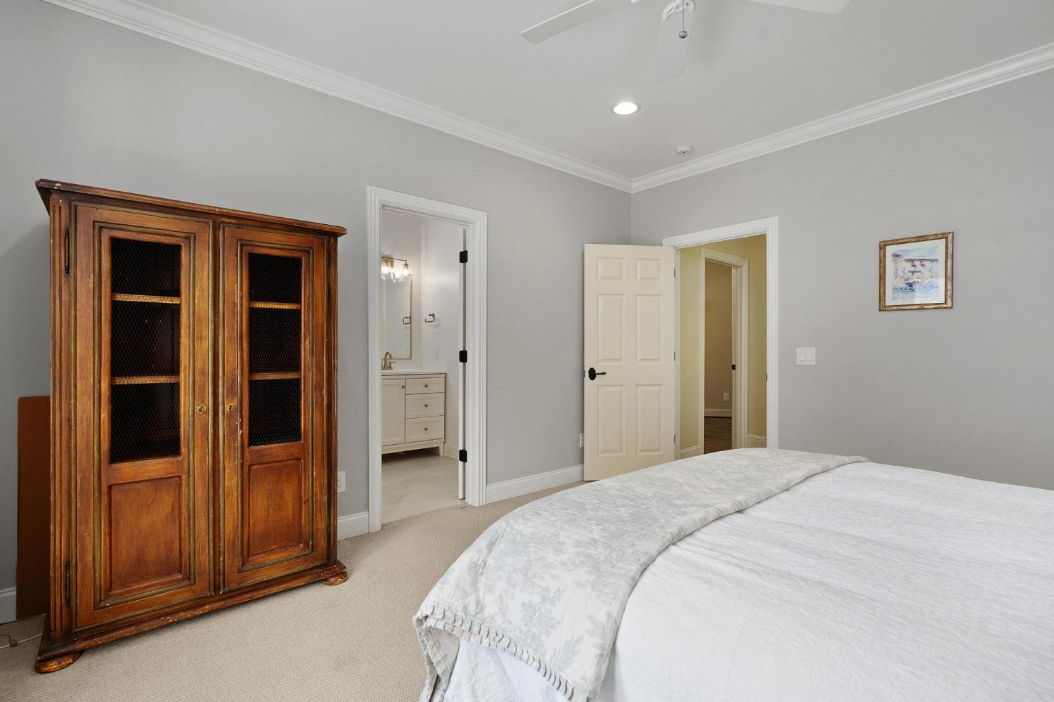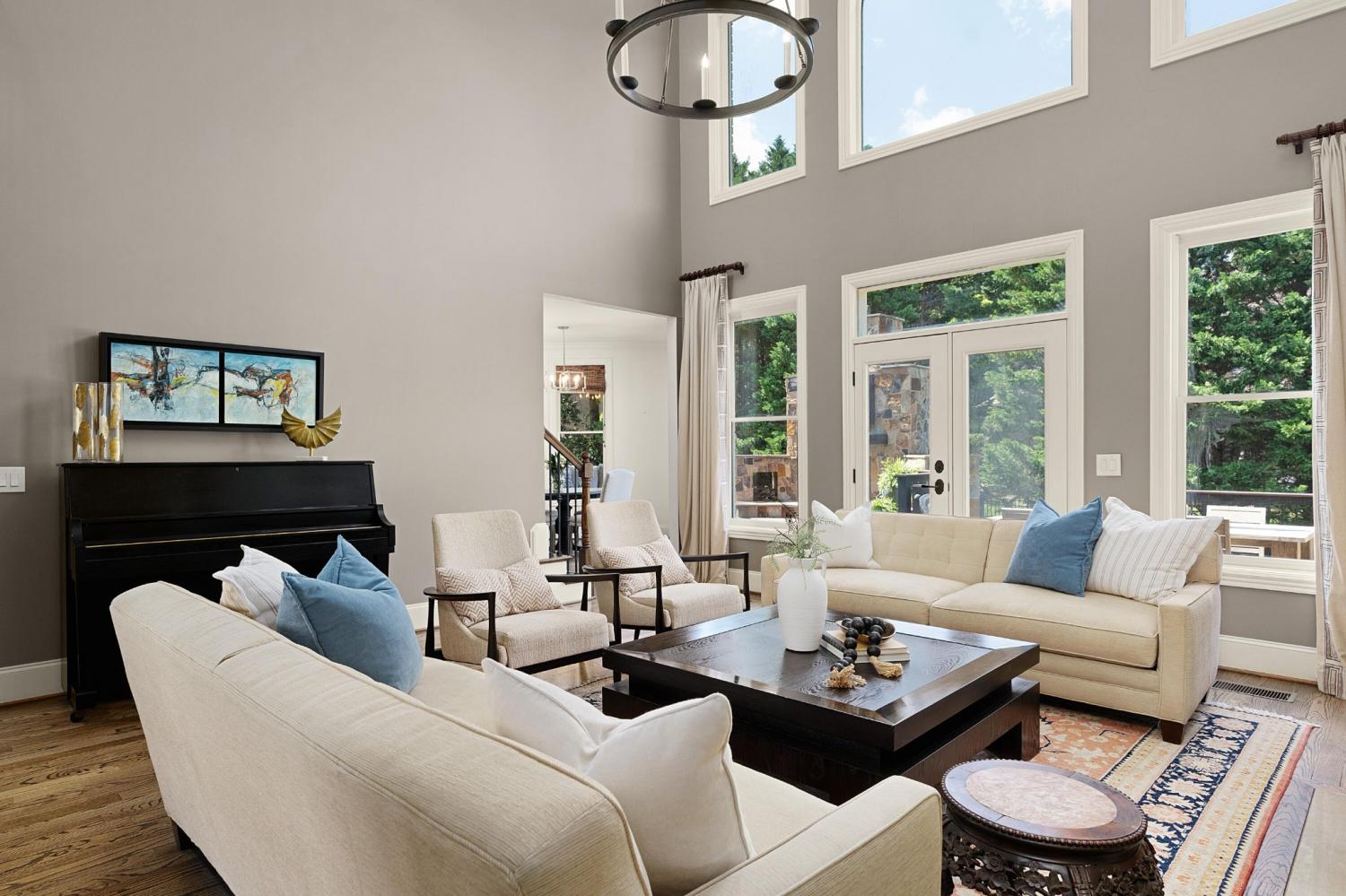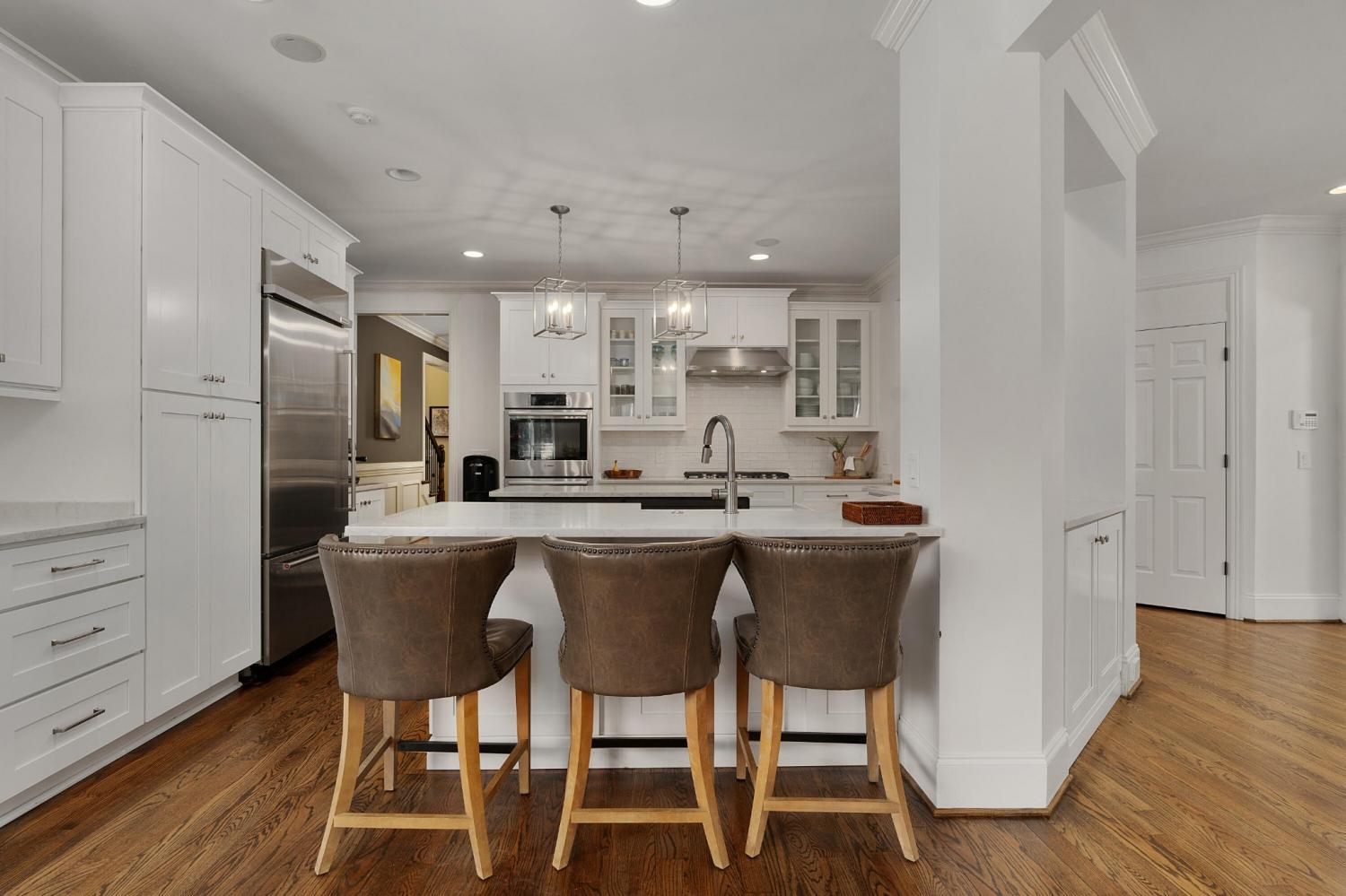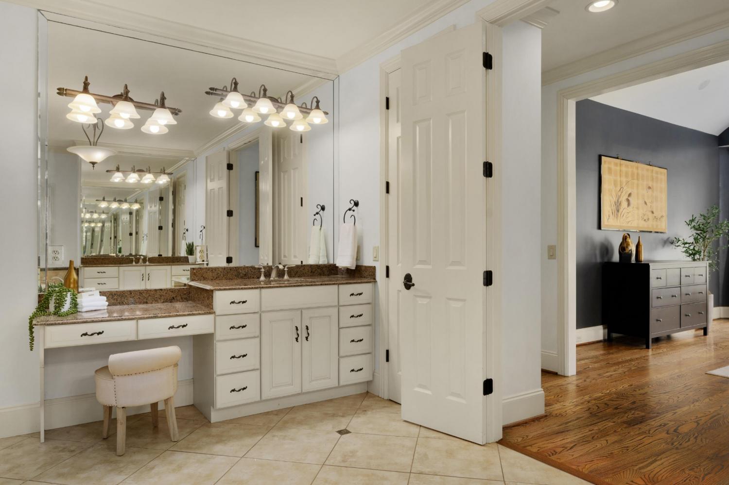 All brick 4 bedroom, 4.5 bath home in the The Enclave At Riverview neighborhood just minutes from schools, parks, hospitals, the Chattanooga Golf and Country Club, the shopping and restaurants of the North Shore and Hixson, as well as downtown Chattanooga. This well-designed home boasts a great floor plan with both formal and informal living spaces, an open living concept, the primary suite on the main, a 3-car garage, fantastic outdoor living spaces and a level, fenced back yard. You will also love the quality finishes, including the hardwood floors, crown moldings, decorative and recessed lighting, stone countertops, 2 gas fireplaces inside and a wood burning one outside, 2 staircases, 2 ice makers and coveted closet systems. Your tour begins with entry from the covered front porch to a nice foyer with a sweeping staircase, powder room and enlarged doorway to the dining room. The great room is straight ahead and has a 2-story ceiling, one of the gas fireplaces, a dry bar with ice maker and beverage fridge and French doors to the expansive rear composite deck. The heart of the home is the kitchen which is open to the breakfast and the keeping rooms. The kitchen has a center island, level dining bar, tile backsplash, soft-close cabinetry, a walk-in pantry and stainless appliances, including a gas cooktop and convection double wall oven, with the garage and laundry room just steps away. The breakfast area has access to the covered patio, and the keeping room has the 2nd gas fireplace and will quickly become a favorite spot in the house. The covered back patio faces the outdoor fireplace, while the built-in grilling station is on the other side of the deck with room to dine, gather and entertain in-between. The primary bedroom is a retreat unto itself with a vaulted ceiling, sitting area and double doors to the primary bath with separate vanities, a jetted tub, a center shower with tile and glass and two walk-in closets.