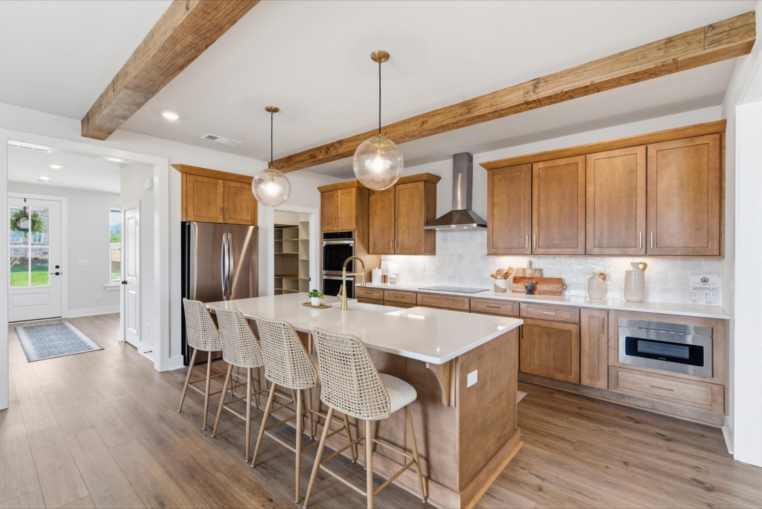 Brand new Harpeth Valley Homes community in prime location just 2 minutes to I-65! Swim in your brand new pool the day you move in and roll it into the price of the home! The Greeter floorplan has an an incredible flow and is thoughtfully designed with the owner's suite and a home office on the main floor. Step onto the large front porch and into the 2 story foyer flooded with natural light. Walk into your dining room and HUGE kitchen with a 9 foot island and an extra large walk in pantry! The 22x17 family room has an optional vaulted ceiling and overlooks the covered back porch. Continue on to the owner's suite that has a 15x6 closet and a large primary bath with multiple options. Upstairs you'll find 3 additional bedrooms, 2 full baths and a 21x24 bonus room! The garage is oversized at 24x22 so you can park your truck inside! 9 foot ceilings up and down, quartz countertops, stainless appliances! This home is on one of the largest lots in the community at .35 acres and has an extra long driveway! Limited lots available! DO NOT MISS THIS INTRODUCTORY PRICING! *ALL PHOTOS ARE OF OUR DECORATED GREETER MODEL HOME WHICH SHOWS MANY OF THE AVAILABLE OPTIONS!