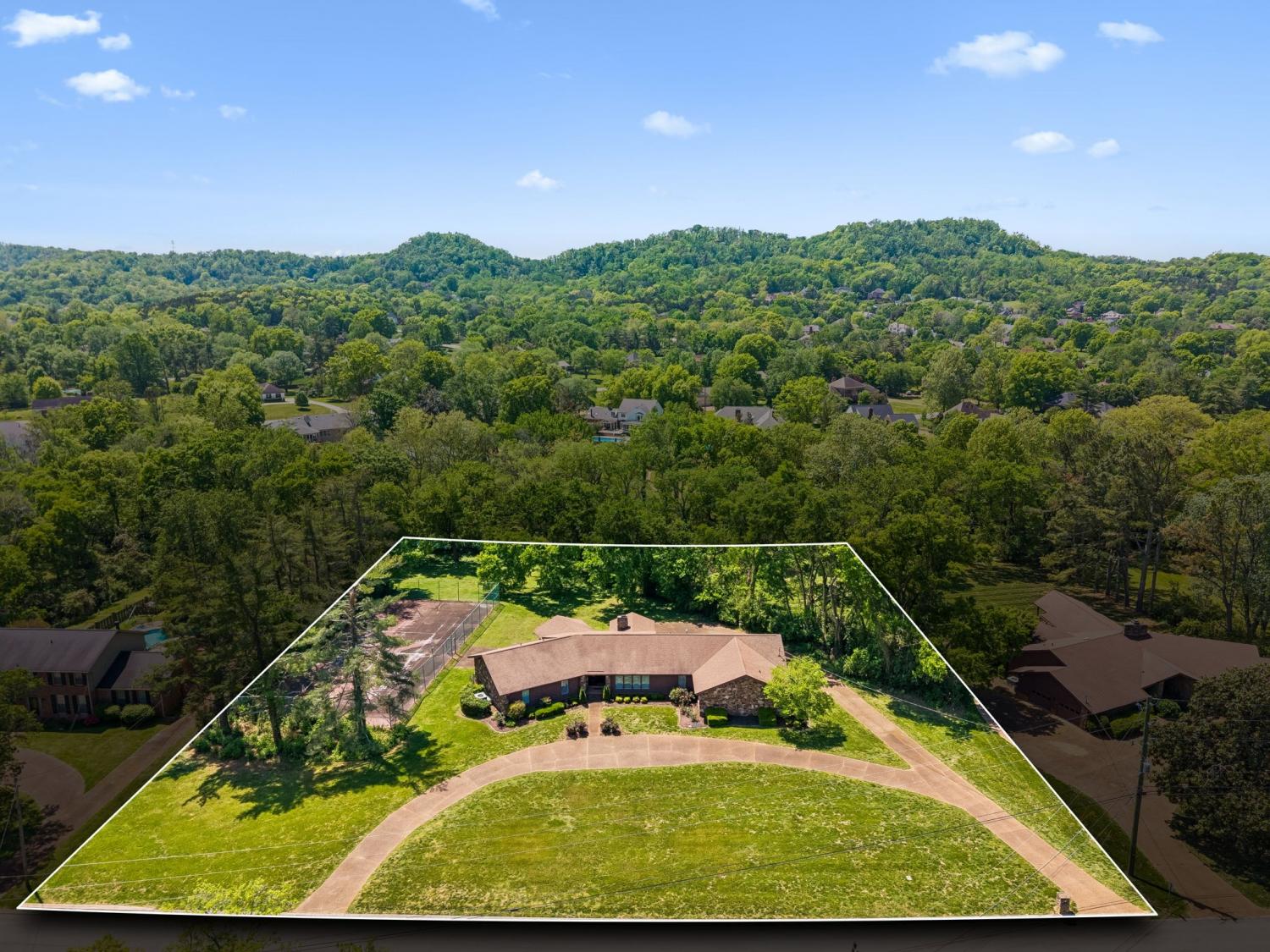 Offered for the first time since the 1980s, this meticulously maintained ranch home in River Oaks sits on a rare nearly 2-acre double lot in one of the most convenient locations in Brentwood. With over 3,600 square feet, this sprawling home features 4 bedrooms and 2 full bathrooms and 2 half bathrooms, with the primary suite privately positioned on the opposite end of the home from the three additional bedrooms. Multiple living spaces include a formal living room, cozy den, formal dining room, and an incredible conditioned sunroom overlooking the peaceful & very private backyard. The pride of ownership is evident throughout, with a renovated kitchen and primary bath in 2018 and additional bathroom updates in 2020. Unlike many homes of this era, the amount of closet space and storage is truly exceptional. A massive unfinished space over the garage offers even more room to expand or store. The backyard is a standout feature, backing to the Little Harpeth River where you can enjoy a healthy, flowing creek filled with fish and crawfish, an ideal setting to explore, play, and create lasting memories. The property also includes a private tennis court ready for updating or conversion to pickleball court. Despite its proximity to the water, the home HAS NEVER flooded, including during the 2010 flood. Zoned for top-rated schools (Scales, BMS & BHS) and offering quick access to Brentwood, Cool Springs, Granny White Park, I-65, and Nashville, this location is hard to beat. Located in River Oaks with a voluntary HOA of just $150/year, this property offers a rare opportunity to enjoy as-is or update and expand on an exceptional homesite. Inspections welcome; sold as-is, where-is. First showings begin Wednesday, April 22nd.