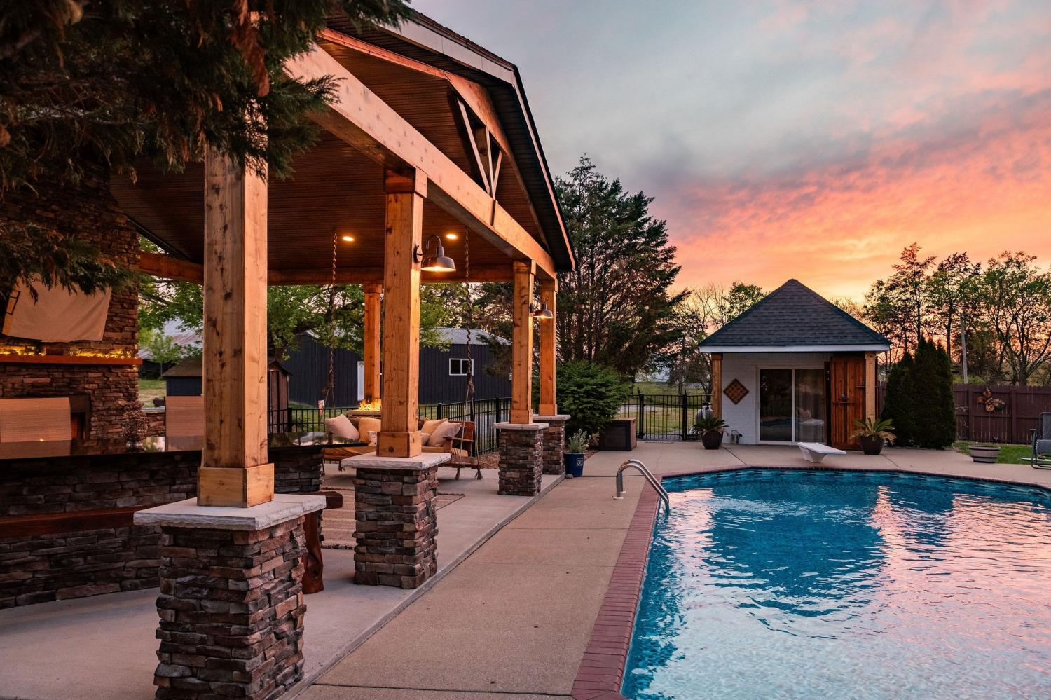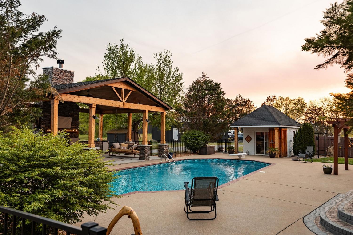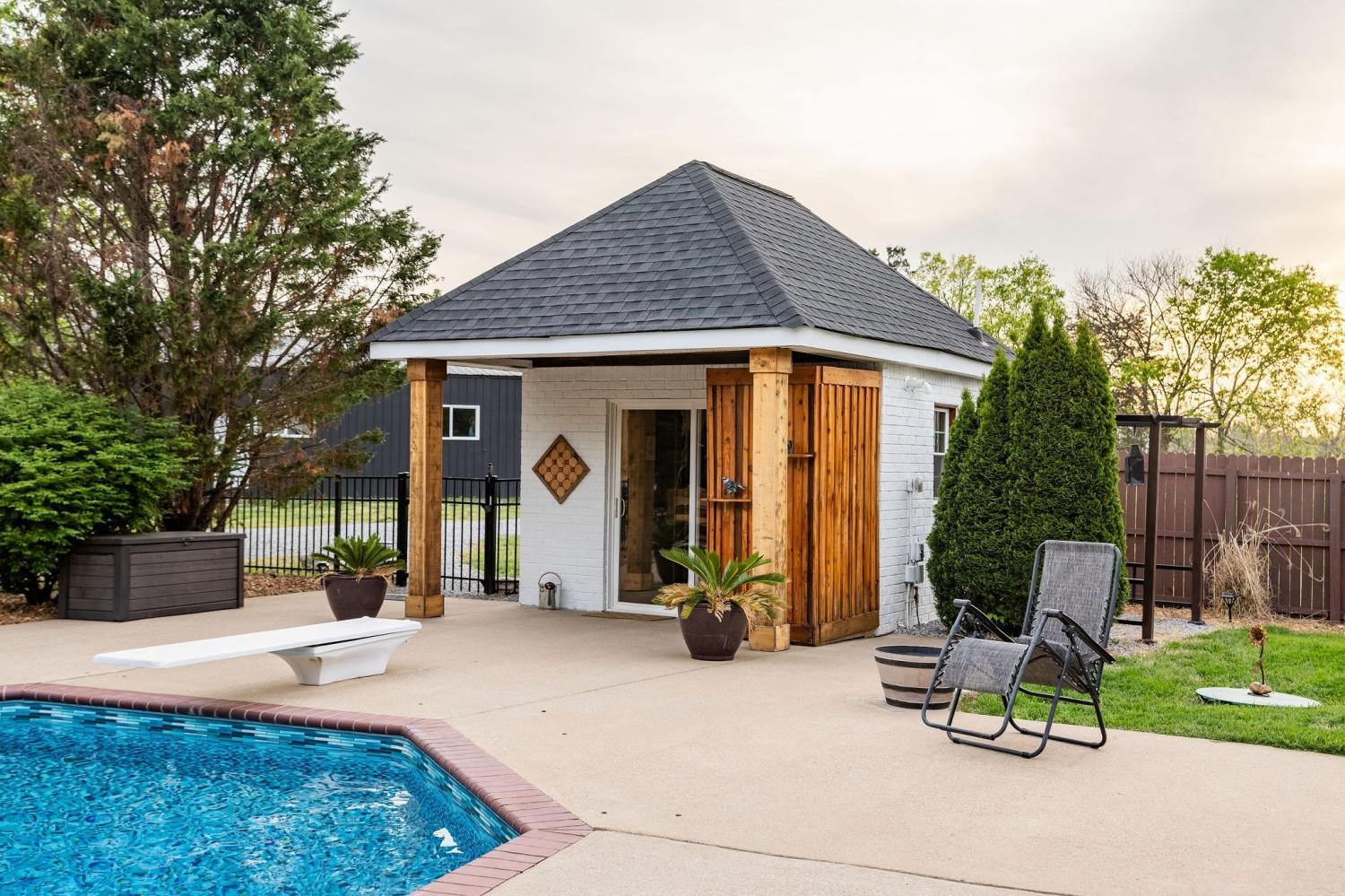 Welcome to your modern country oasis! Tucked between Hartsville, Lebanon, and Gallatin, this Americana dream offers tranquility while remaining conveniently accessible to everyday necessities. The main house features a main-level owner’s suite with a sliding glass door leading to the pool, a private en suite bath, and a walk-in closet. Two additional main-level bedrooms share a Jack-and-Jill style full bathroom. The spacious, chic butcher-block kitchen will be the talk of the town when hosting guests. The gas fireplace quickly fills the living room with warmth while creating a welcoming and calming atmosphere. Upstairs, the living area and 4th bedroom provide added seclusion—ideal for guests or teenagers. Outside, the Guesthouse offers 515 additional sqft of versatile space, perfect for a reading nook, guest quarters, home office, or yoga studio. The pool area is truly an entertainer’s dream—turn on the game, fire up the grill, and create lifelong memories. The pool is heated for year-round enjoyment. The garage offers ample flexibility and could be used as a mancave, storage area, or band rehearsal space while still accommodating vehicles. The tranquil acreage is perfect for evening walks with dogs, sunset views, or simply a moment to clear your mind. The pond is stocked with Bass and the property has numerous young fruit trees!
