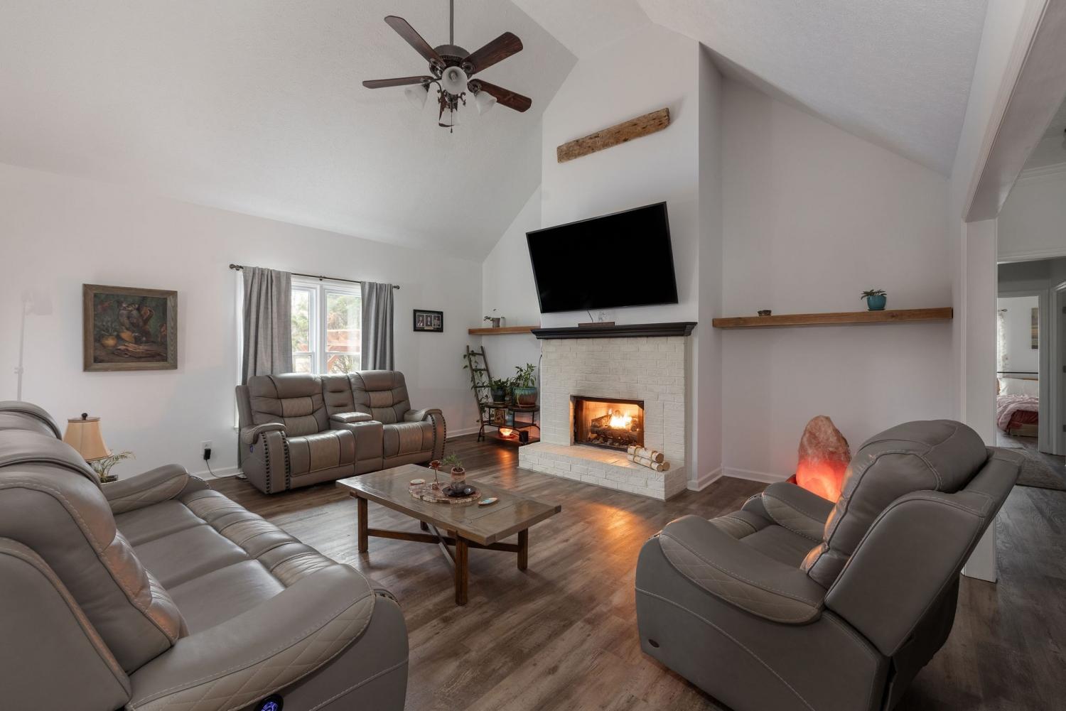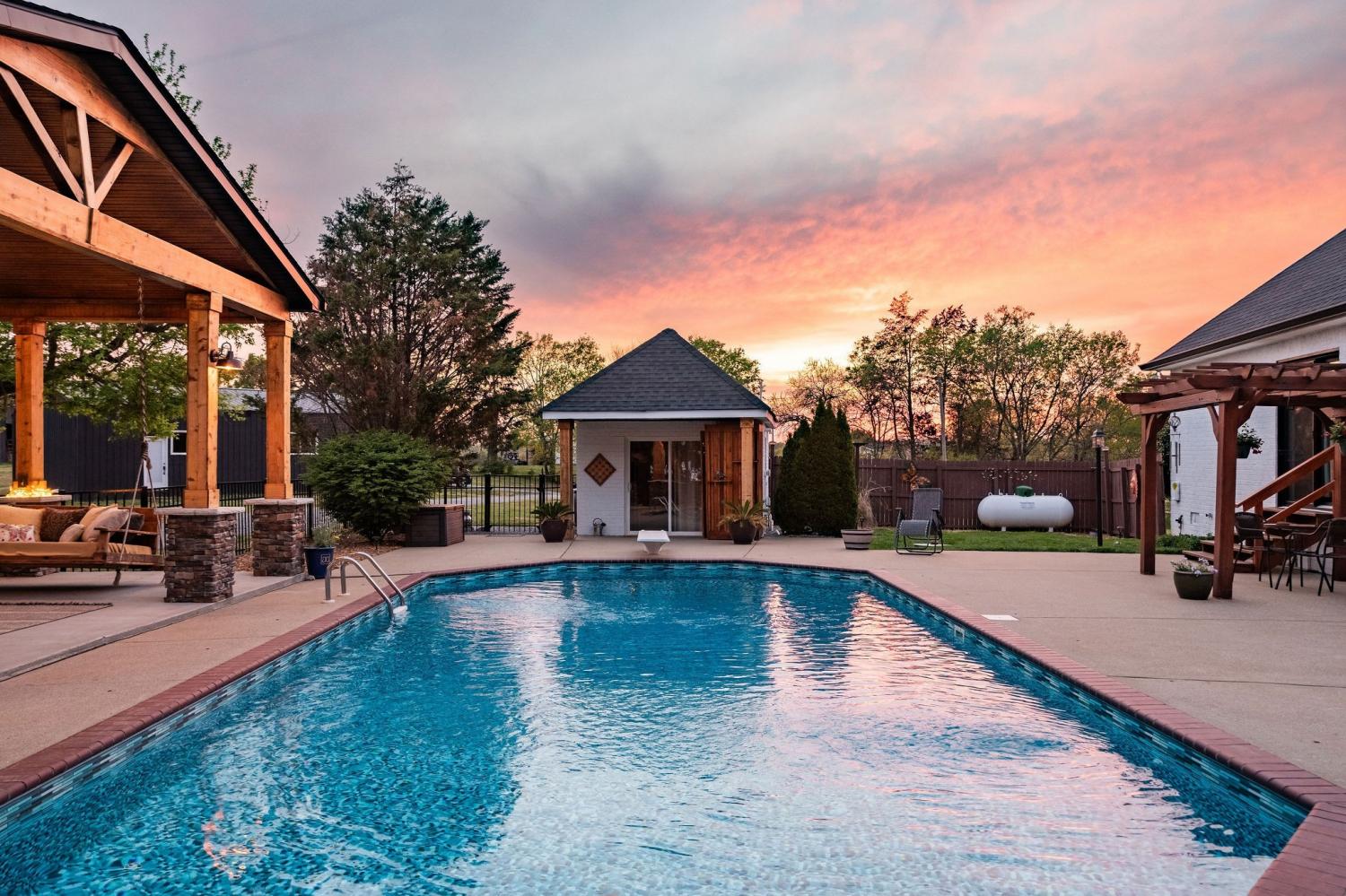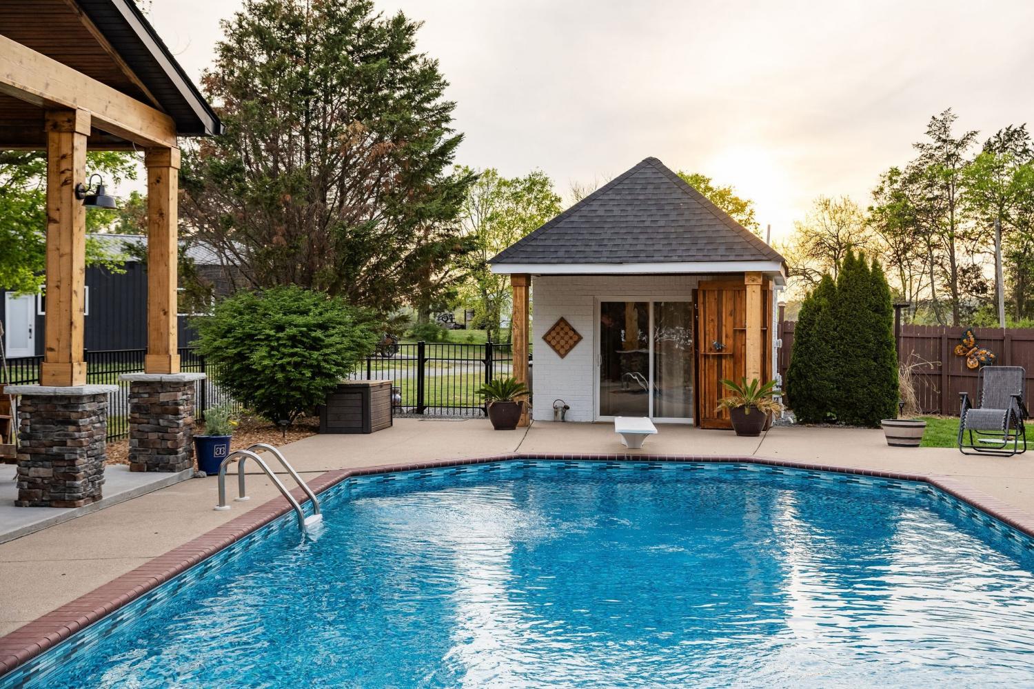 Welcome to your modern country oasis! Tucked between Hartsville, Lebanon, and Gallatin, this Americana dream offers tranquility while remaining conveniently accessible to everyday necessities. The main house features a main-level owner’s suite with a sliding glass door leading to the pool, a private en suite bath, and a walk-in closet. Two additional main-level bedrooms share a Jack-and-Jill style full bathroom. The spacious, chic butcher-block kitchen will be the talk of the town when hosting guests. The gas fireplace quickly fills the living room with warmth while creating a welcoming and calming atmosphere. Upstairs, the living area and 4th bedroom provide added seclusion—ideal for guests or teenagers. Outside, the Guesthouse offers 515 additional sqft of versatile space, perfect for a reading nook, guest quarters, home office, or yoga studio. The pool area is truly an entertainer’s dream—turn on the game, fire up the grill, and create lifelong memories. The pool is heated for year-round enjoyment. The garage offers ample flexibility and could be used as a mancave, storage area, or band rehearsal space while still accommodating vehicles. The tranquil acreage is perfect for evening walks with dogs, sunset views, or simply a moment to clear your mind. The pond is stocked with Bass and the property has numerous young fruit trees!