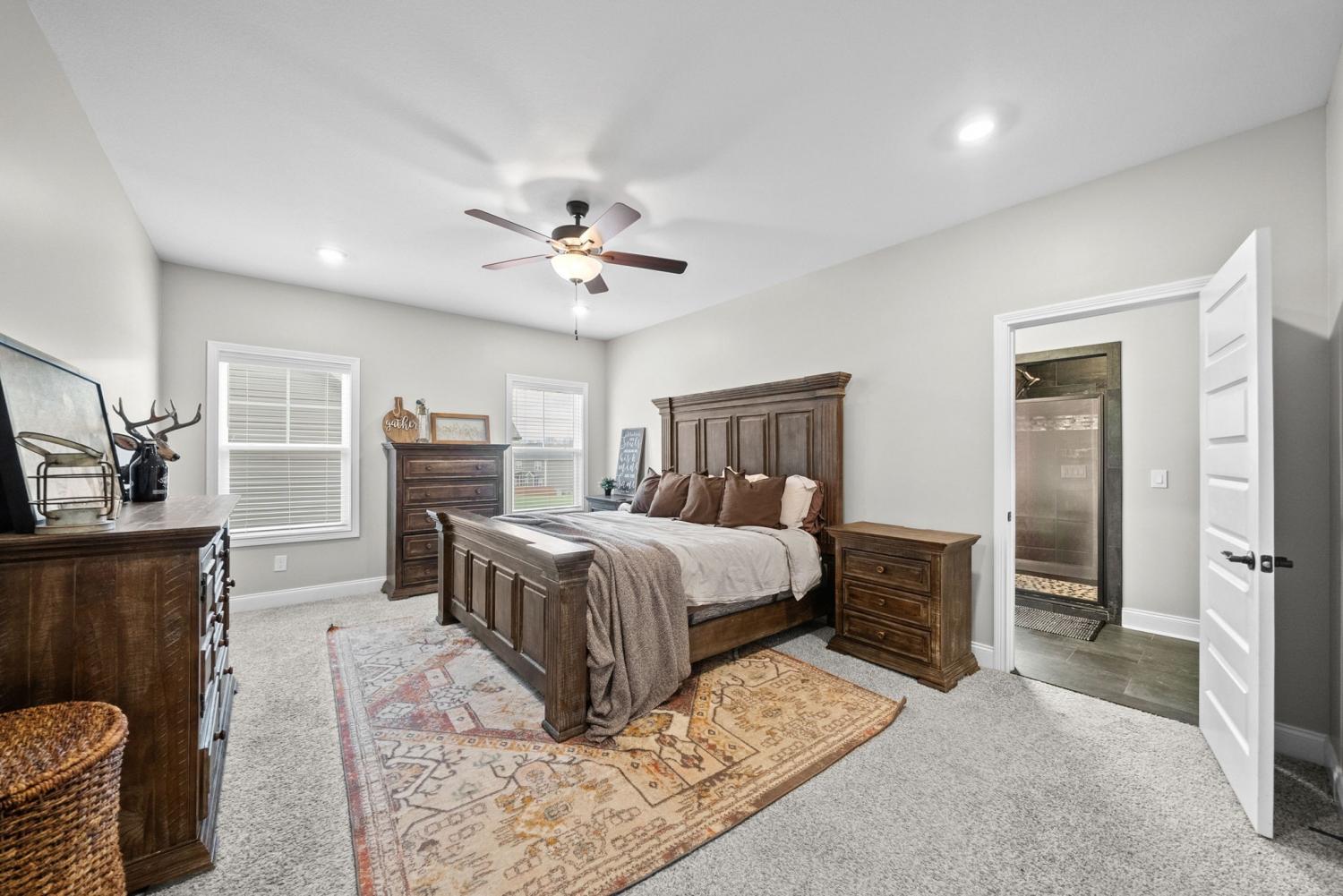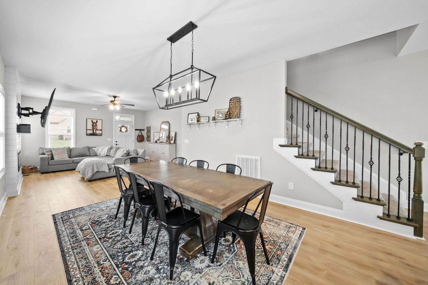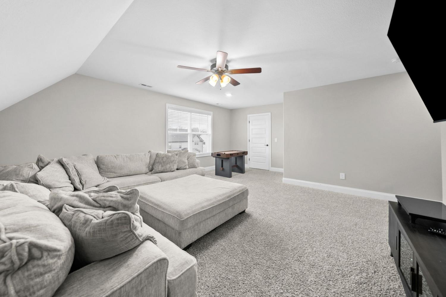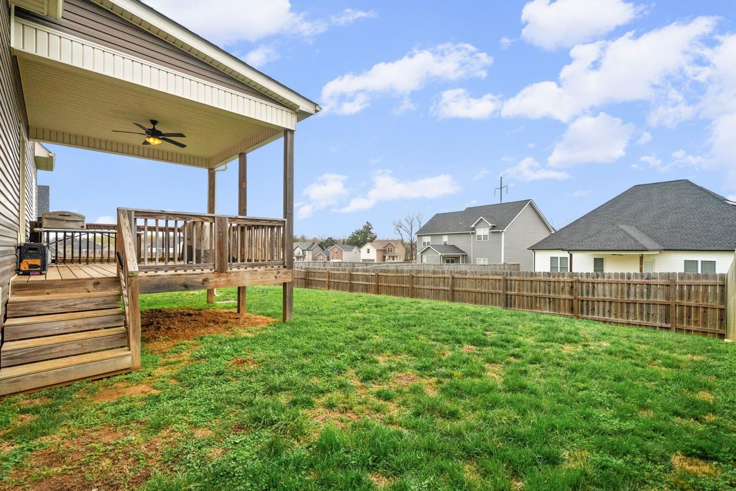 Unbelievable VALUE and priced to SELL! This LARGE beautifully maintained home 15 minutes from Fort Campbell offers a custom designed floor plan perfect for entertaining. Step inside to a bright, freshly painted and open main living area featuring BRAND NEW luxury 12mm flooring, a cozy electric fireplace and plenty of natural light. The space flows seamlessly into the dining area and kitchen, creating the perfect setup for hosting gatherings or enjoying relaxed evenings at home. The kitchen offers generous cabinet space, stainless appliances and a large island that makes meal prep and conversation effortless.The main floor primary suite provides a relaxing retreat with ample space, while the ensuite bath features a double vanity, soaking tub and beautiful tiled walk-in shower + WIC. Downstairs laundry room complete with cabinets and a sink with countertop for added convenience. Upstairs, the home continues to impress with 3 spacious bedrooms + an oversized bonus room that can easily function as a media room, playroom or additional living space. The bedrooms are notably generous in size large enough to comfortably fit multiple beds for growing families or sleepovers with friends along with 4 attic storage doors among the bedrooms. You'll also find a versatile office or hobby space perfect for working from home, gaming or crafting. The large upstairs full bathroom has double vanities and tub/shower combo. Out back you'll find a fully fenced in yard and covered deck with fan. Be sure to come see this gem before its gone!