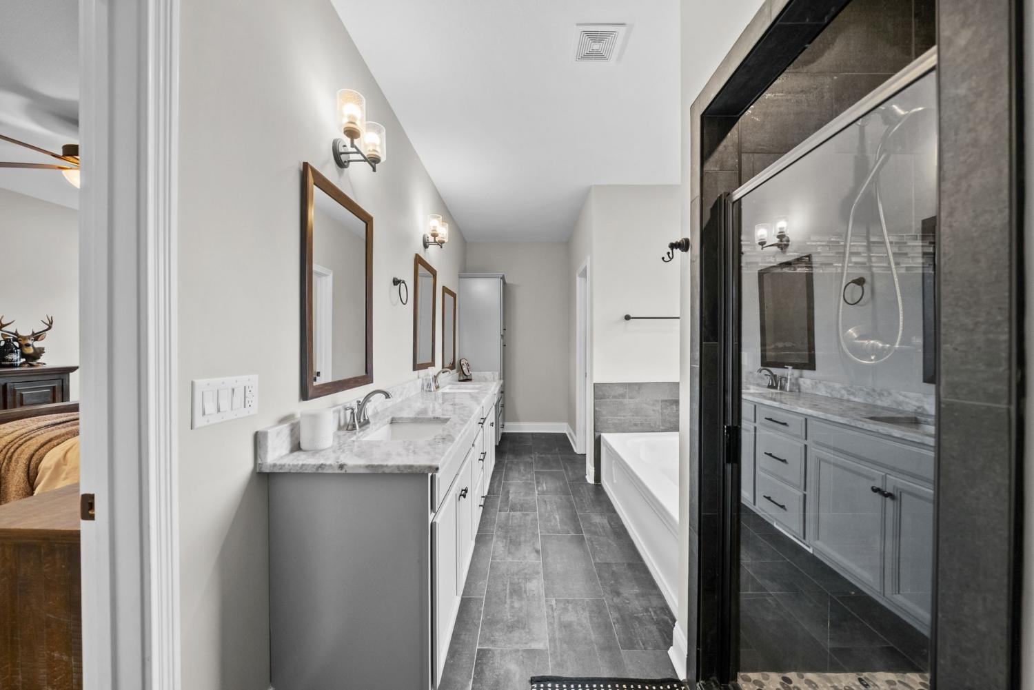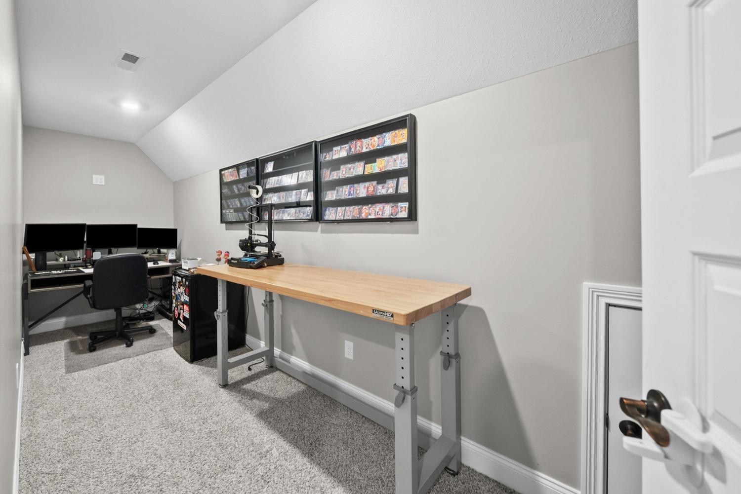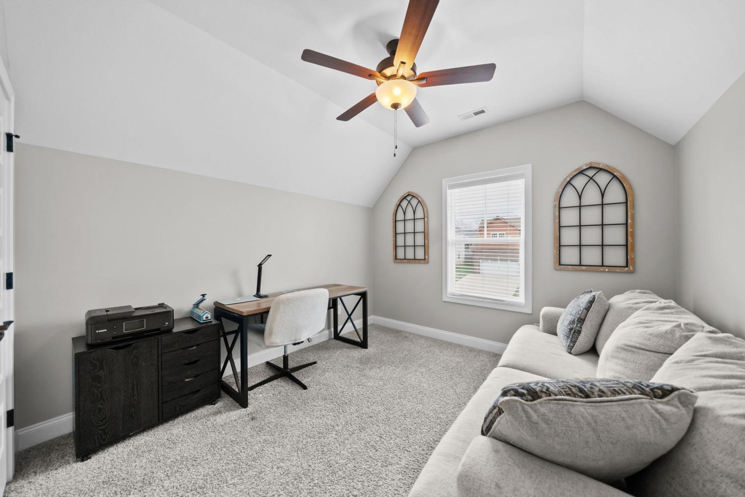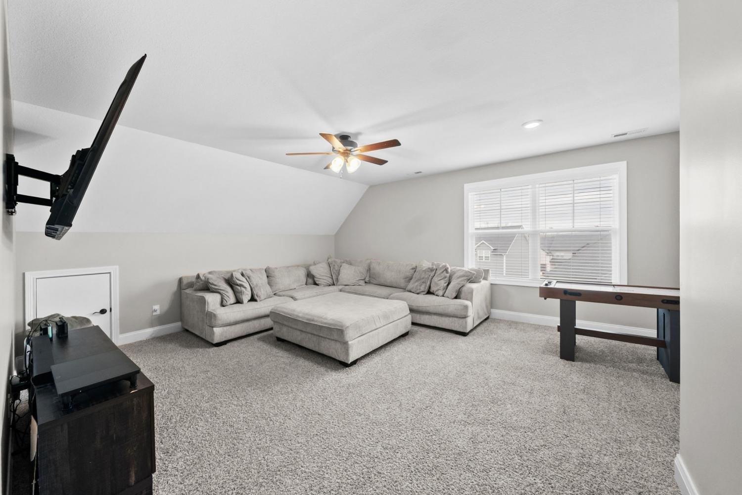 Unbelievable VALUE and priced to SELL! This LARGE beautifully maintained home 15 minutes from Fort Campbell offers a custom designed floor plan perfect for entertaining. Step inside to a bright, freshly painted and open main living area featuring BRAND NEW luxury 12mm flooring, a cozy electric fireplace and plenty of natural light. The space flows seamlessly into the dining area and kitchen, creating the perfect setup for hosting gatherings or enjoying relaxed evenings at home. The kitchen offers generous cabinet space, stainless appliances and a large island that makes meal prep and conversation effortless.The main floor primary suite provides a relaxing retreat with ample space, while the ensuite bath features a double vanity, soaking tub and beautiful tiled walk-in shower + WIC. Downstairs laundry room complete with cabinets and a sink with countertop for added convenience. Upstairs, the home continues to impress with 3 spacious bedrooms + an oversized bonus room that can easily function as a media room, playroom or additional living space. The bedrooms are notably generous in size large enough to comfortably fit multiple beds for growing families or sleepovers with friends along with 4 attic storage doors among the bedrooms. You'll also find a versatile office or hobby space perfect for working from home, gaming or crafting. The large upstairs full bathroom has double vanities and tub/shower combo. Out back you'll find a fully fenced in yard and covered deck with fan. Be sure to come see this gem before its gone!