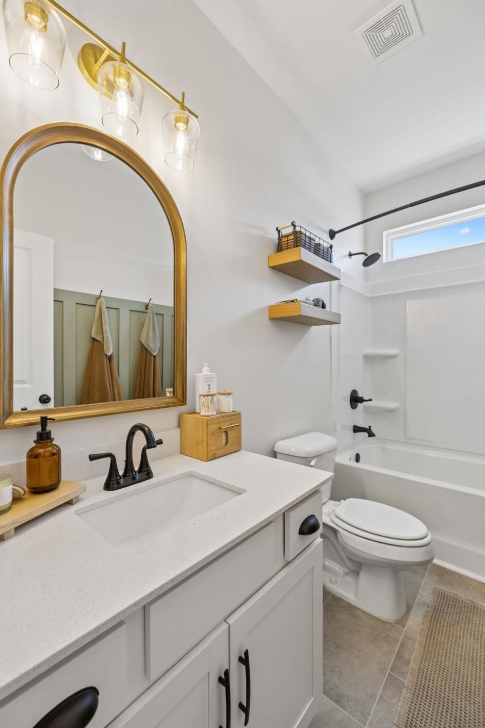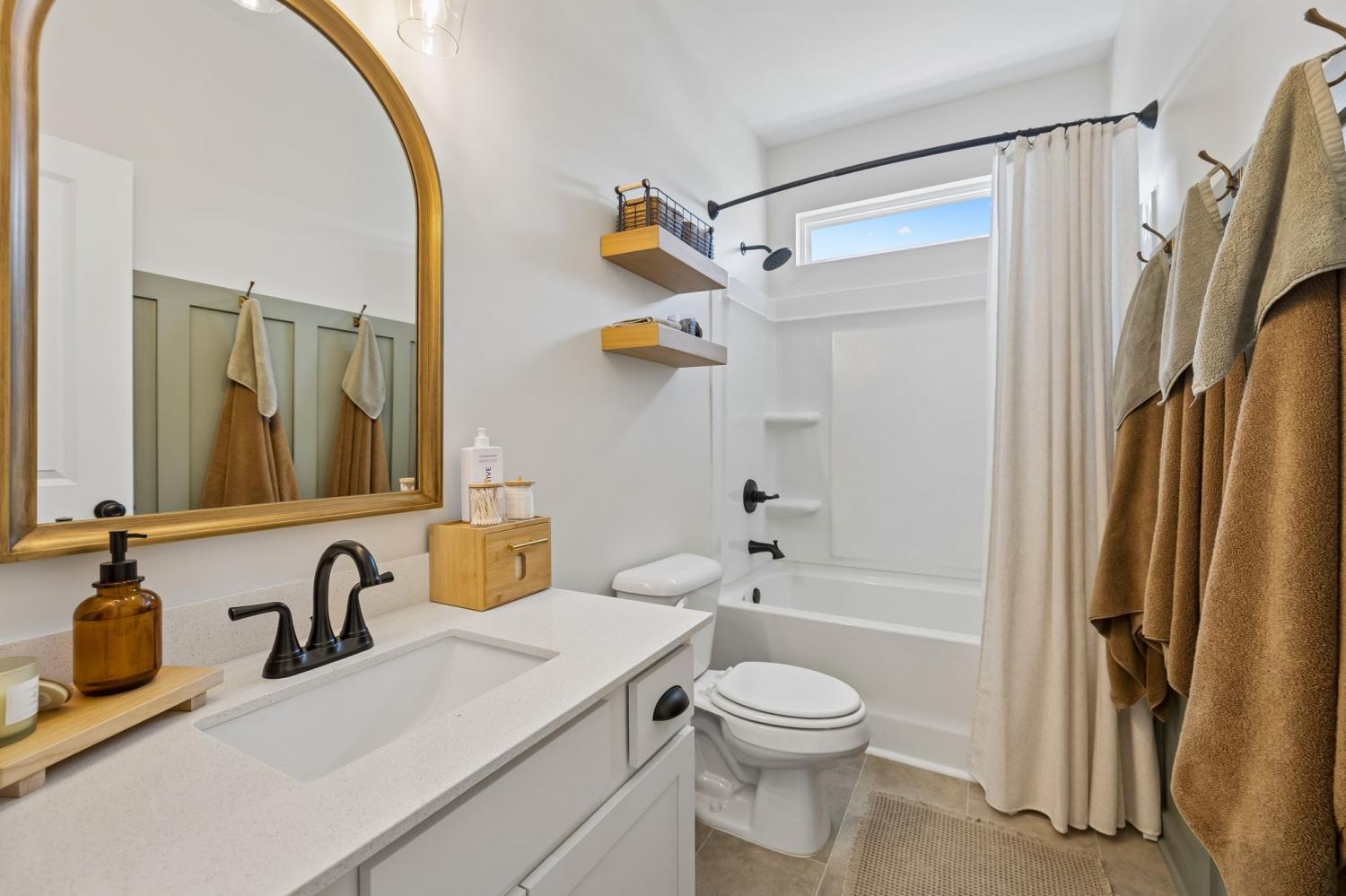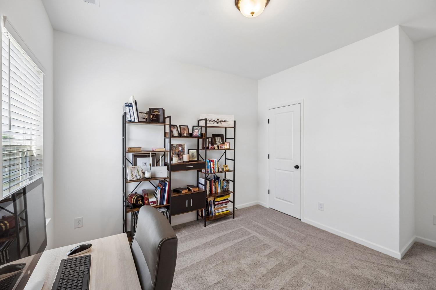 Wonderful opportunity for a 3 bedroom, 2.5 half bathroom better than new home on large, fenced, corner lot that's immediately ready for new owners. Fully sodded yard with beautiful landscaping. Big open living space with a large central kitchen island. Enjoy sitting on the cozy covered patio just off of the living room. Don't miss the amazing custom pantry in the kitchen. You will love this home as much as the owners do! Upstairs you are greeted by large sitting area that could be converted to a 4th bedroom, full laundry room and 3 bedrooms. The owner's suite has a huge walk-in closet and a private bathroom with double vanities and oversized shower.