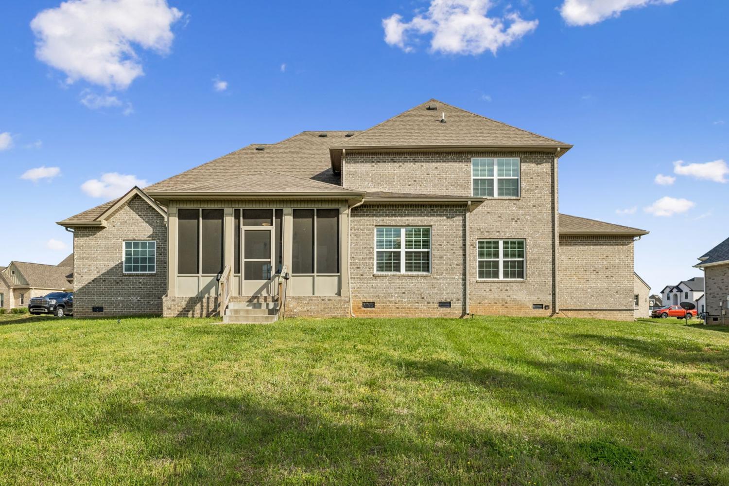 Welcome to this stunning all-brick, 5-bedroom, 3.5-bath home offering approximately 3,800 square feet of thoughtfully designed living space. Built in 2021 and situated on a spacious .70-acre lot, this home combines modern comfort with timeless style. The open-concept layout features beautiful hardwood floors throughout the main level, a formal dining room, and an expansive living area perfect for entertaining. The gourmet kitchen is a true centerpiece, showcasing granite countertops, a large island, built-in oven and microwave, gas cooktop, and abundant cabinet space. The spacious primary suite offers a relaxing retreat with a luxurious en-suite bath, complete with a large tiled shower and dual vanities. Generously sized secondary bedrooms provide plenty of space for family or guests, while the huge bonus room offers flexibility for a media room, playroom, or home office. Step outside to enjoy the screened-in back porch overlooking the sizable backyard—perfect for relaxing or entertaining. Additional highlights include a 3-car garage and a whole-house generator for added peace of mind. Conveniently located just minutes from I-24, shopping, and dining, this home offers both comfort and convenience in a desirable setting.