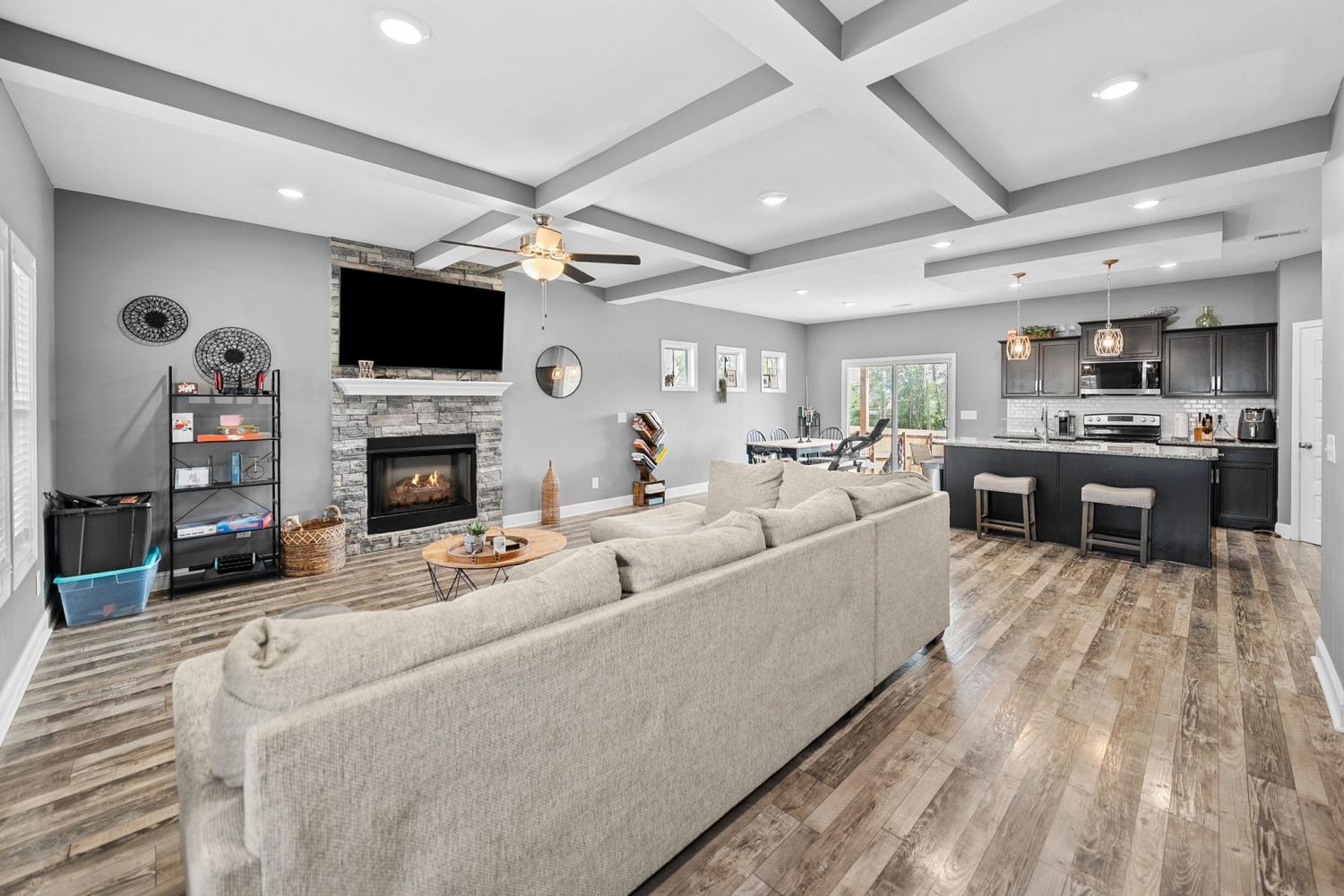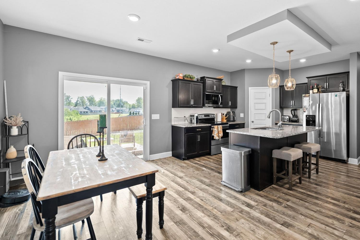 Open-concept living defines this spacious four-bedroom, 2.5-bath home located in the desirable Eagles Bluff subdivision. The inviting living room features a stunning stone fireplace and flows seamlessly into the kitchen, complete with granite countertops, a large island, and laminate hardwood flooring throughout the main living areas. The owner’s suite is conveniently situated on the main level and offers a double tiled shower and an expansive walk-in closet. Upstairs, you’ll find three additional spacious bedrooms and another full bath. Enjoy outdoor living in the fully fenced backyard with a covered patio, perfect for relaxing or entertaining. Washer and Dryer will convey for tenant use but are not warrantied.