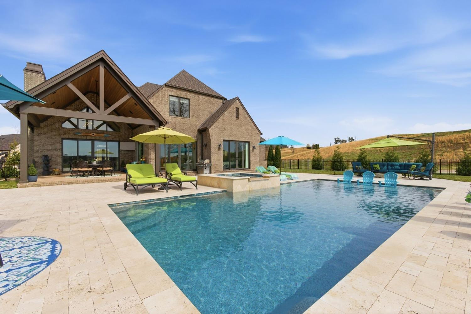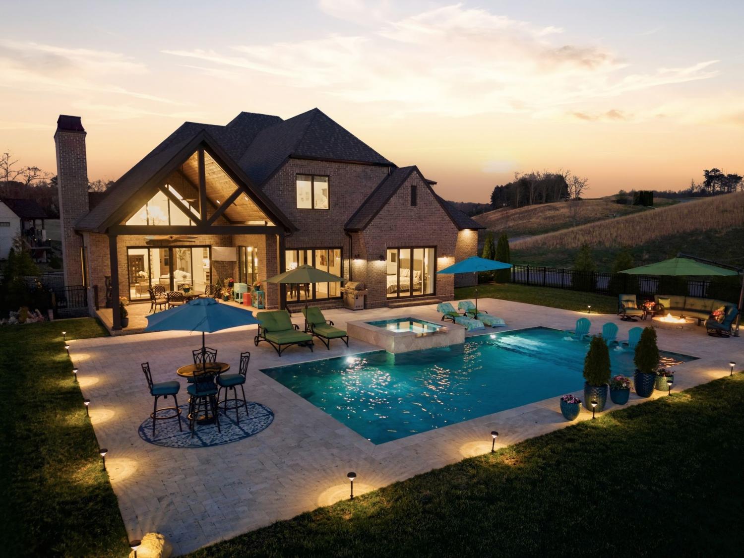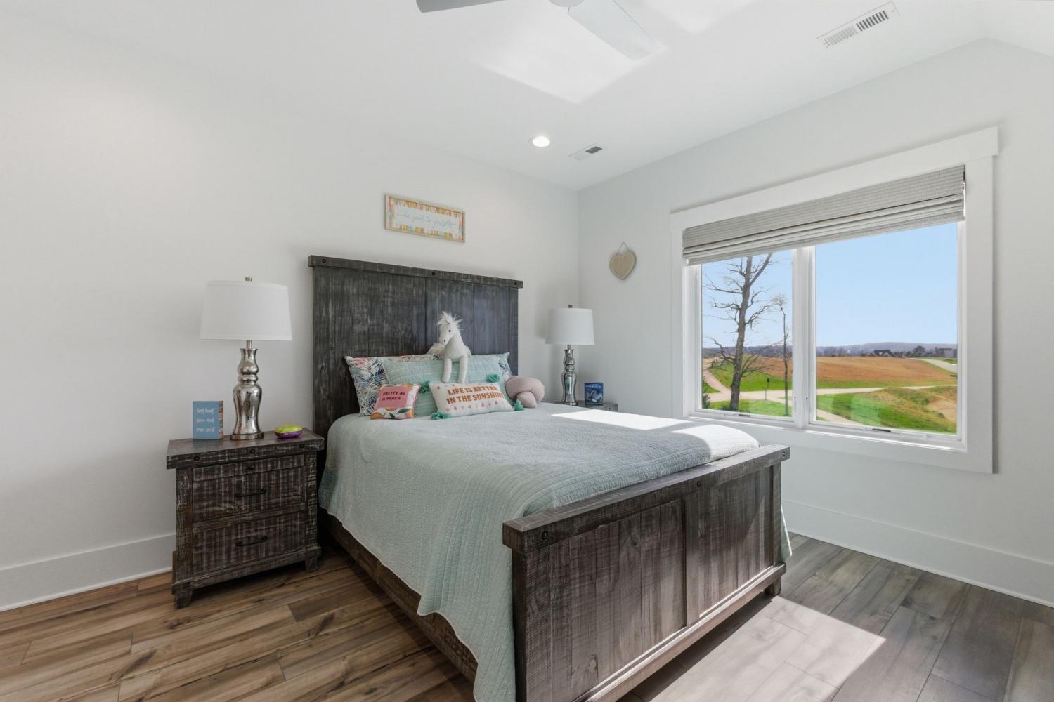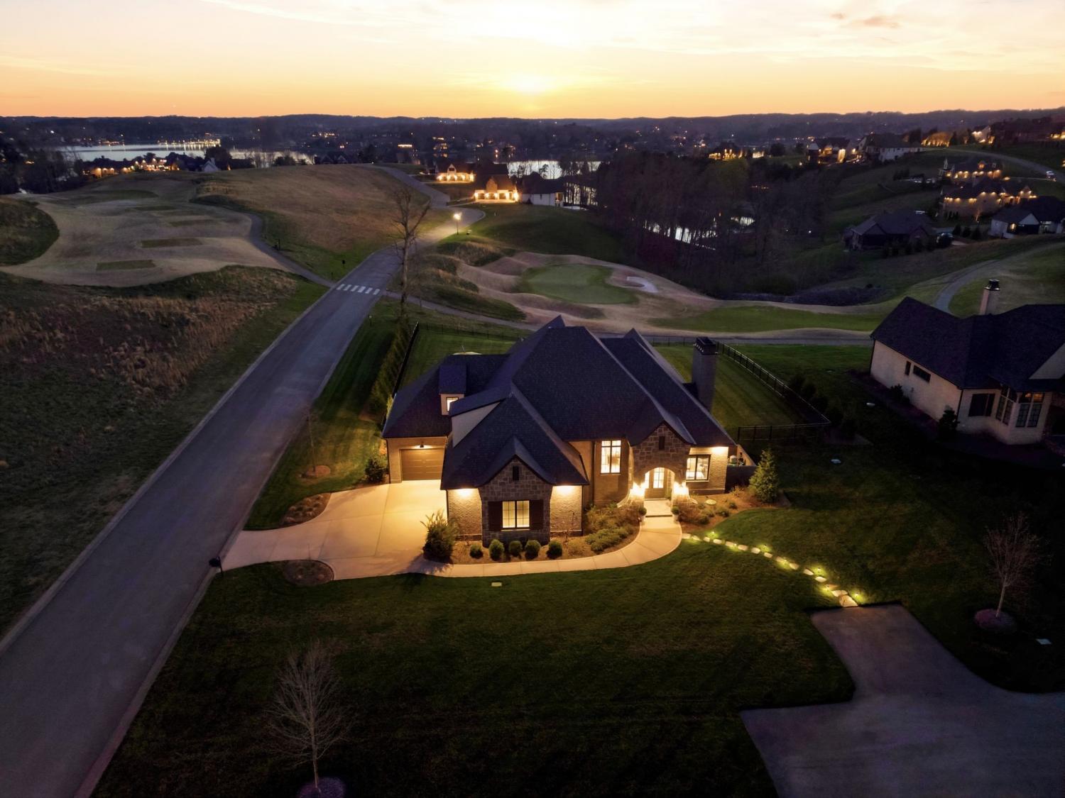 Welcome to 250 Bower Court, a custom-built 2023 luxury home on a flat 0.75-acre corner lot in the prestigious lake and golf community of WindRiver. Surrounded by a championship golf course on three sides, this 3,761 sq ft home offers stunning sunset and golf views. The home features 3 ensuite bedrooms, 3.5 bathrooms, a study with built-in file and printer cabinets, spacious bonus room with wet bar, a flex room, oversized two car garage + one car garage. Upgrades include motorized window treatments, integrated speaker system, security system, home water softener and HVAC purification, attic storage, and foam insulation. Soaring cathedral ceilings enhance the light-filled, open concept design featuring oversized sliding doors and a ledgestone gas fireplace. The chef’s kitchen offers custom cabinetry, under-cabinet lighting, quartz countertops, walk-in pantry, bar area, wine cooler, and a large island ideal for gathering. Designed for effortless lifestyle, this home features true main-level living with the primary suite, great room, dining room, and kitchen opening to your private backyard oasis with a resort-style pool/spa, a gas firepit and seating area with a 13' cantilever umbrella, and gas BBQ hook-up. Steps from the great room you will enjoy a large covered patio with a Sunbrite TV, ceiling fan, and exterior speakers. The expansive fenced yard is perfect for entertaining with golf course and sunset views over the 8th fairway and green. WindRiver is set along Tellico Lake and offers a marina, golf, pool/spa, pickleball, tennis, gym, hiking trails and views. Coming in 2026: 25,000 sq ft Clubhouse Village with first class dining, fitness, and other amenities. This is anticipated to be the premier social and lifestyle hub of the community. A rare opportunity to own a luxury home with panoramic views, main-level living, and resort-style amenities. Located just outside Knoxville–23 mins to McGhee Tyson Airport. No state income/pension tax! Experience all four seasons.